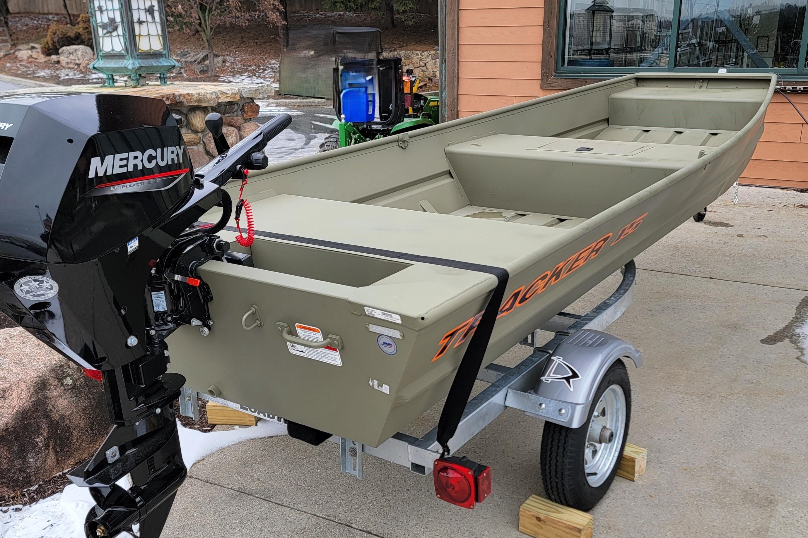 The NEW TRACKER GRIZZLY 15 Jon is a rugged and versatile all-welded aluminum jon boat, suitable for fishing, hunting, or work purposes. Its unitized stringer, transom, and hull ensure a sturdy build and a smooth, dry ride. The boat features a thick .063 aluminum cockpit floor and a 9.5-gallon wet well on the front deck. This hull provides a comfortable ride, and the Forest Green powder-coat finish, along with the SURE TREAD texture on the floor, adds to its durability. Additionally, the TRACKER PROMISE warranty offers peace of mind, making it a reliable choice among aluminum boats.