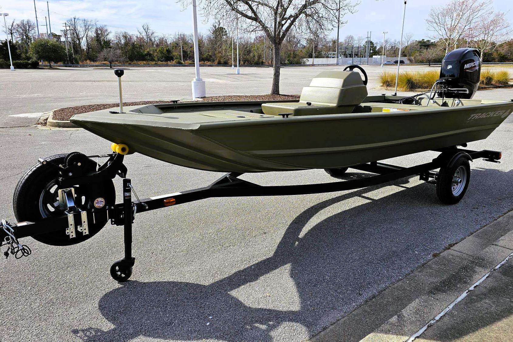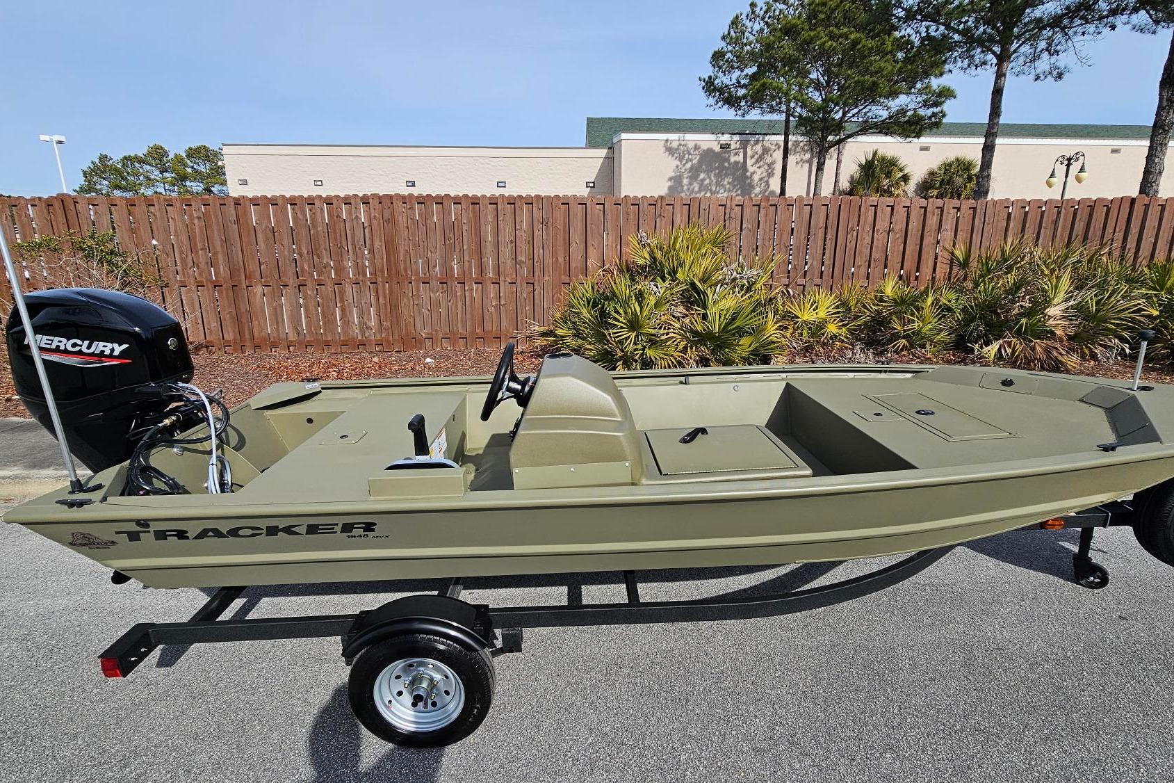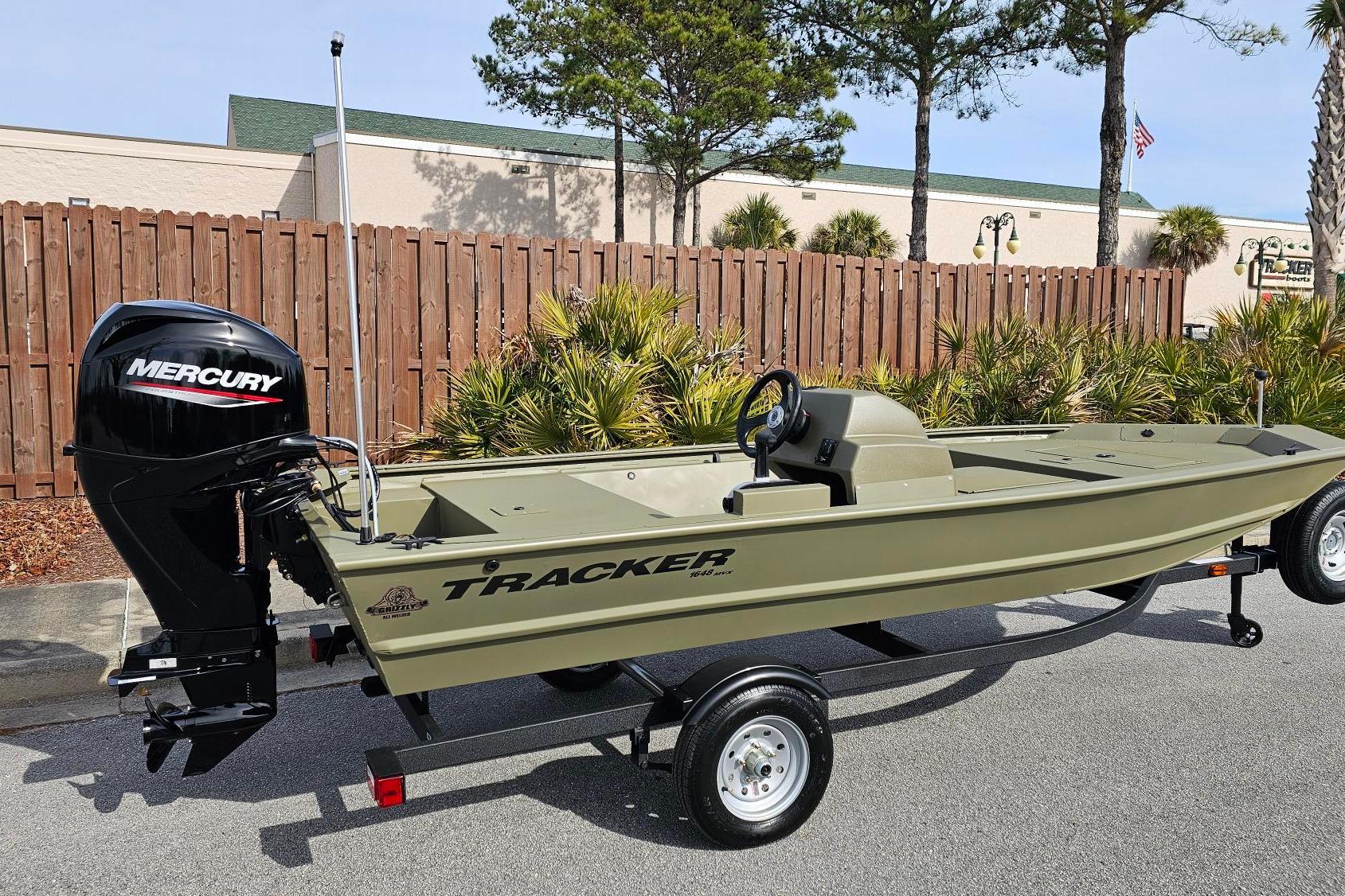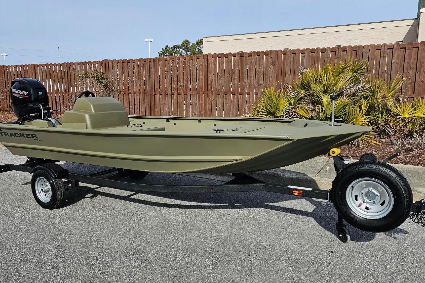 Discover one of our top offerings in complete aluminum jon boat, motor, and trailer packages—the TRACKER® GRIZZLY® 1648 SC. This versatile and resilient vessel combines exceptional value with unmatched durability. Boasting the same high-quality construction as its larger GRIZZLY counterparts, the 1648 SC features a unitized, all-aluminum, all-welded hull, stringer, and transom, ensuring a lifetime of reliable performance and durability on the water. The 1648 SC is equipped with a spacious front deck, a wide beam, two pedestal seat bases, and a roomy interior with a lockable bow deck storage compartment, providing ample space and functionality for various activities. Finished with our industry-exclusive Forest Green powder-coat finish, this jon boat offers extreme durability and resilience against the elements, ensuring long-lasting performance in any conditions. Additionally, the 1648 SC is backed by the TRACKER PROMISE, offering the best factory warranty available for aluminum boats, providing you with peace of mind and confidence in your investment. Experience the unbeatable combination of versatility, durability, and value with the TRACKER GRIZZLY 1648 SC, a reliable and dependable companion for all your boating adventures.