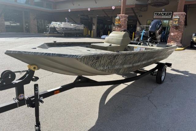 Discover one of our top offerings in complete aluminum jon boat, motor, and trailer packages—the TRACKER® GRIZZLY® 1648 SC. This versatile and resilient vessel combines exceptional value with unmatched durability. Boasting the same high-quality construction as its larger GRIZZLY counterparts, the 1648 SC features a unitized, all-aluminum, all-welded hull, stringer, and transom, ensuring a lifetime of reliable performance and durability on the water. The 1648 SC is equipped with a spacious front deck, a wide beam, two pedestal seat bases, and a roomy interior with a lockable bow deck storage compartment, providing ample space and functionality for various activities. Finished with our industry-exclusive Forest Green powder-coat finish, this jon boat offers extreme durability and resilience against the elements, ensuring long-lasting performance in any conditions. Additionally, the 1648 SC is backed by the TRACKER PROMISE, offering the best factory warranty available for aluminum boats, providing you with peace of mind and confidence in your investment. Experience the unbeatable combination of versatility, durability, and value with the TRACKER GRIZZLY 1648 SC, a reliable and dependable companion for all your boating adventures.
