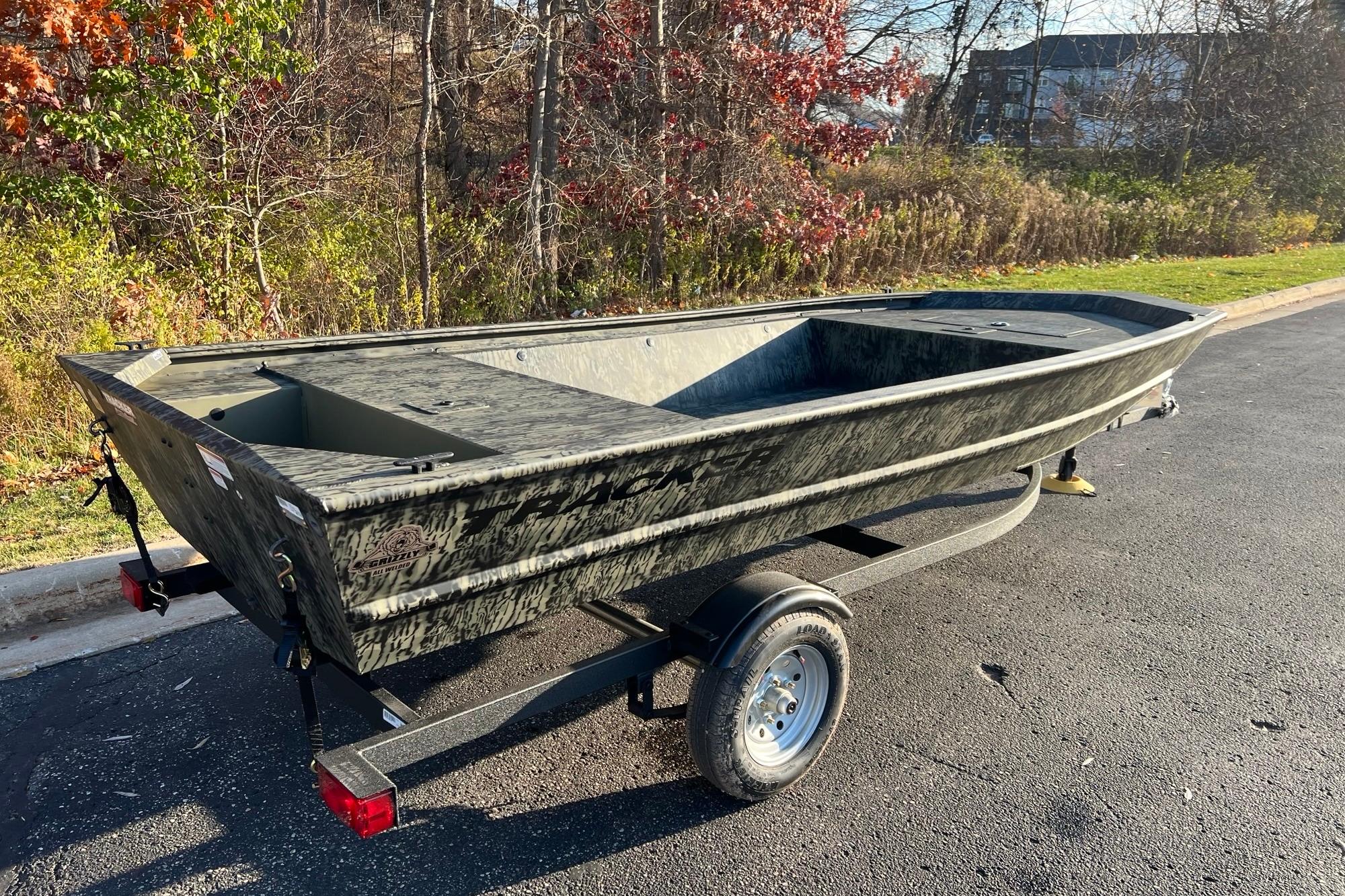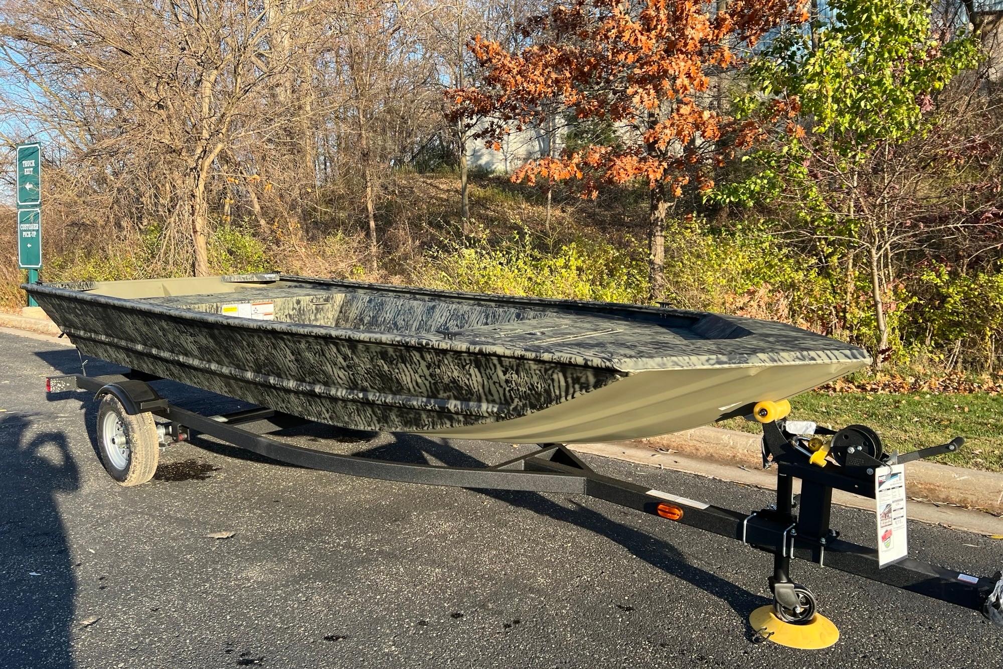 The all-welded TRACKER® GRIZZLY® 1648 Jon is a tough and versatile aluminum jon boat that can easily be adapted for fishing, hunting or working. The unitized stringer, transom and hull provide rock-solid construction and a smooth, dry ride. The 1648 has a thick .190 aluminum cockpit floor plus a big front deck with a lockable storage compartment. The 7° deadrise Mod V hull provides a smooth, dry ride, and it's finished with our exclusive Forest Green powder-coat (as well as SURE TREAD™ texture on the floor). And like all TRACKER boats, it’s backed by the TRACKER PROMISE—the best factory warranty in aluminum boats.