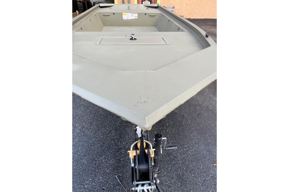 The all-welded TRACKER® GRIZZLY® 1648 Jon is a tough and versatile aluminum jon boat that can easily be adapted for fishing, hunting or working. The unitized stringer, transom and hull provide rock-solid construction and a smooth, dry ride. The 1648 has a thick .190 aluminum cockpit floor plus a big front deck with a lockable storage compartment. The 7° deadrise Mod V hull provides a smooth, dry ride, and it's finished with our exclusive Forest Green powder-coat (as well as SURE TREAD™ texture on the floor). And like all TRACKER boats, it’s backed by the TRACKER PROMISE—the best factory warranty in aluminum boats.