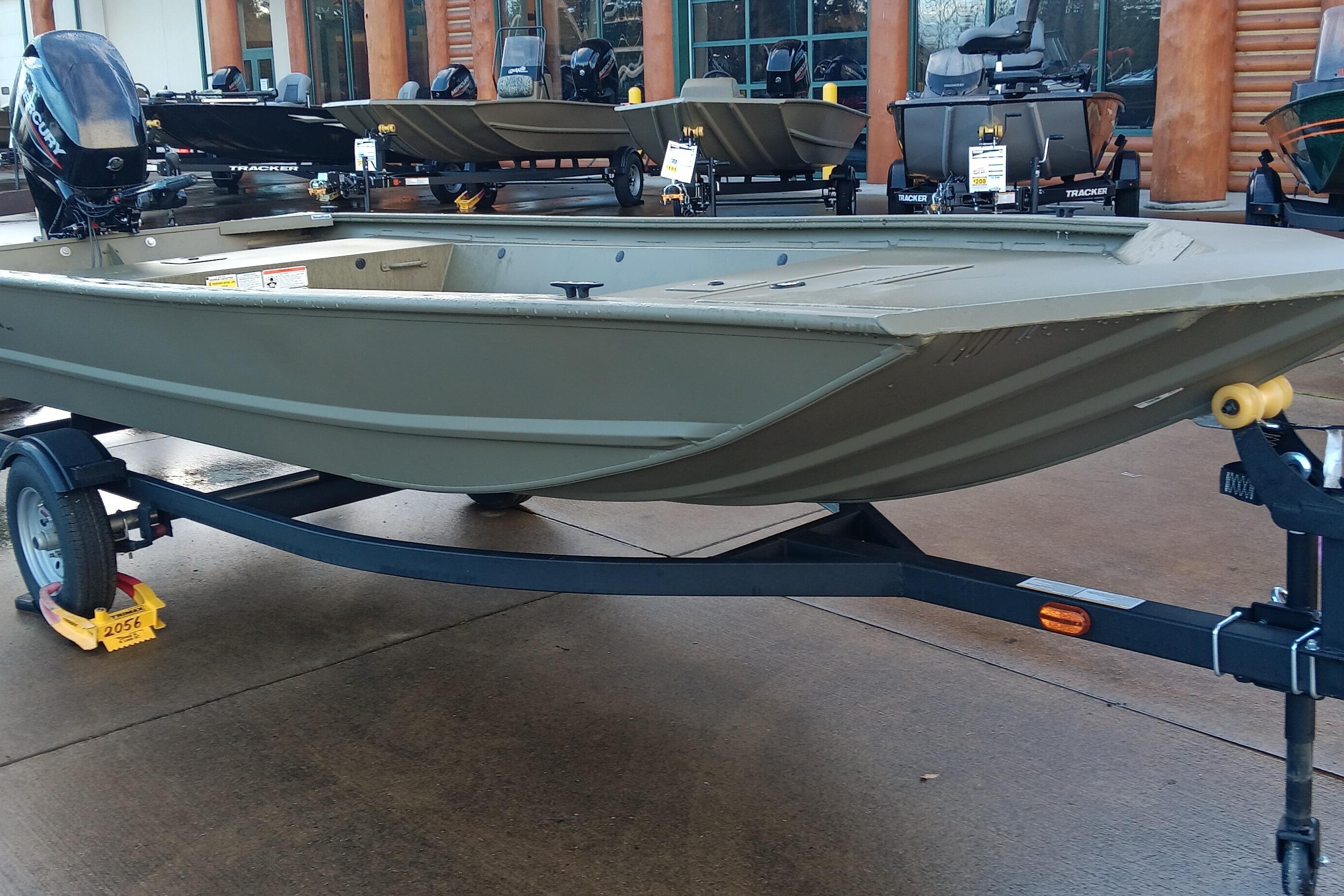 The all-welded TRACKER® GRIZZLY® 1648 Jon is a tough and versatile aluminum jon boat that can easily be adapted for fishing, hunting or working. The unitized stringer, transom and hull provide rock-solid construction and a smooth, dry ride. The 1648 has a thick .190 aluminum cockpit floor plus a big front deck with a lockable storage compartment. The 7° deadrise Mod V hull provides a smooth, dry ride, and it's finished with our exclusive Forest Green powder-coat (as well as SURE TREAD™ texture on the floor). And like all TRACKER boats, it’s backed by the TRACKER PROMISE—the best factory warranty in aluminum boats.