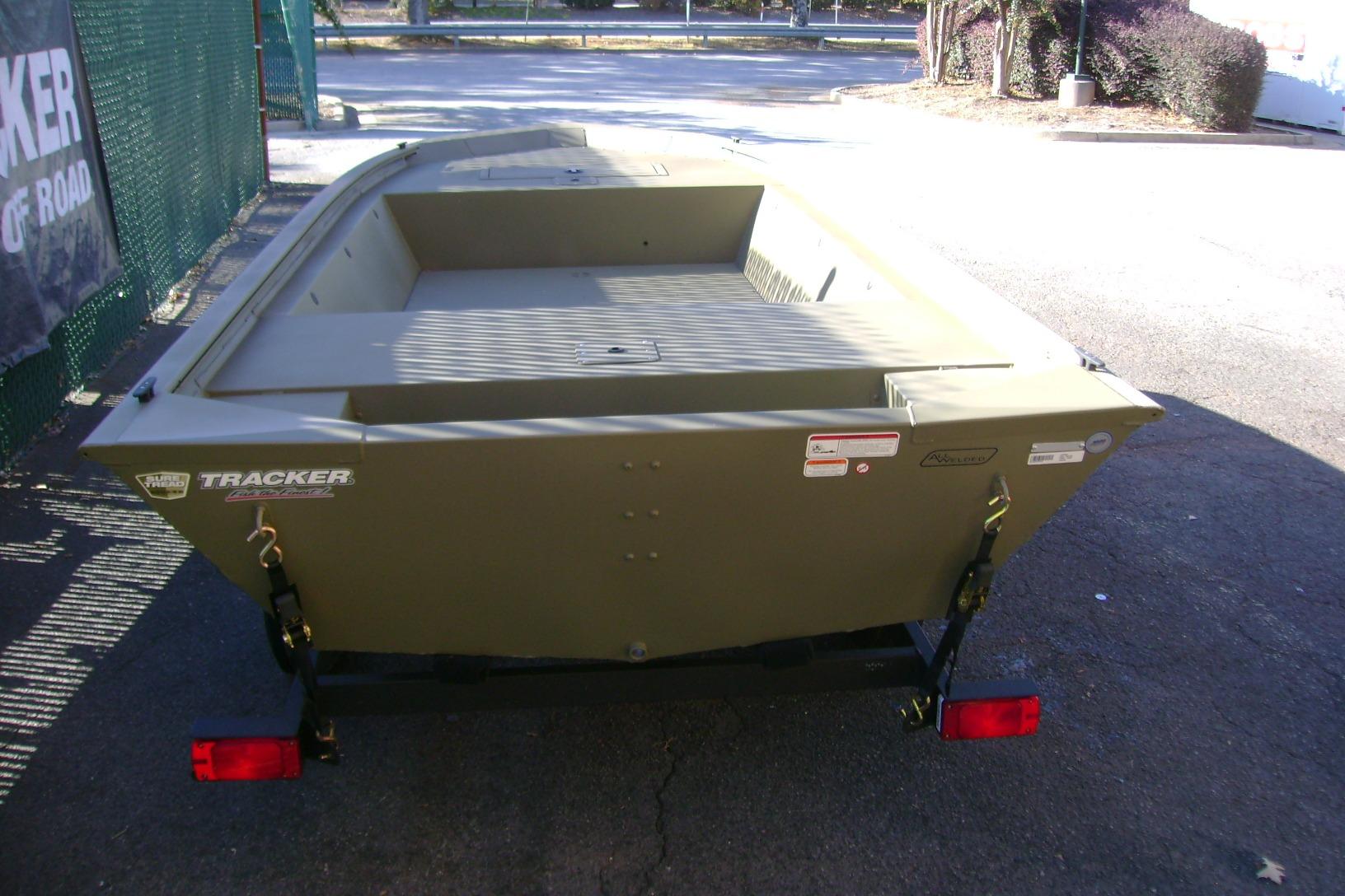 The all-welded TRACKER® GRIZZLY® 1648 Jon is a tough and versatile aluminum jon boat that can easily be adapted for fishing, hunting or working. The unitized stringer, transom and hull provide rock-solid construction and a smooth, dry ride. The 1648 has a thick .190 aluminum cockpit floor plus a big front deck with a lockable storage compartment. The 7° deadrise Mod V hull provides a smooth, dry ride, and it's finished with our exclusive Forest Green powder-coat (as well as SURE TREAD™ texture on the floor). And like all TRACKER boats, it’s backed by the TRACKER PROMISE—the best factory warranty in aluminum boats.