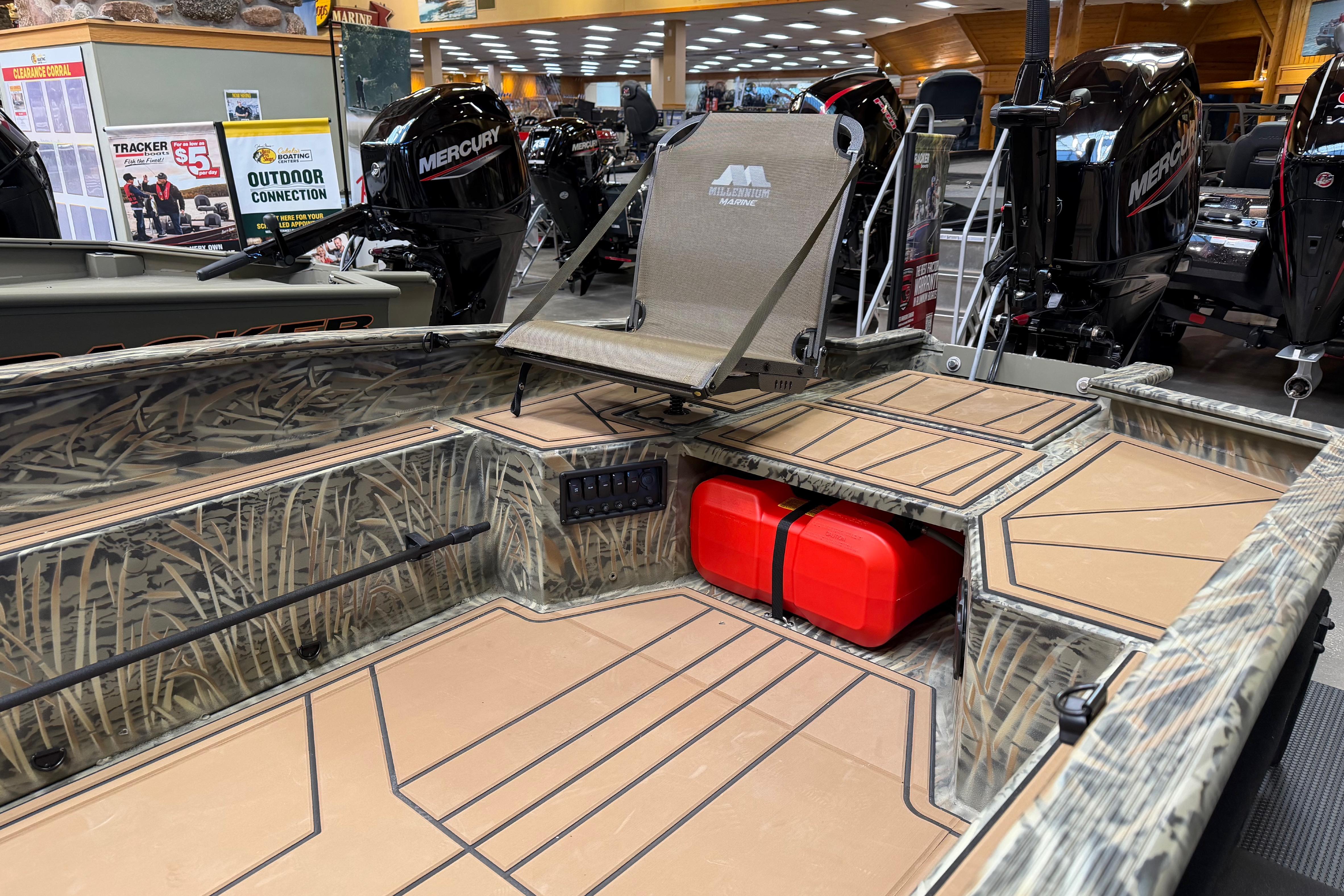 From rivers and bayous to lakes and brakes, the TRACKER 1650 T Prairie Wings Edition is custom-made to get you, your gear, and your buddies to those out-of-the-way honey holes that guarantee you’ll get your limit. A no-frills interior provides all the space you need to haul spreads, dog’s and your best friend while smooth, reliable, and stealthy Mercury® FourStroke power with an Icebreaker keel gets you there. The cockpit and decks are coated with Sure Tread™ flooring that offers superior grip in any conditions. Bow and stern pedestal seating locations offer versatility while hunting or when underway, and easy-to-reach switching offer simple, reliable control over the boat's functions. Outwardly, the TRACKER 1650 T Prairie Wings edition is covered in your choice of flat green or True Timber® camo finishes, and like all TRACKER boats, it’s made with 100% all-welded aluminum for maximum durability. Rear steps add an additional layer of convenience and safety, and VERSATRAK™ mounting channels let you add all manner of accessories for a truly customized killer tiller.