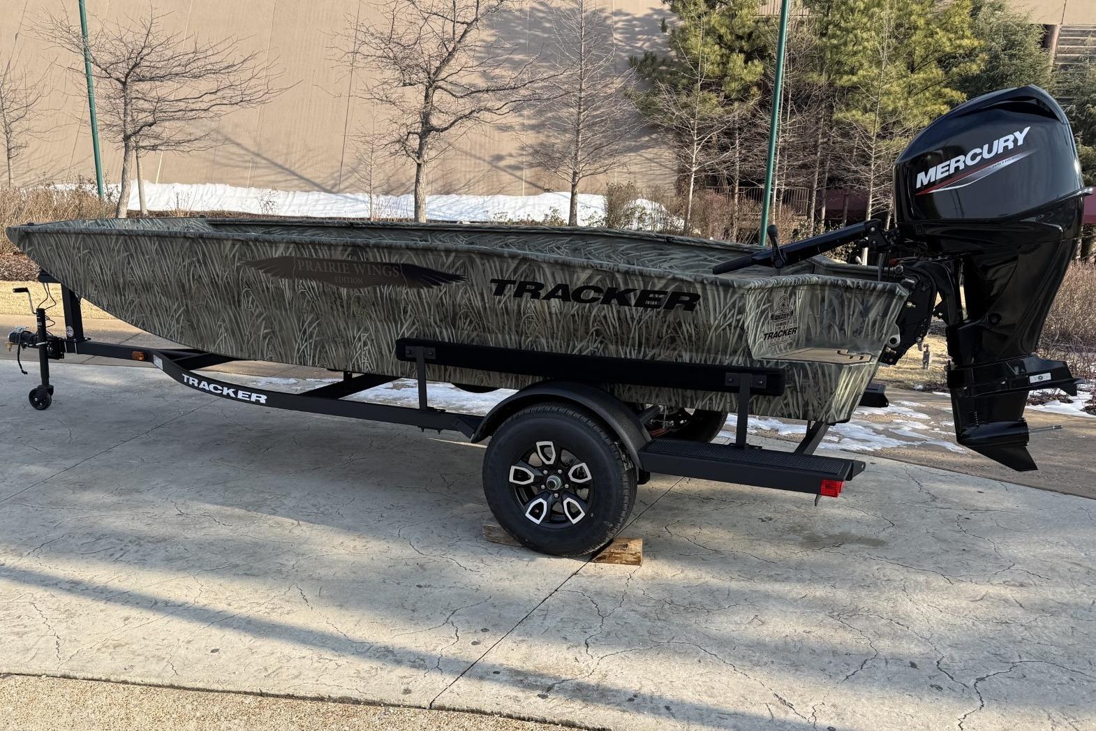 From rivers and bayous to lakes and brakes, the TRACKER 1650 T Prairie Wings Edition is custom-made to get you, your gear, and your buddies to those out-of-the-way honey holes that guarantee you’ll get your limit. A no-frills interior provides all the space you need to haul spreads, dog’s and your best friend while smooth, reliable, and stealthy Mercury® FourStroke power with an Icebreaker keel gets you there. The cockpit and decks are coated with Sure Tread™ flooring that offers superior grip in any conditions. Bow and stern pedestal seating locations offer versatility while hunting or when underway, and easy-to-reach switching offer simple, reliable control over the boat's functions. Outwardly, the TRACKER 1650 T Prairie Wings edition is covered in your choice of flat green or True Timber® camo finishes, and like all TRACKER boats, it’s made with 100% all-welded aluminum for maximum durability. Rear steps add an additional layer of convenience and safety, and VERSATRAK™ mounting channels let you add all manner of accessories for a truly customized killer tiller.