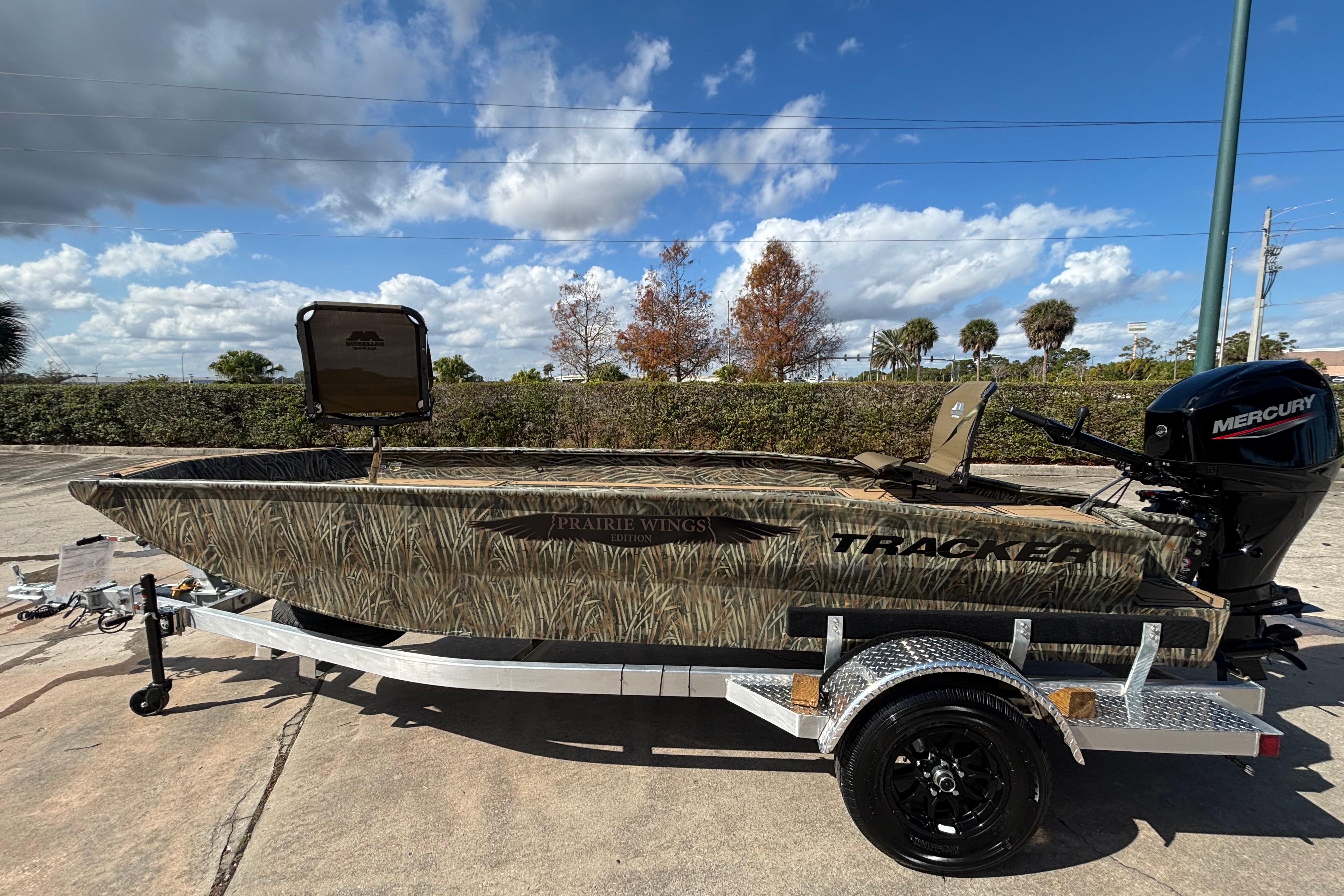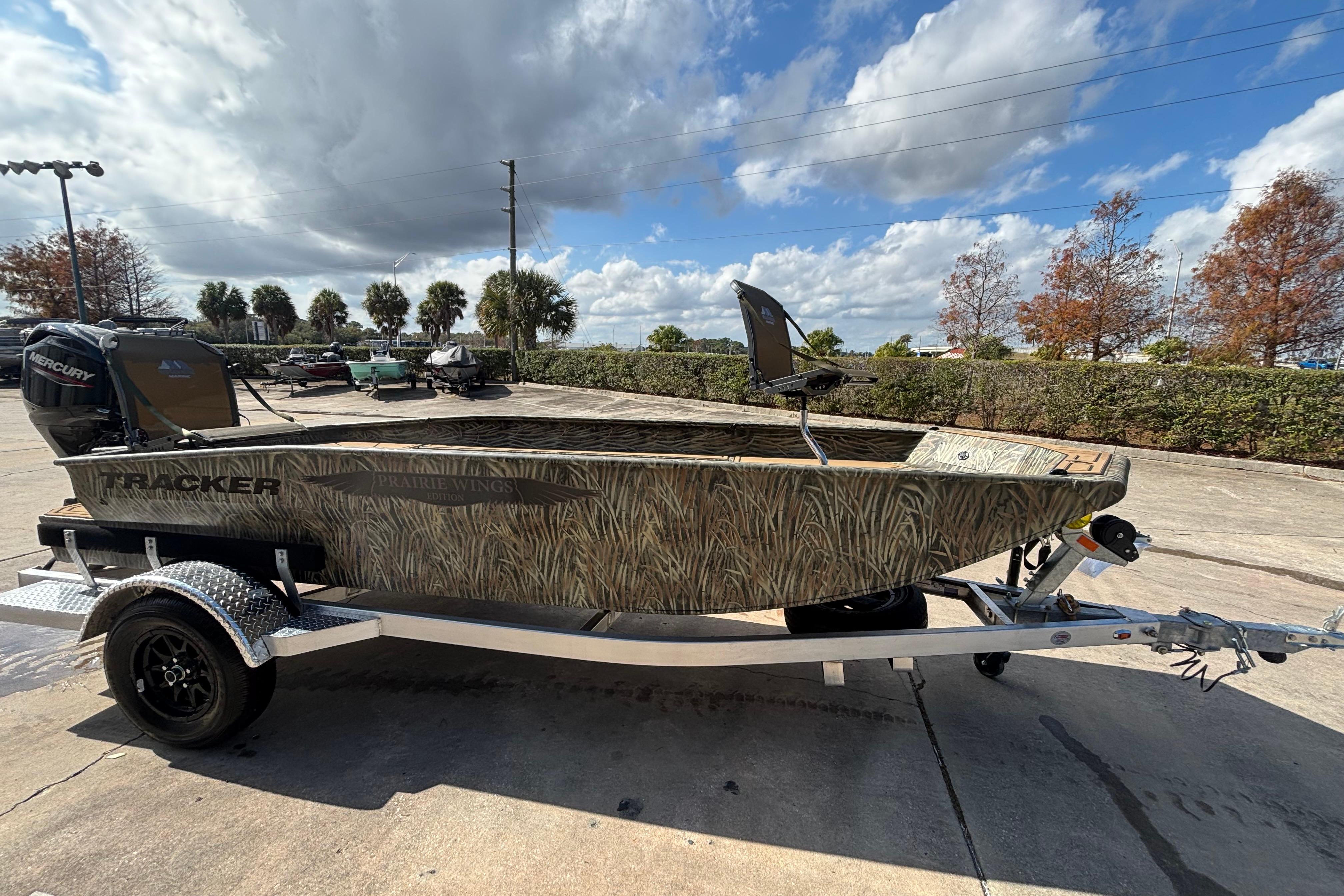 From rivers and bayous to lakes and brakes, the TRACKER 1650 T Prairie Wings Edition is custom-made to get you, your gear, and your buddies to those out-of-the-way honey holes that guarantee you’ll get your limit. A no-frills interior provides all the space you need to haul spreads, dog’s and your best friend while smooth, reliable, and stealthy Mercury® FourStroke power with an Icebreaker keel gets you there. The cockpit and decks are coated with Sure Tread™ flooring that offers superior grip in any conditions. Bow and stern pedestal seating locations offer versatility while hunting or when underway, and easy-to-reach switching offer simple, reliable control over the boat's functions. Outwardly, the TRACKER 1650 T Prairie Wings edition is covered in your choice of flat green or True Timber® camo finishes, and like all TRACKER boats, it’s made with 100% all-welded aluminum for maximum durability. Rear steps add an additional layer of convenience and safety, and VERSATRAK™ mounting channels let you add all manner of accessories for a truly customized killer tiller.