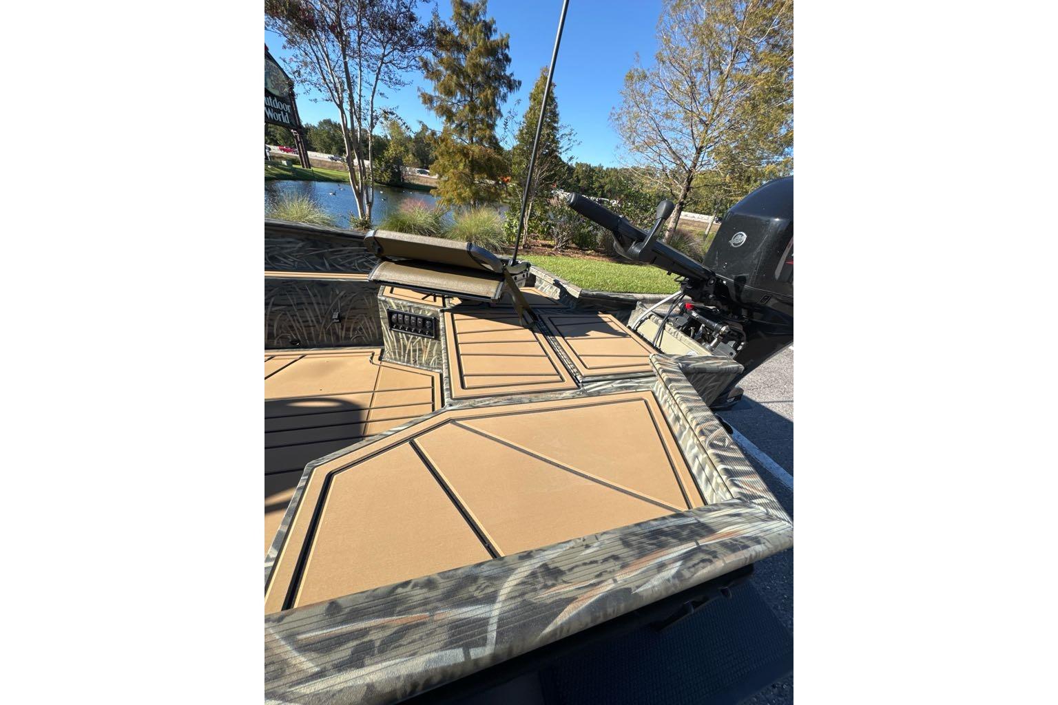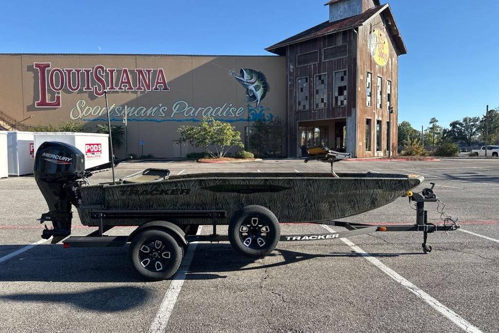 From rivers and bayous to lakes and brakes, the TRACKER 1650 T Prairie Wings Edition is custom-made to get you, your gear, and your buddies to those out-of-the-way honey holes that guarantee you’ll get your limit. A no-frills interior provides all the space you need to haul spreads, dog’s and your best friend while smooth, reliable, and stealthy Mercury® FourStroke power with an Icebreaker keel gets you there. The cockpit and decks are coated with Sure Tread™ flooring that offers superior grip in any conditions. Bow and stern pedestal seating locations offer versatility while hunting or when underway, and easy-to-reach switching offer simple, reliable control over the boat's functions. Outwardly, the TRACKER 1650 T Prairie Wings edition is covered in your choice of flat green or True Timber® camo finishes, and like all TRACKER boats, it’s made with 100% all-welded aluminum for maximum durability. Rear steps add an additional layer of convenience and safety, and VERSATRAK™ mounting channels let you add all manner of accessories for a truly customized killer tiller.