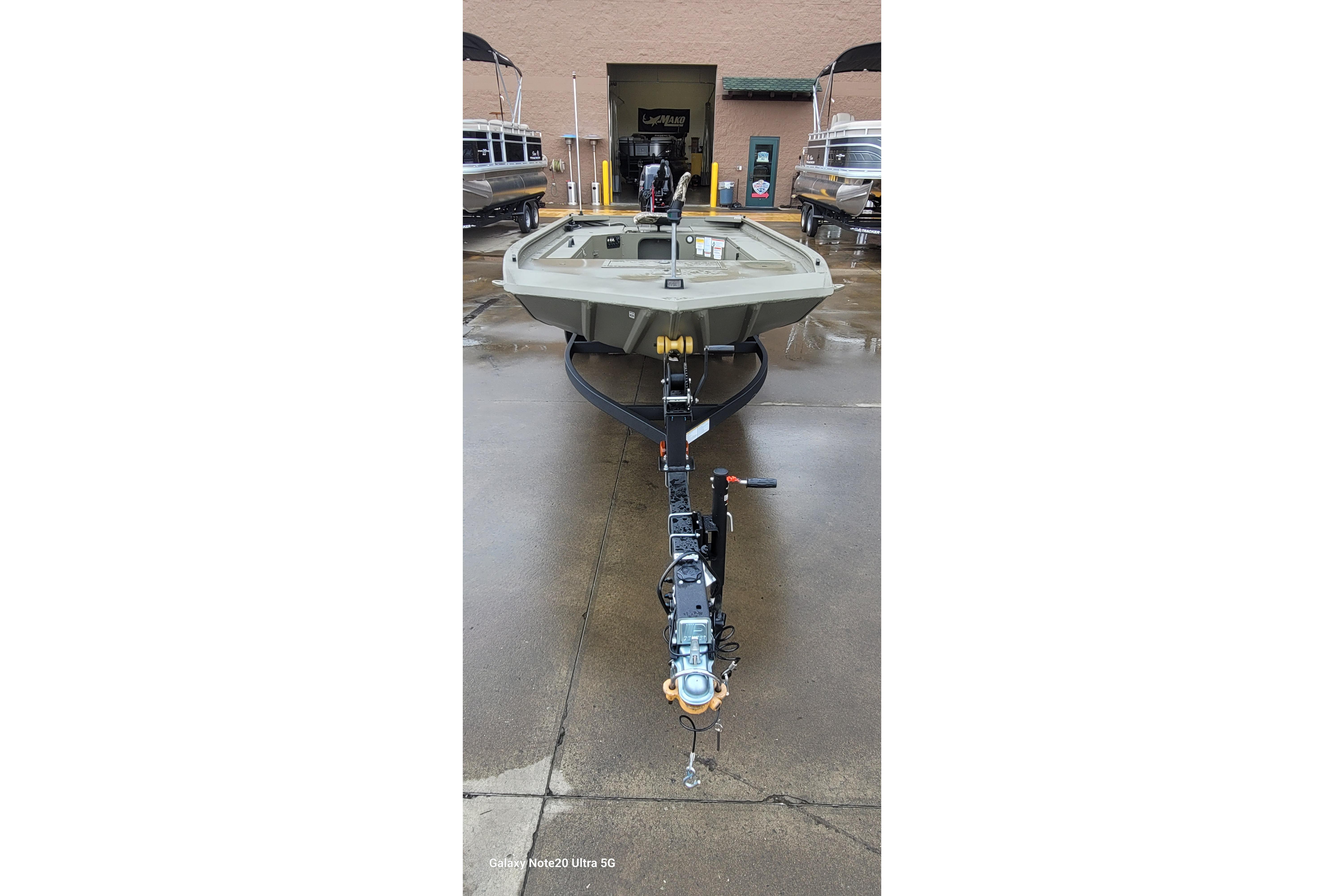 Meet the TRACKER® GRIZZLY® 1654 T Sportsman, a rugged and versatile duck-hunting vessel built to withstand the demands of waterfowling adventures. This specialized boat features an optimized layout, including a lockable bow deck storage compartment, a port rod/gear box, and a lockable, removable starboard gun box, providing the functionality and convenience essential for successful hunts on the water. The GRIZZLY 1654 T Sportsman is constructed with a unitized, all-welded stringer, transom, and Mod V hull, ensuring exceptional durability and a smooth, dry ride even in challenging conditions. The integrated transom sponsons further enhance the boat's performance in shallow waters, allowing you to navigate effortlessly through various terrains. Finished with our exclusive Forest Green powder-coat finish, this all-aluminum vessel exudes quality and resilience. Additionally, optional Grassland or Woodland camo patterns are available for those seeking a customized look to blend into their surroundings. Just like every GRIZZLY model, the 1654 T Sportsman is backed by the TRACKER PROMISE, providing you with the best factory warranty in the realm of aluminum boats. With its robust construction, specialized features, and reliable warranty, the GRIZZLY 1654 T Sportsman stands as the ultimate waterfowl-hunting machine, ready to elevate your hunting experiences on the water.