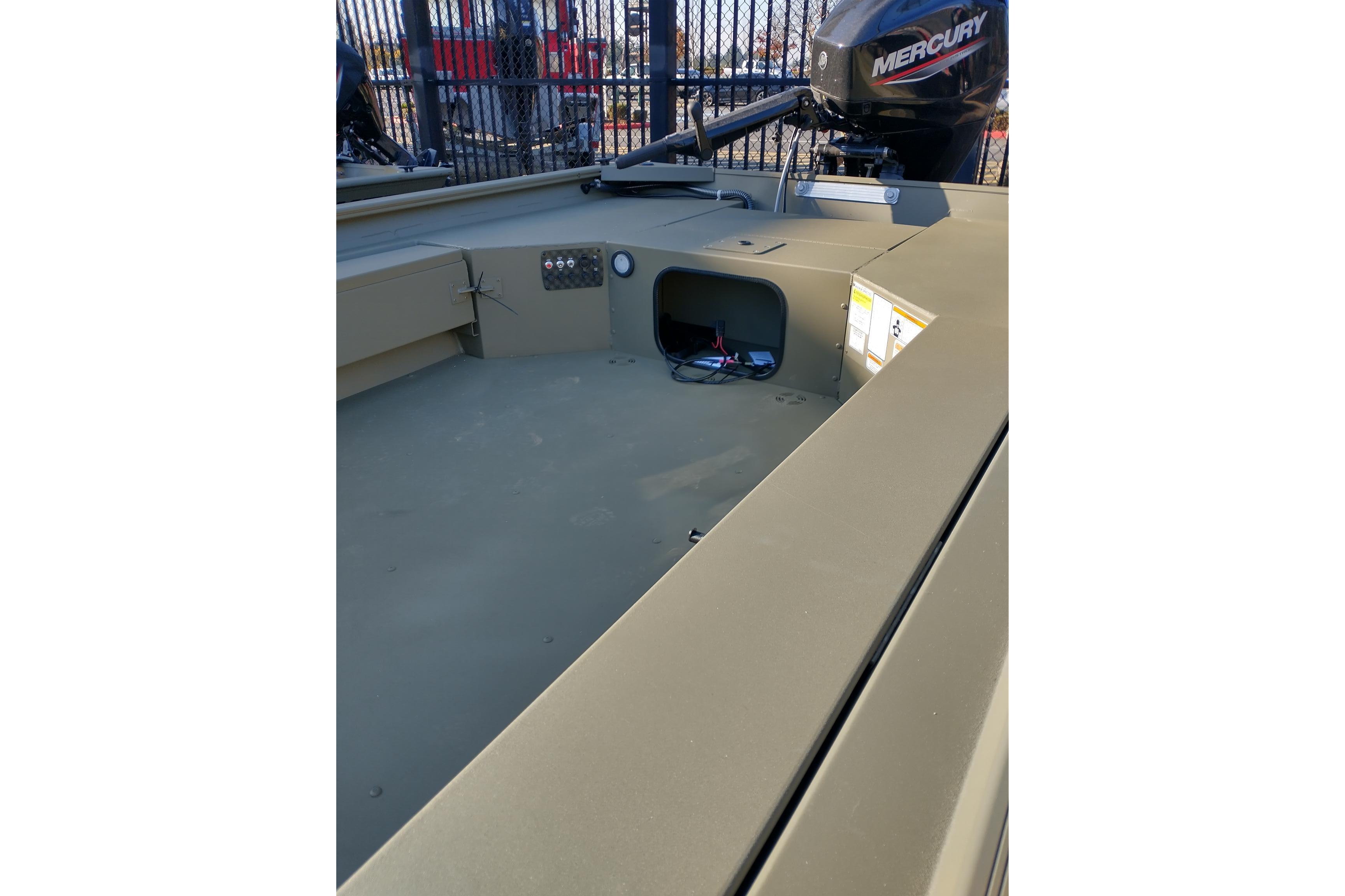Meet the TRACKER® GRIZZLY® 1654 T Sportsman, a rugged and versatile duck-hunting vessel built to withstand the demands of waterfowling adventures. This specialized boat features an optimized layout, including a lockable bow deck storage compartment, a port rod/gear box, and a lockable, removable starboard gun box, providing the functionality and convenience essential for successful hunts on the water. The GRIZZLY 1654 T Sportsman is constructed with a unitized, all-welded stringer, transom, and Mod V hull, ensuring exceptional durability and a smooth, dry ride even in challenging conditions. The integrated transom sponsons further enhance the boat's performance in shallow waters, allowing you to navigate effortlessly through various terrains. Finished with our exclusive Forest Green powder-coat finish, this all-aluminum vessel exudes quality and resilience. Additionally, optional Grassland or Woodland camo patterns are available for those seeking a customized look to blend into their surroundings. Just like every GRIZZLY model, the 1654 T Sportsman is backed by the TRACKER PROMISE, providing you with the best factory warranty in the realm of aluminum boats. With its robust construction, specialized features, and reliable warranty, the GRIZZLY 1654 T Sportsman stands as the ultimate waterfowl-hunting machine, ready to elevate your hunting experiences on the water.