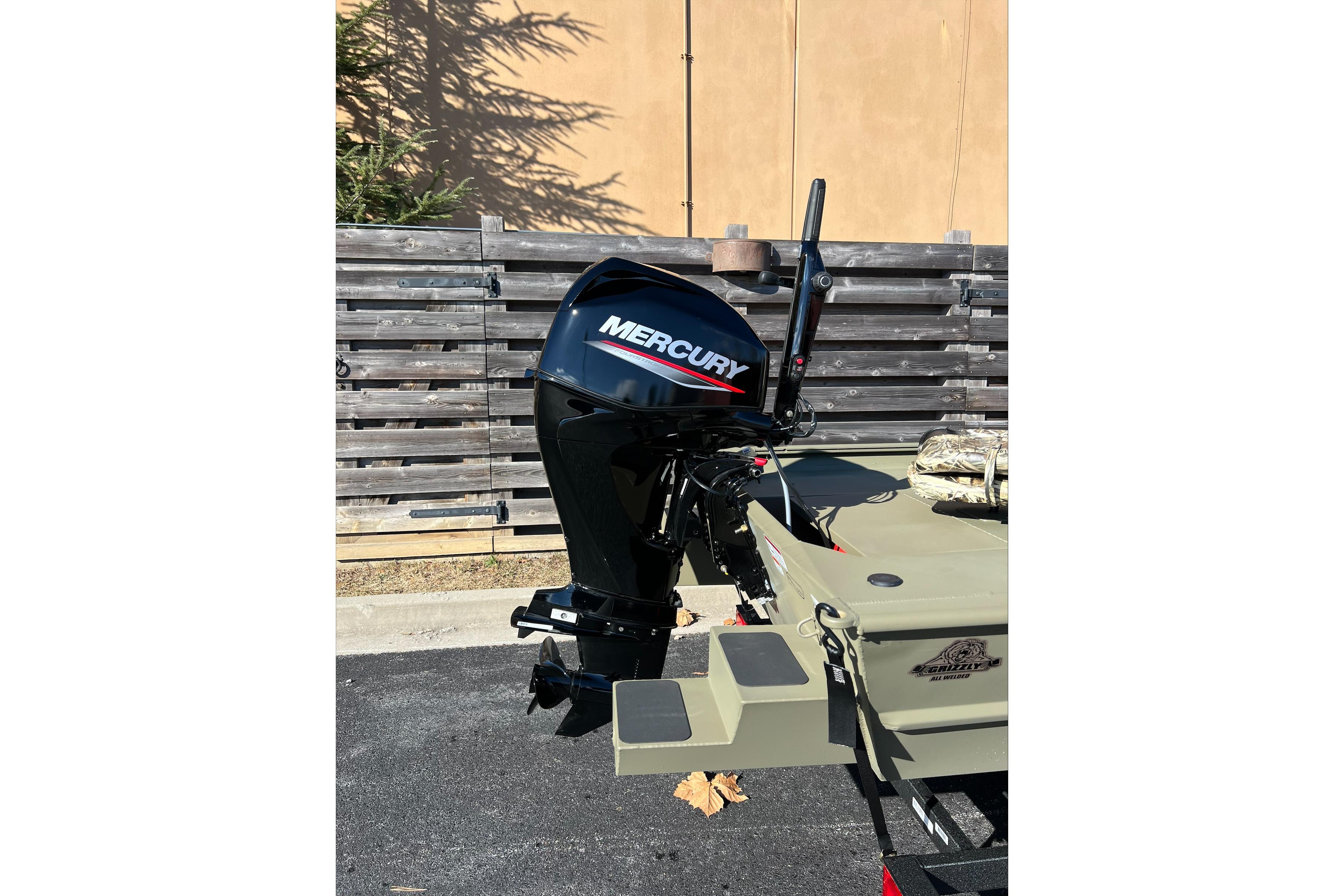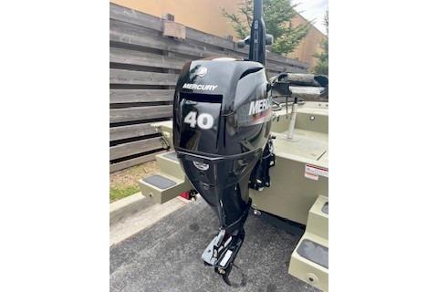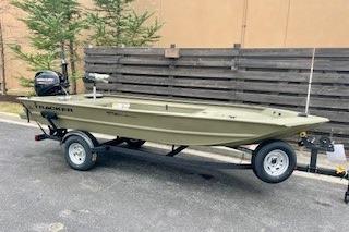 Meet the TRACKER® GRIZZLY® 1654 T Sportsman, a rugged and versatile duck-hunting vessel built to withstand the demands of waterfowling adventures. This specialized boat features an optimized layout, including a lockable bow deck storage compartment, a port rod/gear box, and a lockable, removable starboard gun box, providing the functionality and convenience essential for successful hunts on the water. The GRIZZLY 1654 T Sportsman is constructed with a unitized, all-welded stringer, transom, and Mod V hull, ensuring exceptional durability and a smooth, dry ride even in challenging conditions. The integrated transom sponsons further enhance the boat's performance in shallow waters, allowing you to navigate effortlessly through various terrains. Finished with our exclusive Forest Green powder-coat finish, this all-aluminum vessel exudes quality and resilience. Additionally, optional Grassland or Woodland camo patterns are available for those seeking a customized look to blend into their surroundings. Just like every GRIZZLY model, the 1654 T Sportsman is backed by the TRACKER PROMISE, providing you with the best factory warranty in the realm of aluminum boats. With its robust construction, specialized features, and reliable warranty, the GRIZZLY 1654 T Sportsman stands as the ultimate waterfowl-hunting machine, ready to elevate your hunting experiences on the water. A 1-Bank Noco Charger ensures your battery is ready when you are, Mercury Smart Craft Connect let's you track your engine hours and keeps you up to date on the Mercury's performance and a spare tire and carrier gives you extra protection from your home to the water and back.