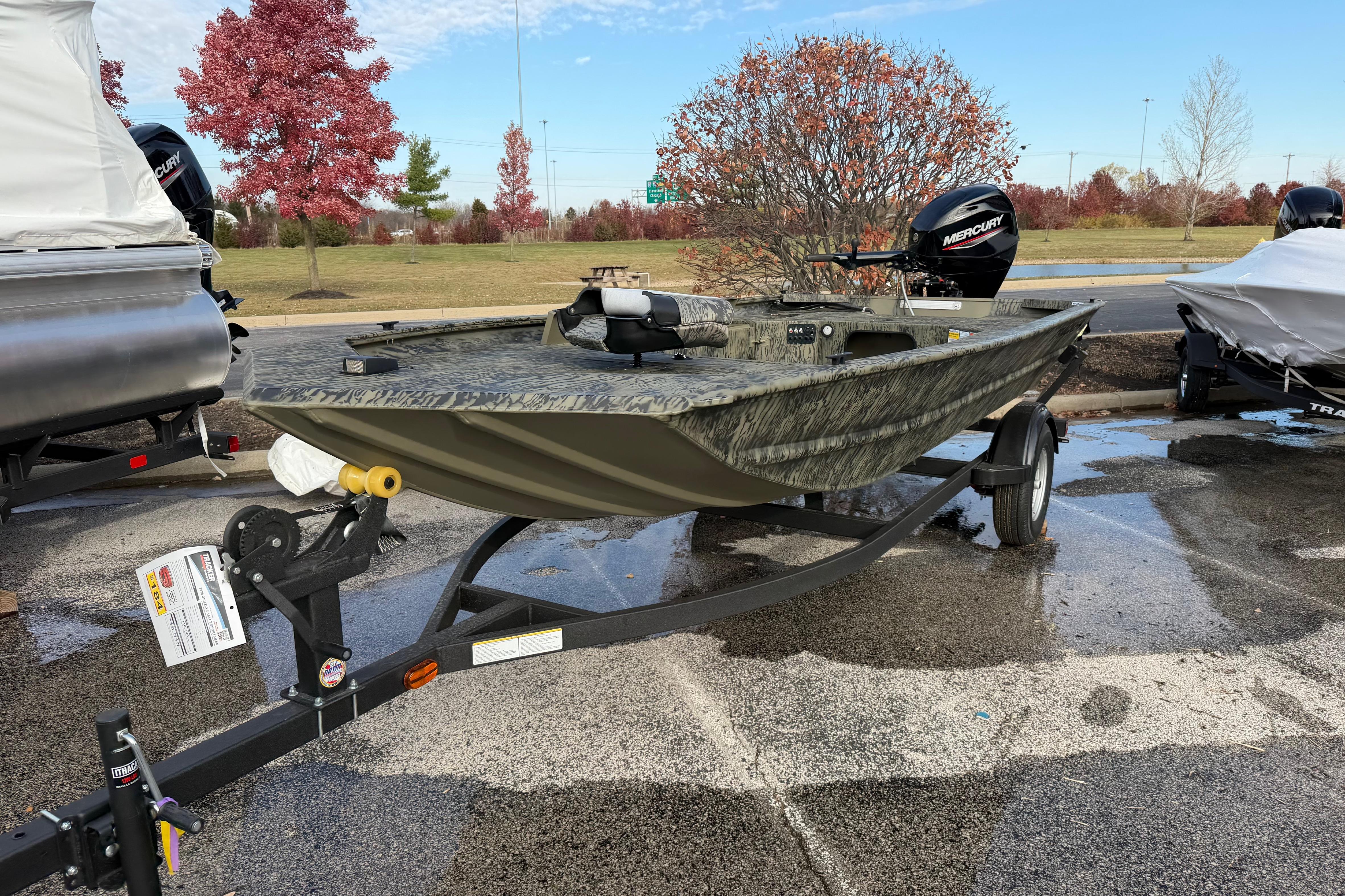 Meet the TRACKER® GRIZZLY® 1654 T Sportsman, a rugged and versatile duck-hunting vessel built to withstand the demands of waterfowling adventures. This specialized boat features an optimized layout, including a lockable bow deck storage compartment, a port rod/gear box, and a lockable, removable starboard gun box, providing the functionality and convenience essential for successful hunts on the water. The GRIZZLY 1654 T Sportsman is constructed with a unitized, all-welded stringer, transom, and Mod V hull, ensuring exceptional durability and a smooth, dry ride even in challenging conditions. The integrated transom sponsons further enhance the boat's performance in shallow waters, allowing you to navigate effortlessly through various terrains. Finished with our exclusive Forest Green powder-coat finish, this all-aluminum vessel exudes quality and resilience. Additionally, optional Grassland or Woodland camo patterns are available for those seeking a customized look to blend into their surroundings. Just like every GRIZZLY model, the 1654 T Sportsman is backed by the TRACKER PROMISE, providing you with the best factory warranty in the realm of aluminum boats. With its robust construction, specialized features, and reliable warranty, the GRIZZLY 1654 T Sportsman stands as the ultimate waterfowl-hunting machine, ready to elevate your hunting experiences on the water.