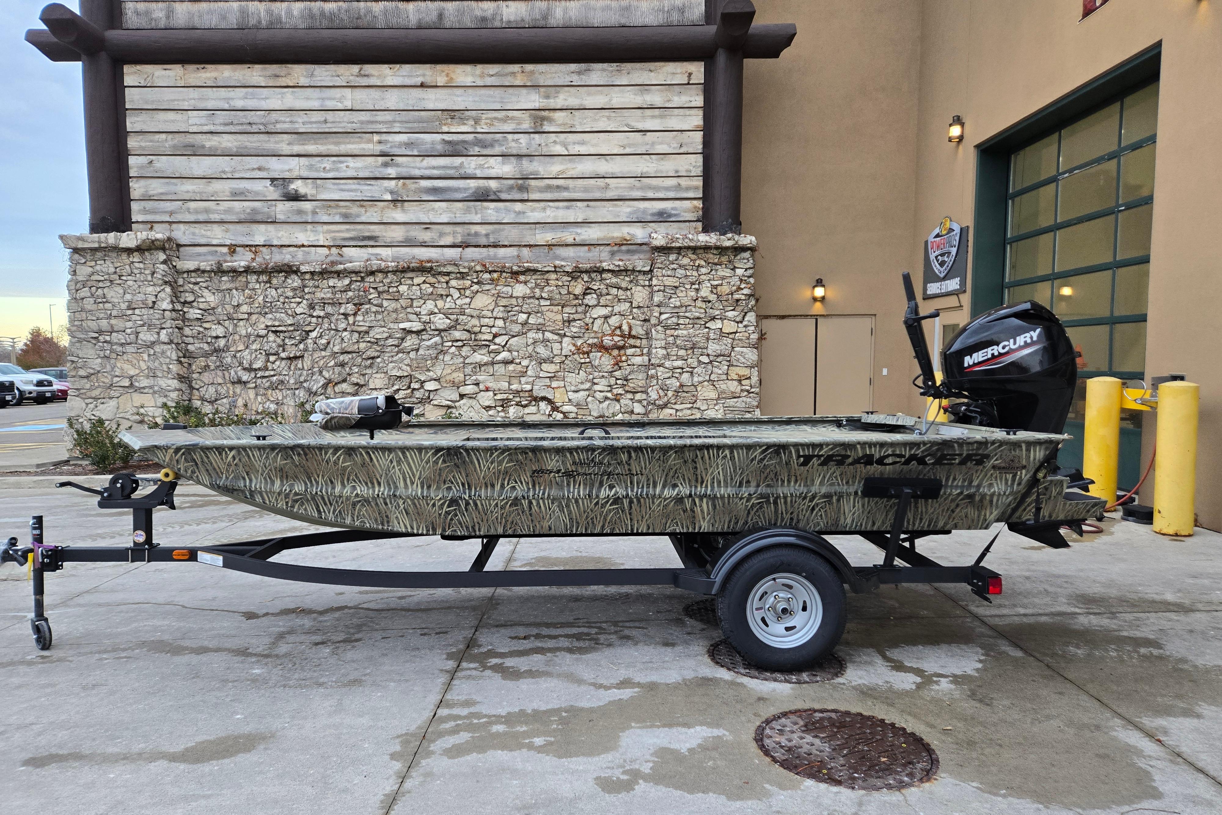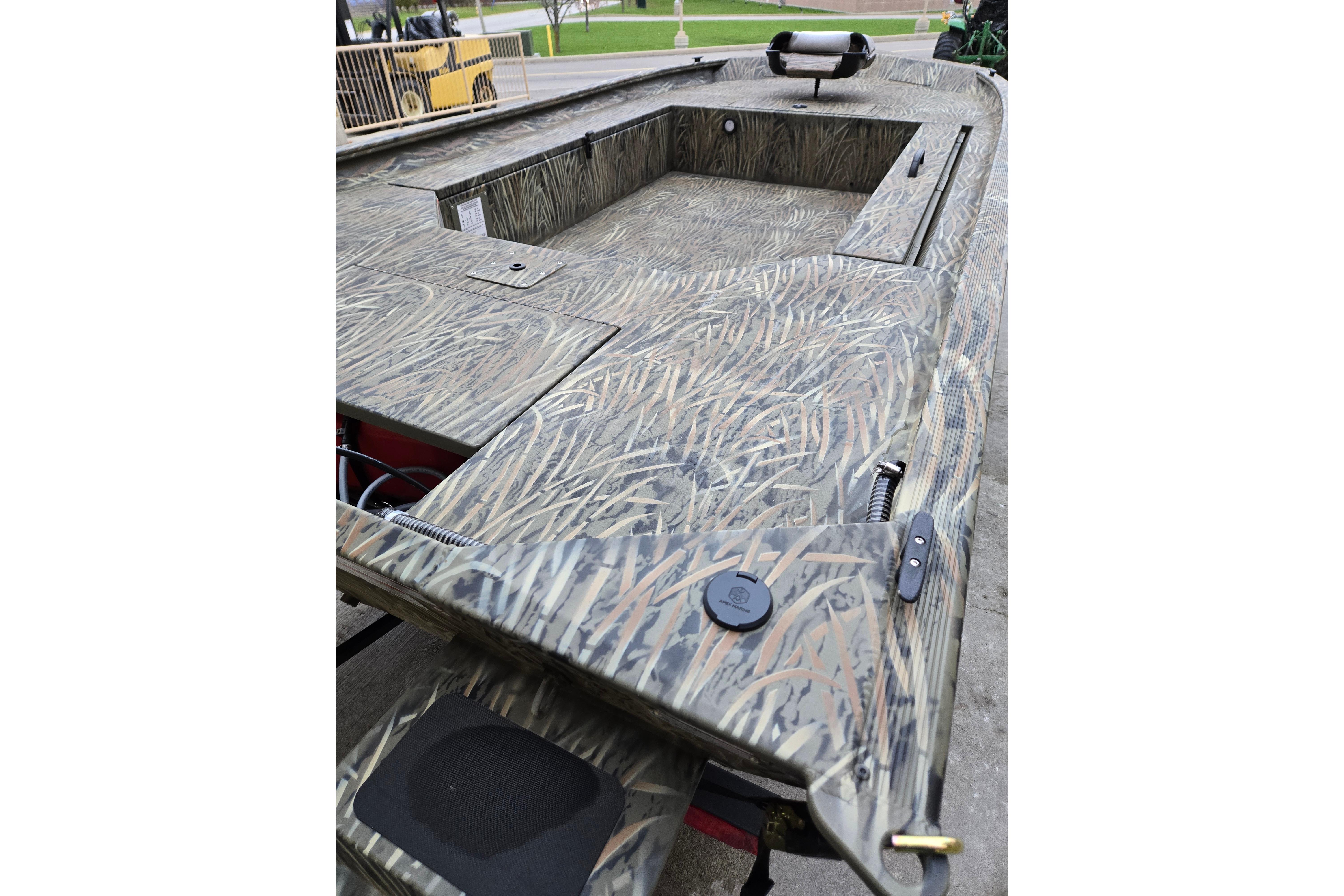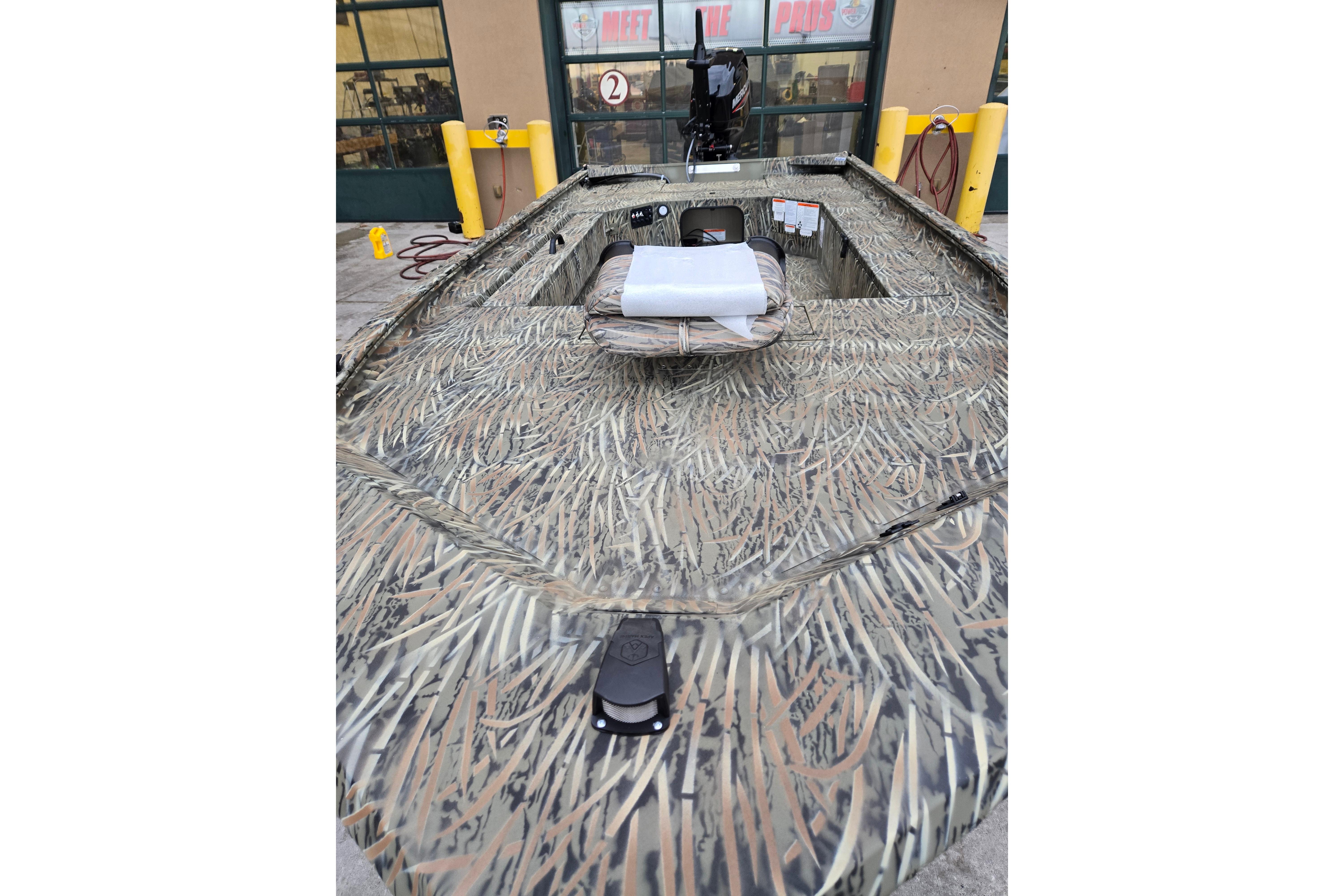 Meet the TRACKER® GRIZZLY® 1654 T Sportsman, a rugged and versatile duck-hunting vessel built to withstand the demands of waterfowling adventures. This specialized boat features an optimized layout, including a lockable bow deck storage compartment, a port rod/gear box, and a lockable, removable starboard gun box, providing the functionality and convenience essential for successful hunts on the water. The GRIZZLY 1654 T Sportsman is constructed with a unitized, all-welded stringer, transom, and Mod V hull, ensuring exceptional durability and a smooth, dry ride even in challenging conditions. The integrated transom sponsons further enhance the boat's performance in shallow waters, allowing you to navigate effortlessly through various terrains. Finished with our exclusive Forest Green powder-coat finish, this all-aluminum vessel exudes quality and resilience. Additionally, optional Grassland or Woodland camo patterns are available for those seeking a customized look to blend into their surroundings. Just like every GRIZZLY model, the 1654 T Sportsman is backed by the TRACKER PROMISE, providing you with the best factory warranty in the realm of aluminum boats. With its robust construction, specialized features, and reliable warranty, the GRIZZLY 1654 T Sportsman stands as the ultimate waterfowl-hunting machine, ready to elevate your hunting experiences on the water.