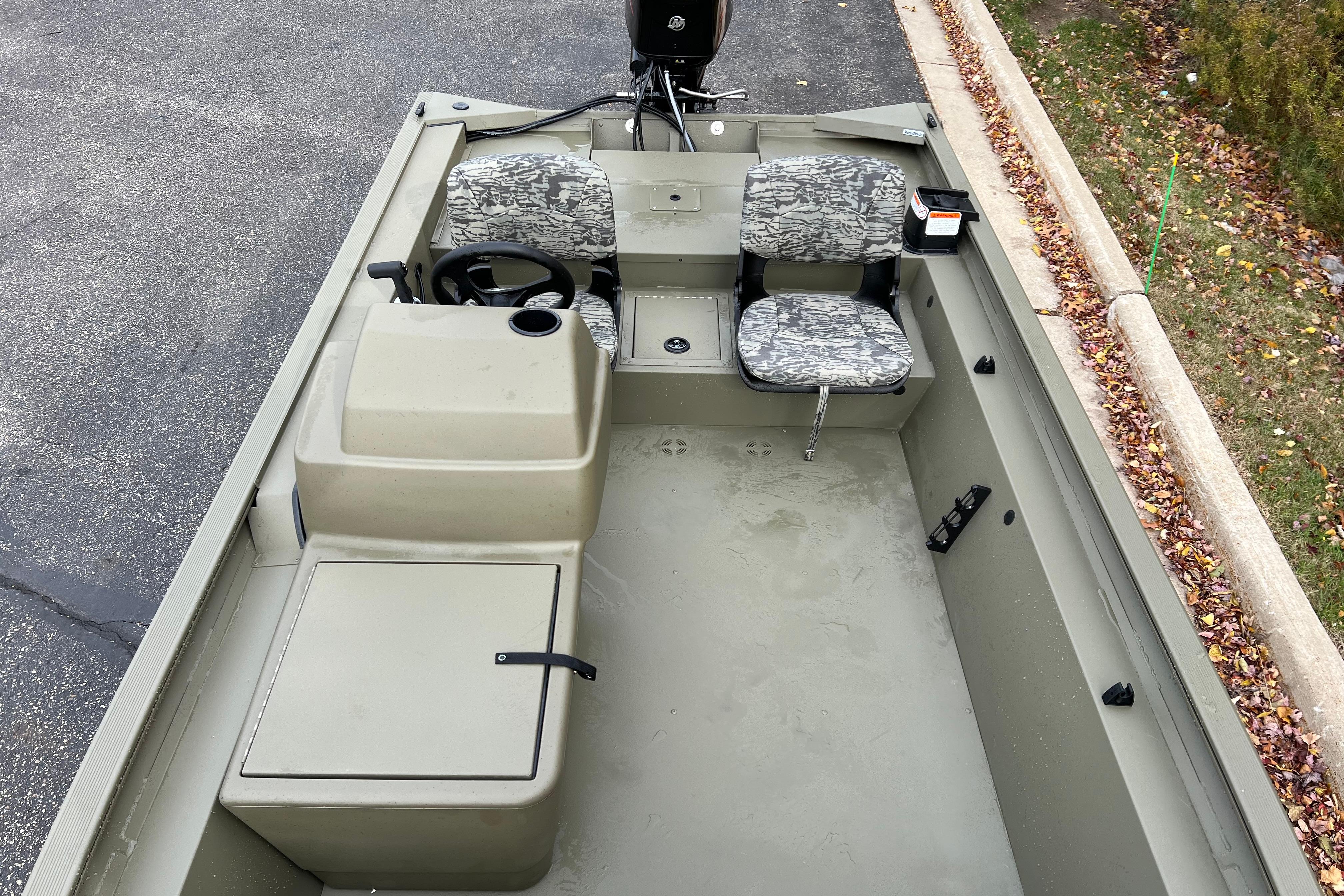 • Fixed helm & buddy seats w/cushion (NEW matching TrueTimber® camo cushion when optional camo boat pattern is chosen)
