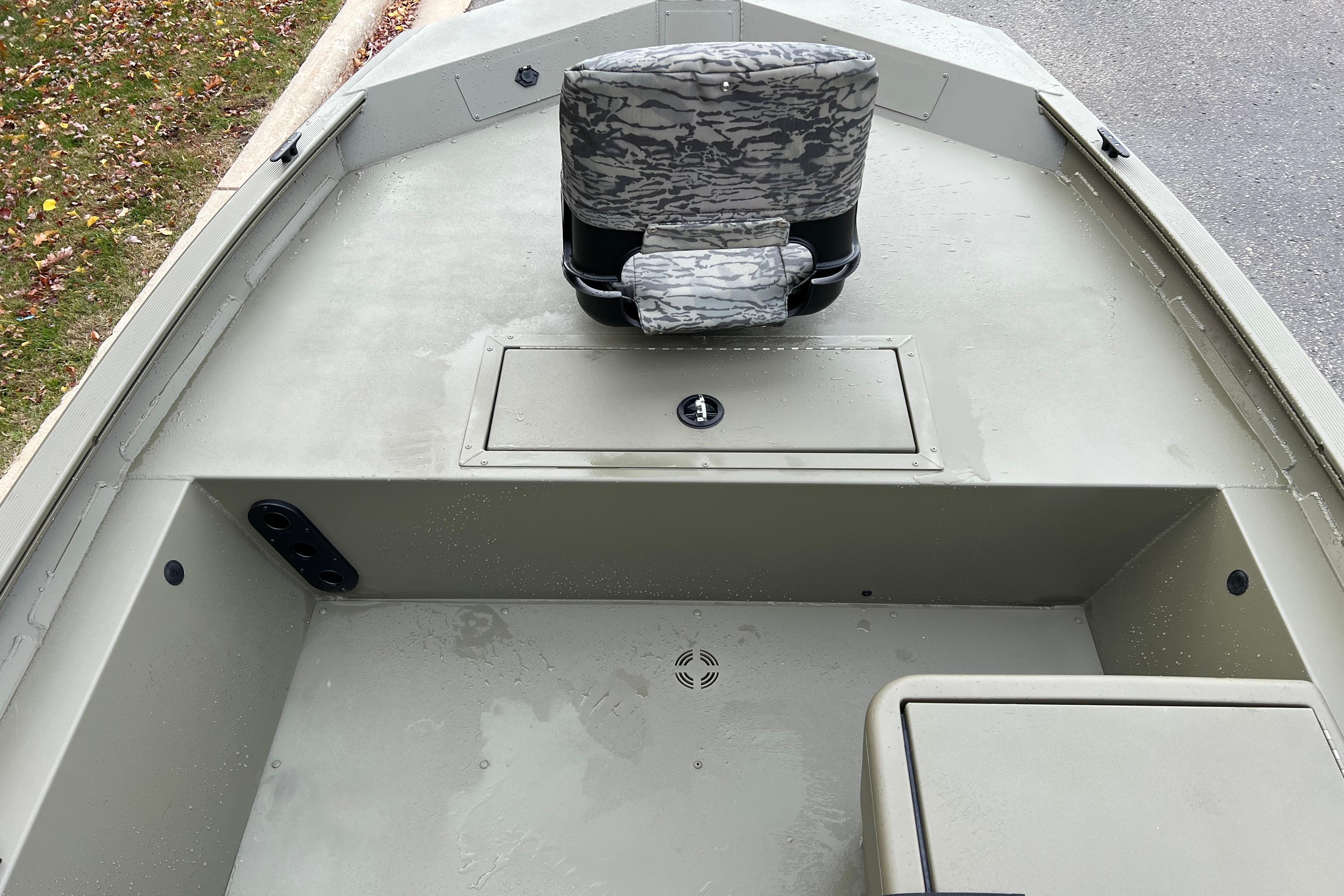 Step aboard the TRACKER® GRIZZLY® 1754 SC, a roomy and steady aluminum jon boat measuring 17' 1" in length and 6' 6" wide, offering ample space for your fishing or recreational outings. Capable of accommodating up to a 75HP motor, this versatile boat is equipped with a lockable bow deck storage compartment, ensuring that your gear stays secure and organized during your adventures on the water. The 1754 SC features a 7° deadrise hull design, providing a smooth and dry ride even in choppy waters. With a solid .190 aluminum floor and welded-in, foam-filled sides, this boat offers increased structural integrity and reduced hull noise, enhancing your overall boating experience. The fully welded hull, unitized to the all-aluminum box-beam transom via the full-length longitudinal stringer system, ensures exceptional durability and reliability in various water conditions. Backed by the TRACKER PROMISE, the GRIZZLY 1754 SC offers the best factory warranty in aluminum boats, providing you with the assurance and confidence to enjoy your time on the water worry-free. Experience the power, versatility, and dependability of the TRACKER GRIZZLY 1754 SC, your ideal companion for exciting and memorable boating experiences.