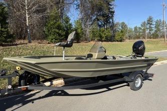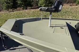 Step aboard the TRACKER® GRIZZLY® 1754 SC, a roomy and steady aluminum jon boat measuring 17' 1" in length and 6' 6" wide, offering ample space for your fishing or recreational outings. Capable of accommodating up to a 75HP motor, this versatile boat is equipped with a lockable bow deck storage compartment, ensuring that your gear stays secure and organized during your adventures on the water. The 1754 SC features a 7° deadrise hull design, providing a smooth and dry ride even in choppy waters. With a solid .190 aluminum floor and welded-in, foam-filled sides, this boat offers increased structural integrity and reduced hull noise, enhancing your overall boating experience. The fully welded hull, unitized to the all-aluminum box-beam transom via the full-length longitudinal stringer system, ensures exceptional durability and reliability in various water conditions. Backed by the TRACKER PROMISE, the GRIZZLY 1754 SC offers the best factory warranty in aluminum boats, providing you with the assurance and confidence to enjoy your time on the water worry-free. Experience the power, versatility, and dependability of the TRACKER GRIZZLY 1754 SC, your ideal companion for exciting and memorable boating experiences.