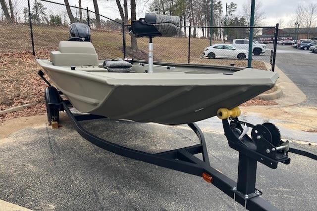 Step aboard the TRACKER® GRIZZLY® 1754 SC, a roomy and steady aluminum jon boat measuring 17' 1" in length and 6' 6" wide, offering ample space for your fishing or recreational outings. Capable of accommodating up to a 75HP motor, this versatile boat is equipped with a lockable bow deck storage compartment, ensuring that your gear stays secure and organized during your adventures on the water. The 1754 SC features a 7° deadrise hull design, providing a smooth and dry ride even in choppy waters. With a solid .190 aluminum floor and welded-in, foam-filled sides, this boat offers increased structural integrity and reduced hull noise, enhancing your overall boating experience. The fully welded hull, unitized to the all-aluminum box-beam transom via the full-length longitudinal stringer system, ensures exceptional durability and reliability in various water conditions. Backed by the TRACKER PROMISE, the GRIZZLY 1754 SC offers the best factory warranty in aluminum boats, providing you with the assurance and confidence to enjoy your time on the water worry-free. Experience the power, versatility, and dependability of the TRACKER GRIZZLY 1754 SC, your ideal companion for exciting and memorable boating experiences.