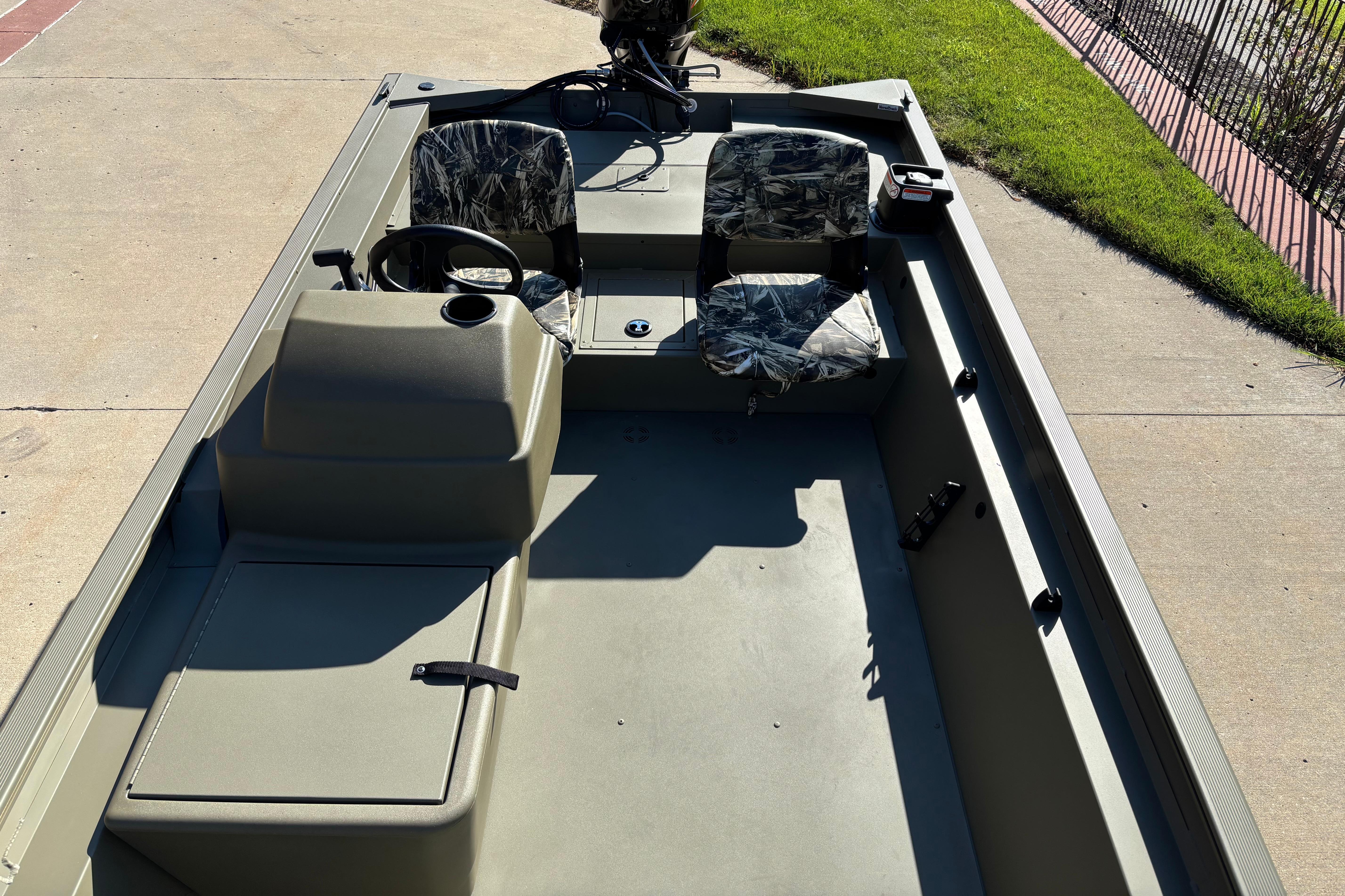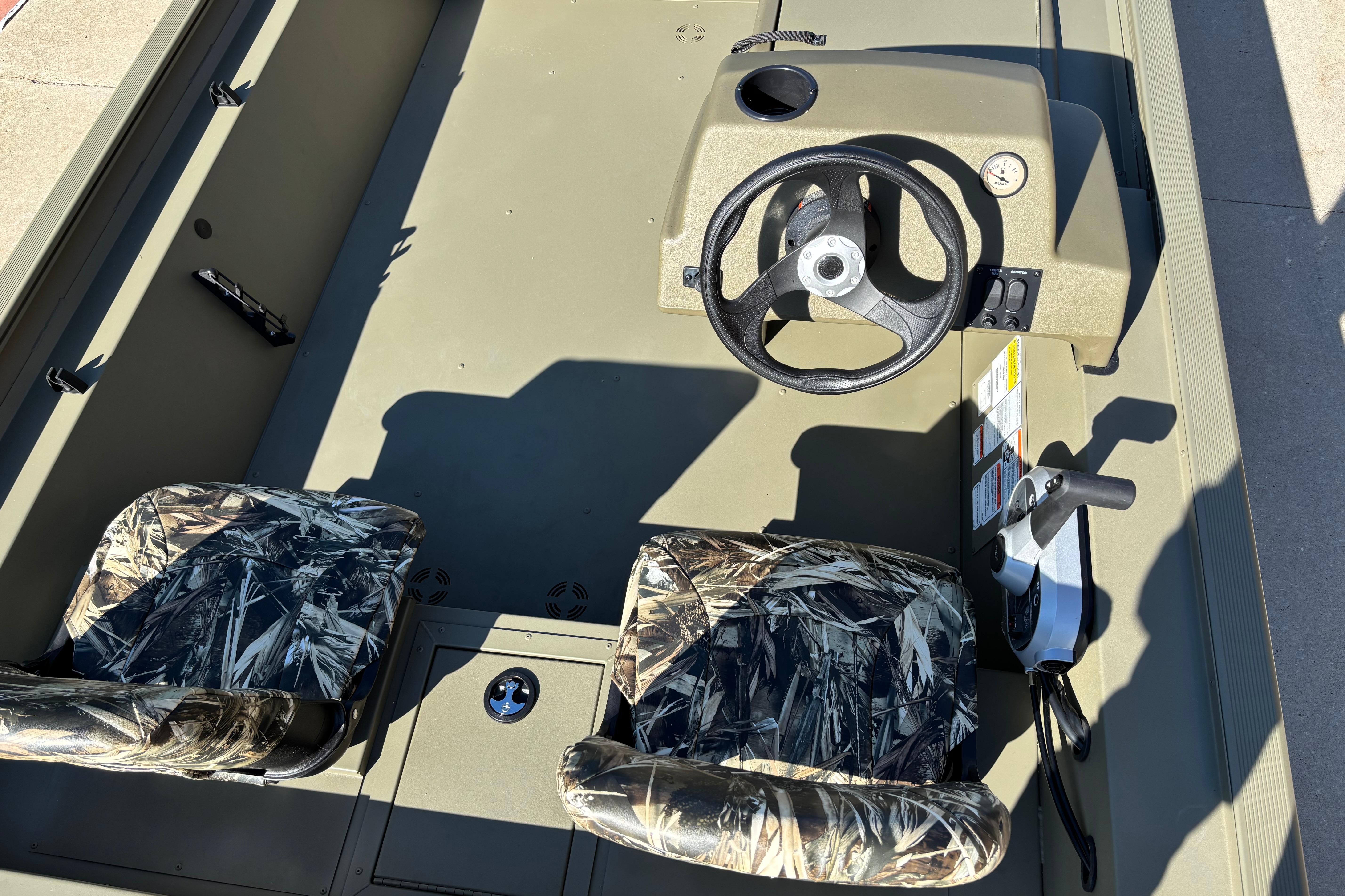 • Fixed helm & buddy seats w/cushion (NEW matching TrueTimber® camo cushion when optional camo boat pattern is chosen)