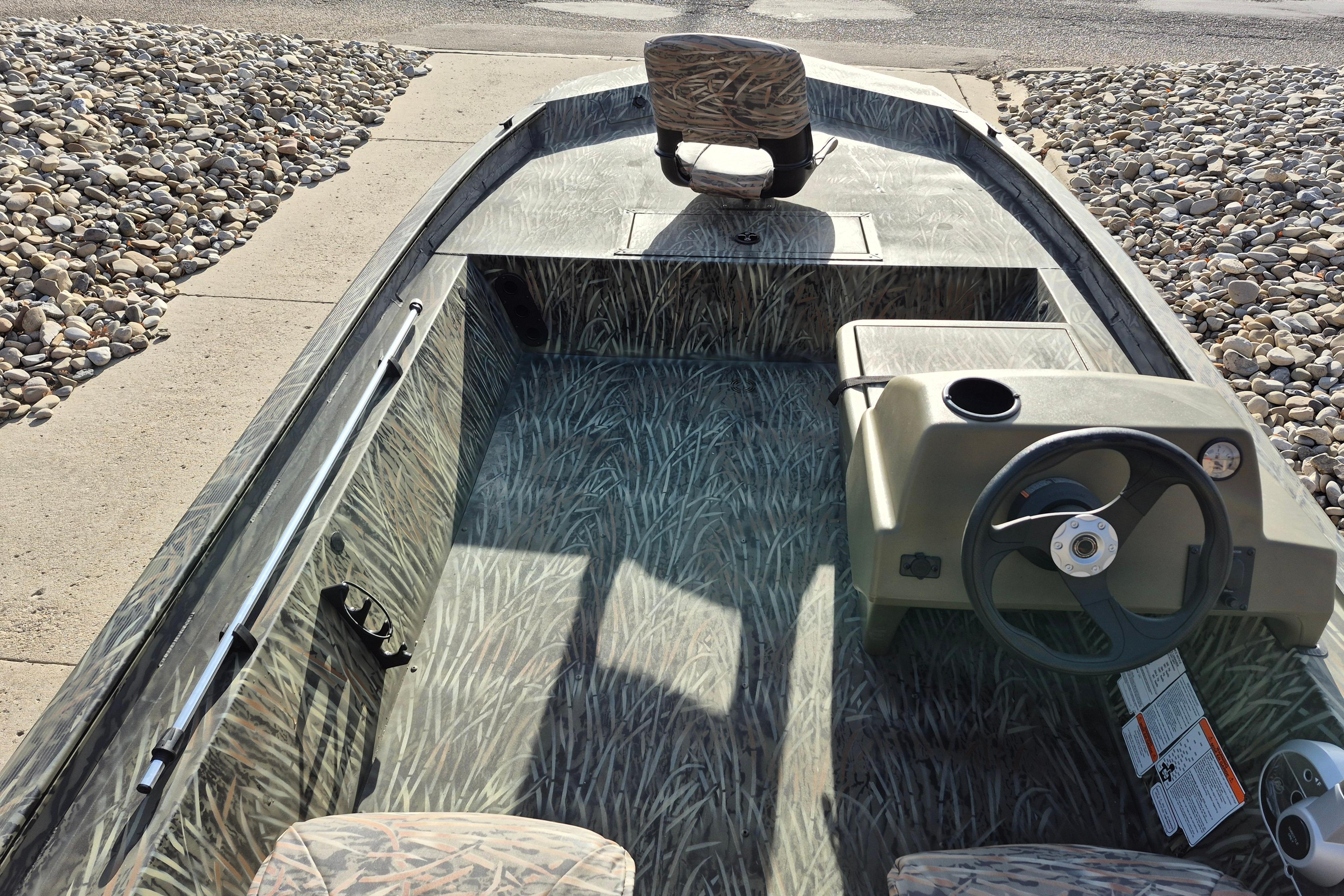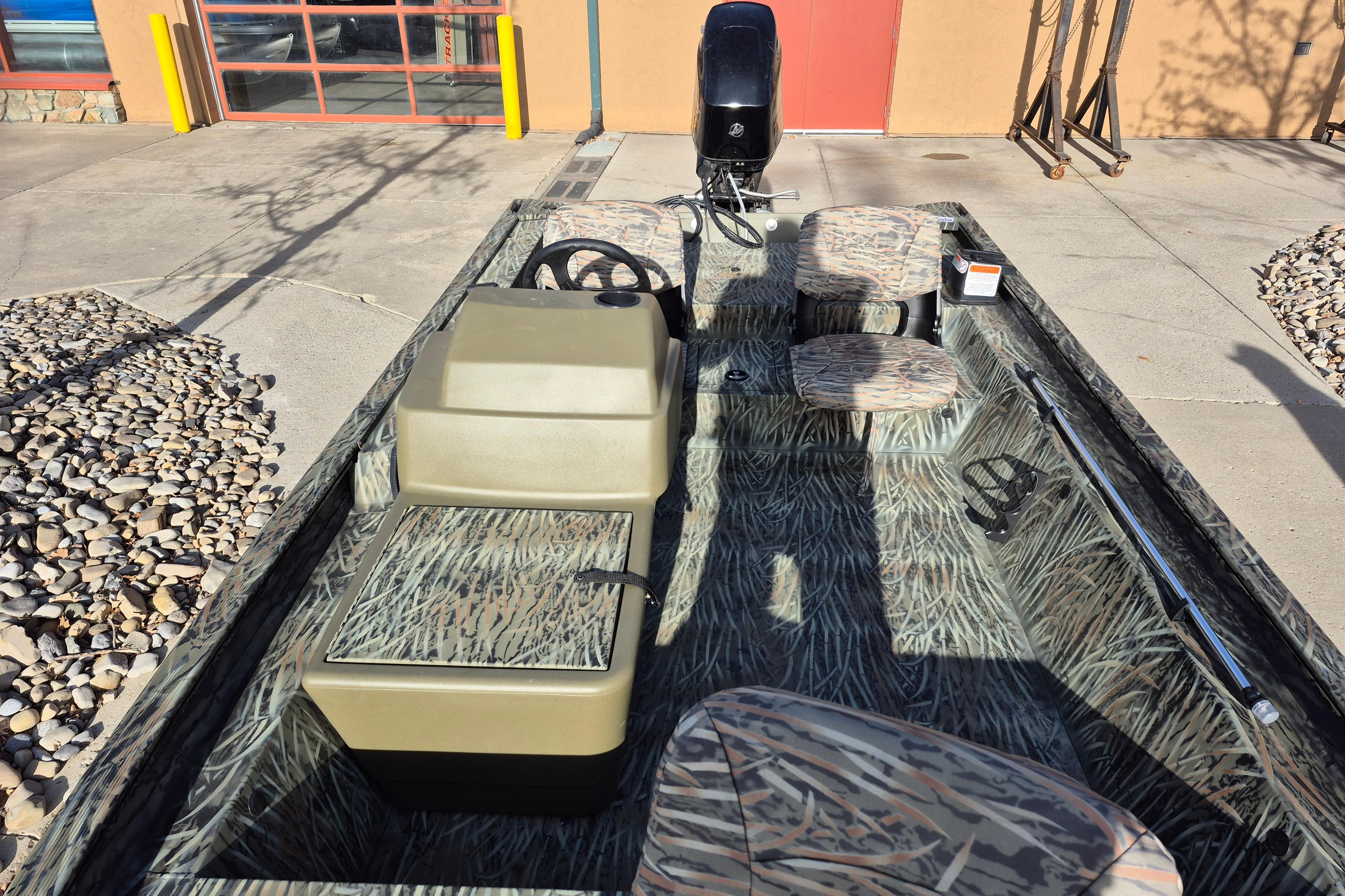 • Fixed helm & buddy seats w/cushion (NEW matching TrueTimber® camo cushion when optional camo boat pattern is chosen)