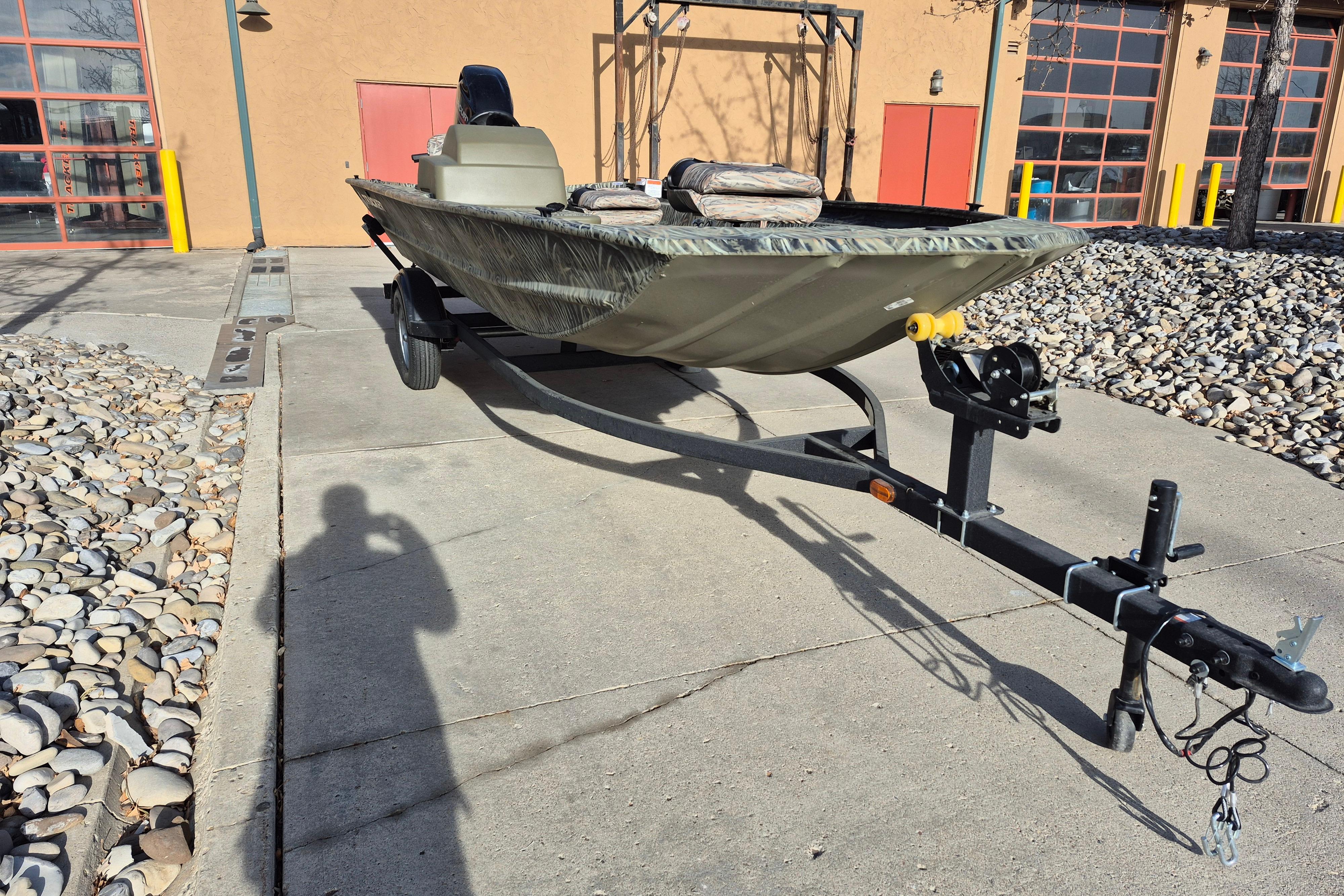 Step aboard the TRACKER® GRIZZLY® 1754 SC, a roomy and steady aluminum jon boat measuring 17' 1" in length and 6' 6" wide, offering ample space for your fishing or recreational outings. Capable of accommodating up to a 75HP motor, this versatile boat is equipped with a lockable bow deck storage compartment, ensuring that your gear stays secure and organized during your adventures on the water. The 1754 SC features a 7° deadrise hull design, providing a smooth and dry ride even in choppy waters. With a solid .190 aluminum floor and welded-in, foam-filled sides, this boat offers increased structural integrity and reduced hull noise, enhancing your overall boating experience. The fully welded hull, unitized to the all-aluminum box-beam transom via the full-length longitudinal stringer system, ensures exceptional durability and reliability in various water conditions. Backed by the TRACKER PROMISE, the GRIZZLY 1754 SC offers the best factory warranty in aluminum boats, providing you with the assurance and confidence to enjoy your time on the water worry-free. Experience the power, versatility, and dependability of the TRACKER GRIZZLY 1754 SC, your ideal companion for exciting and memorable boating experiences.
