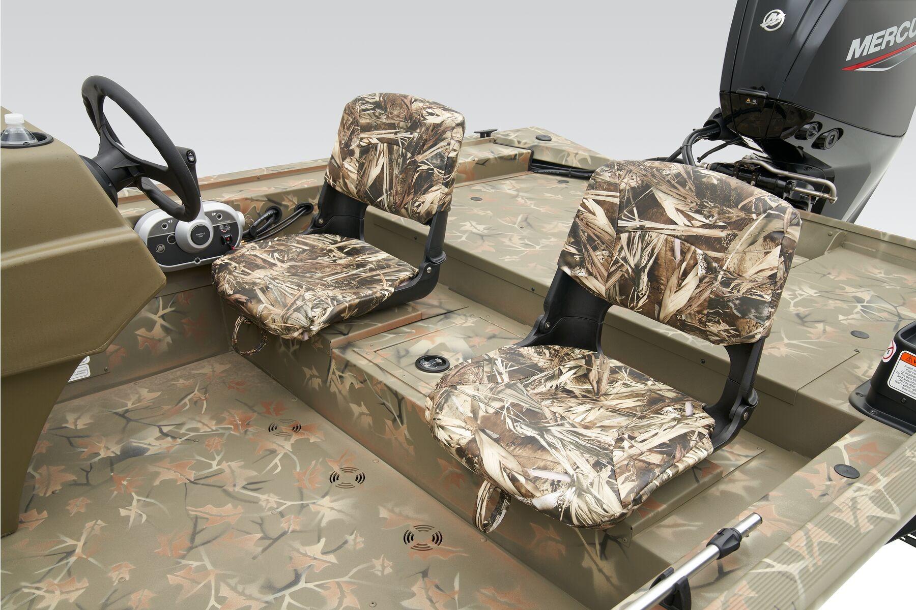 • Fixed helm & buddy seats w/cushion (NEW matching TrueTimber® camo cushion when optional camo boat pattern is chosen)