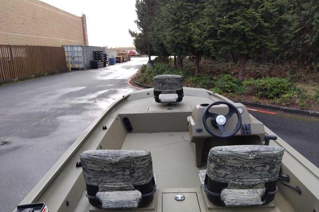 • Fixed helm & buddy seats w/cushion (NEW matching TrueTimber® camo cushion when optional camo boat pattern is chosen)
