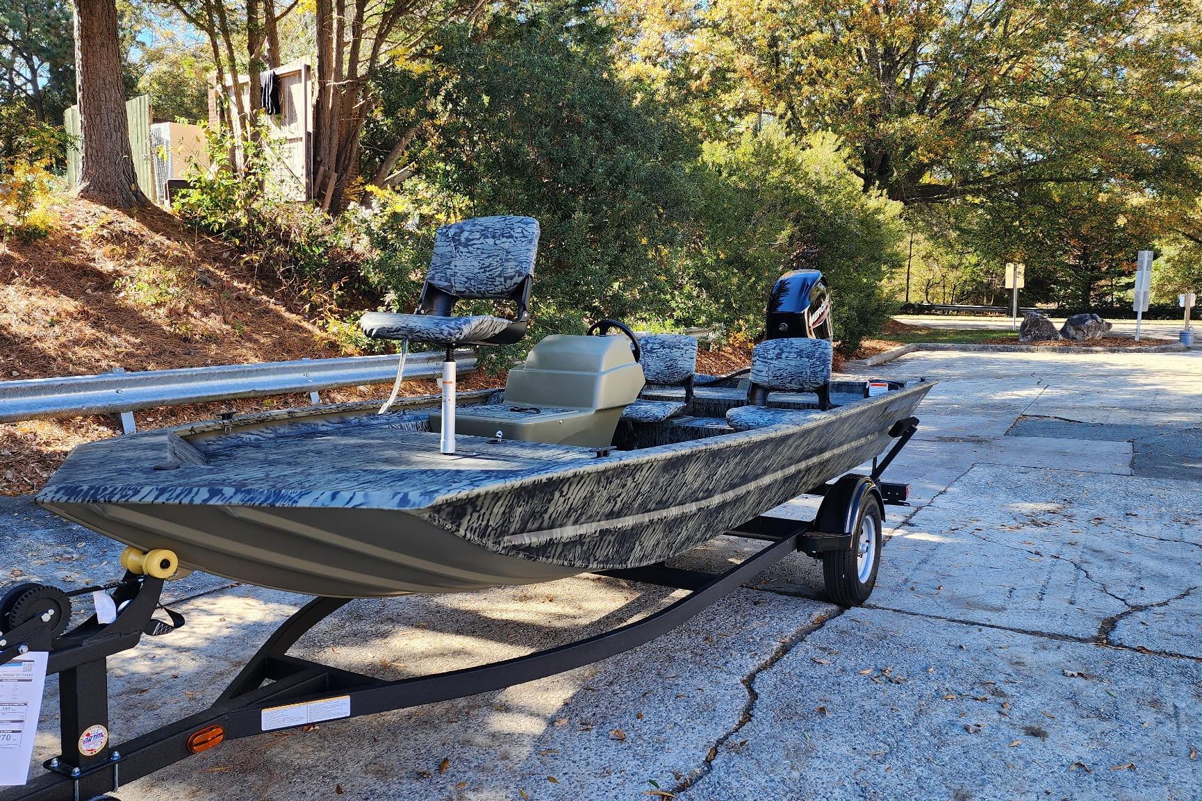 Step aboard the TRACKER® GRIZZLY® 1754 SC, a roomy and steady aluminum jon boat measuring 17' 1" in length and 6' 6" wide, offering ample space for your fishing or recreational outings. Capable of accommodating up to a 75HP motor, this versatile boat is equipped with a lockable bow deck storage compartment, ensuring that your gear stays secure and organized during your adventures on the water. The 1754 SC features a 7° deadrise hull design, providing a smooth and dry ride even in choppy waters. With a solid .190 aluminum floor and welded-in, foam-filled sides, this boat offers increased structural integrity and reduced hull noise, enhancing your overall boating experience. The fully welded hull, unitized to the all-aluminum box-beam transom via the full-length longitudinal stringer system, ensures exceptional durability and reliability in various water conditions. Backed by the TRACKER PROMISE, the GRIZZLY 1754 SC offers the best factory warranty in aluminum boats, providing you with the assurance and confidence to enjoy your time on the water worry-free. Experience the power, versatility, and dependability of the TRACKER GRIZZLY 1754 SC, your ideal companion for exciting and memorable boating experiences.