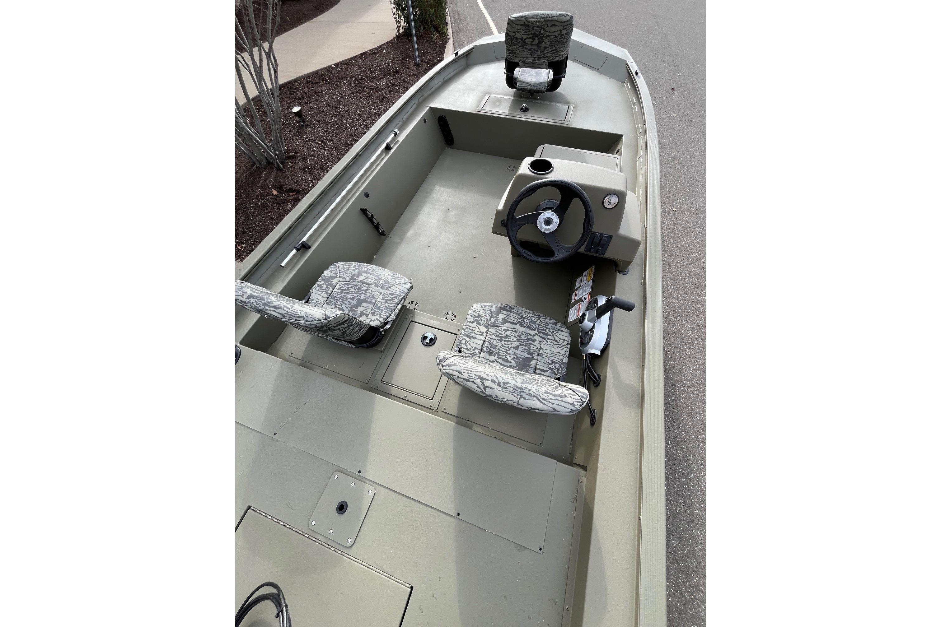 • Fixed helm & buddy seats w/cushion (NEW matching TrueTimber® camo cushion when optional camo boat pattern is chosen)