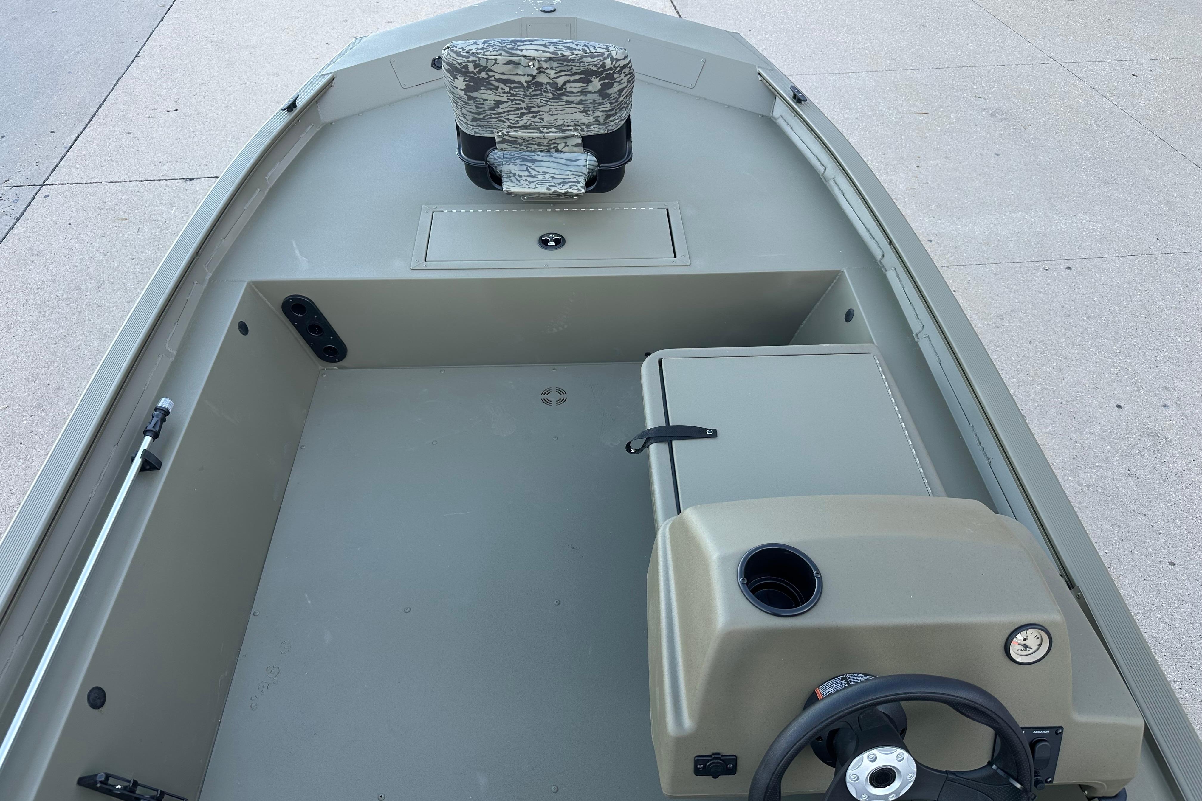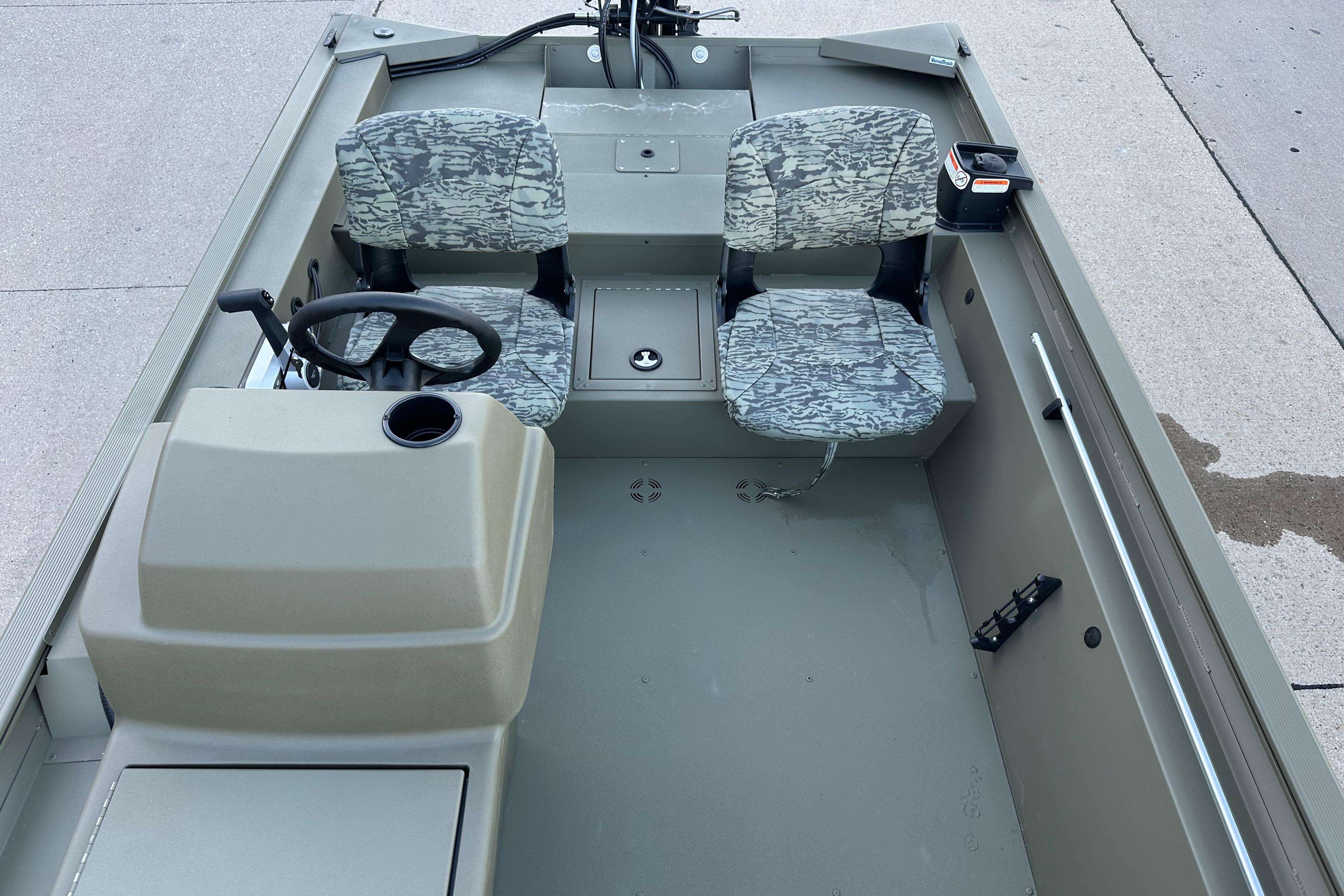 • Fixed helm & buddy seats w/cushion (NEW matching TrueTimber® camo cushion when optional camo boat pattern is chosen)