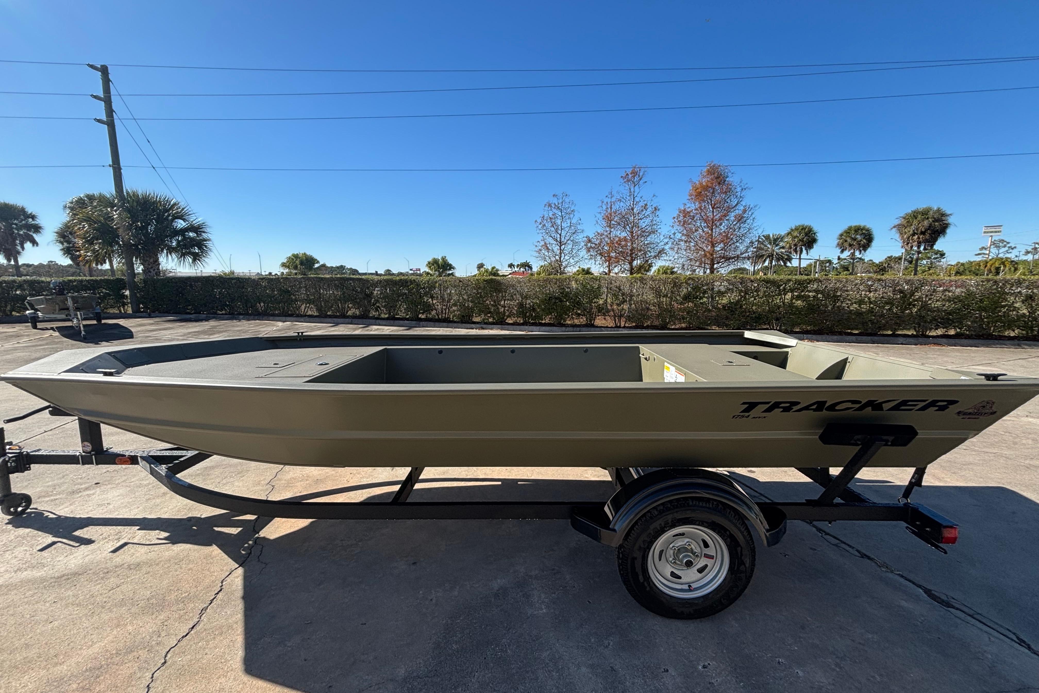 Introducing the all-welded TRACKER® GRIZZLY® 1754 Jon boat, a rugged and versatile aluminum vessel designed for both fishing and utility purposes. Measuring 17' 1" in length with a spacious 6' 6" beam, this boat offers ample space and comfort for all your outdoor adventures. Featuring a large bow deck with a lockable compartment, the 1754 Jon is not only spacious but also stable, making it an ideal choice for hunting, fishing, or bowfishing excursions. Equipped with a robust .190 aluminum cockpit floor and a textured SURE TREAD™ surface covering the entire cockpit and deck floors, the 1754 Jon ensures a secure and non-slip surface for added safety. The 7° deadrise Mod V hull guarantees a smooth and dry ride, enhancing your overall boating experience. Finished with a Forest Green powder coat, this jon boat combines durability with style, ready to tackle any water conditions with ease. As with all TRACKER boats, the GRIZZLY 1754 is supported by the reliable TRACKER PROMISE, offering the best factory warranty in the realm of aluminum boats. Experience the durability, versatility, and performance of the TRACKER GRIZZLY 1754 Jon boat, your trusted companion for various outdoor activities and adventures on the water.