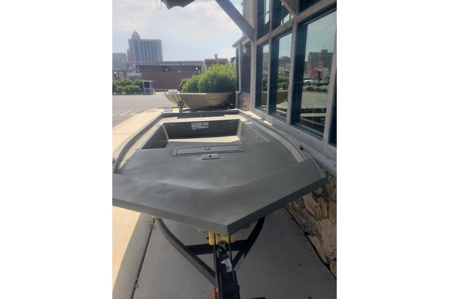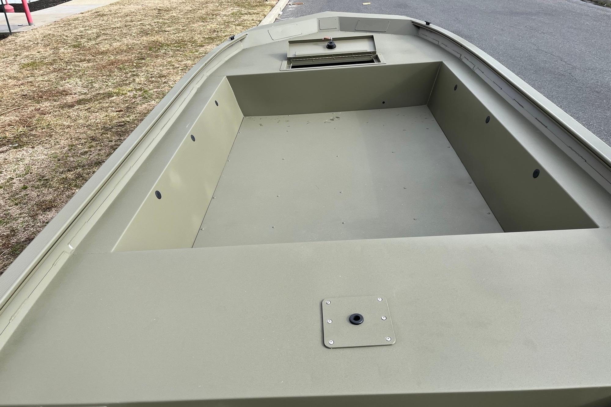 Introducing the all-welded TRACKER® GRIZZLY® 1754 Jon boat, a rugged and versatile aluminum vessel designed for both fishing and utility purposes. Measuring 17' 1" in length with a spacious 6' 6" beam, this boat offers ample space and comfort for all your outdoor adventures. Featuring a large bow deck with a lockable compartment, the 1754 Jon is not only spacious but also stable, making it an ideal choice for hunting, fishing, or bowfishing excursions. Equipped with a robust .190 aluminum cockpit floor and a textured SURE TREAD™ surface covering the entire cockpit and deck floors, the 1754 Jon ensures a secure and non-slip surface for added safety. The 7° deadrise Mod V hull guarantees a smooth and dry ride, enhancing your overall boating experience. Finished with a Forest Green powder coat, this jon boat combines durability with style, ready to tackle any water conditions with ease. As with all TRACKER boats, the GRIZZLY 1754 is supported by the reliable TRACKER PROMISE, offering the best factory warranty in the realm of aluminum boats. Experience the durability, versatility, and performance of the TRACKER GRIZZLY 1754 Jon boat, your trusted companion for various outdoor activities and adventures on the water.