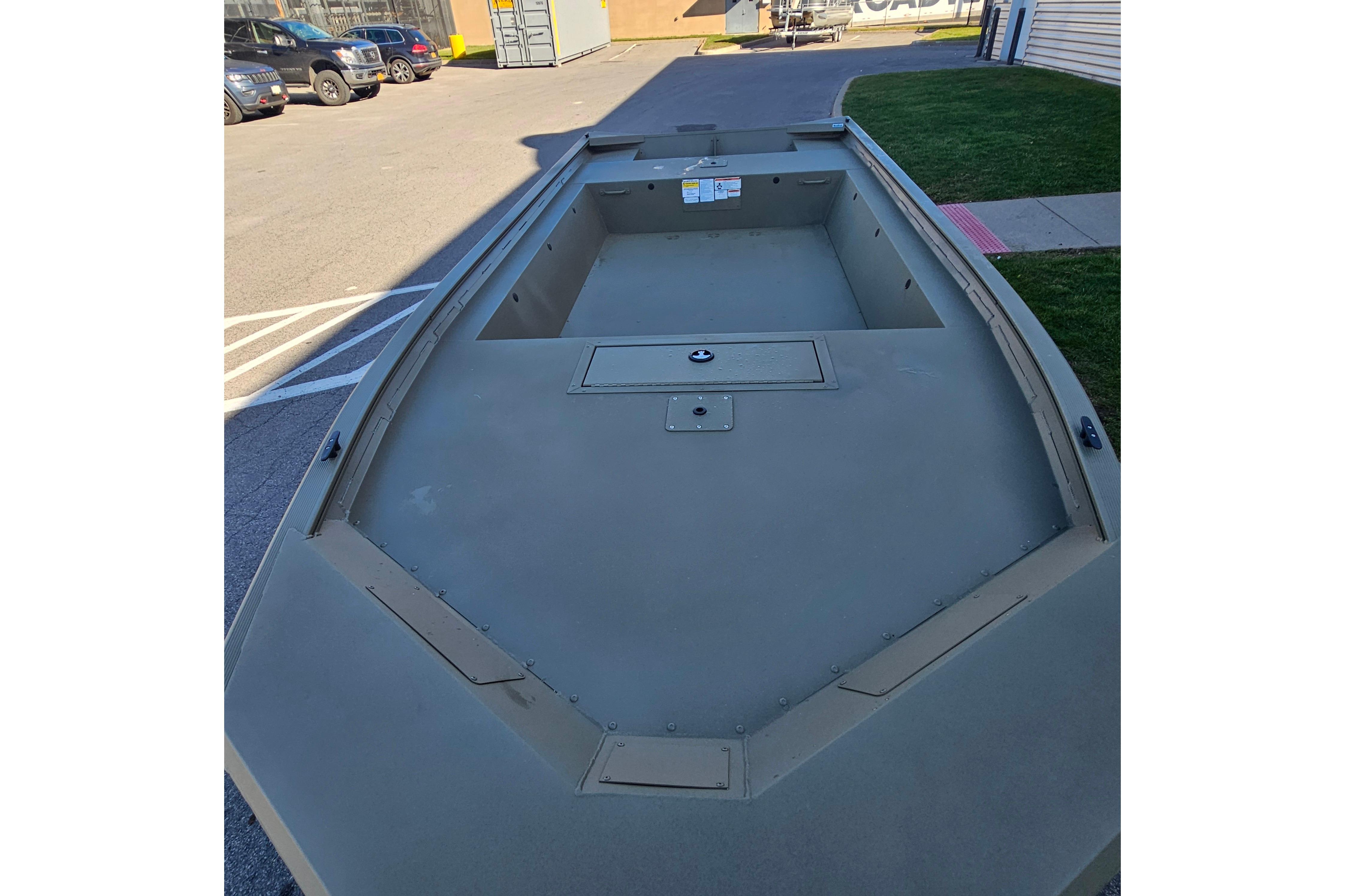 Introducing the all-welded TRACKER® GRIZZLY® 1754 Jon boat, a rugged and versatile aluminum vessel designed for both fishing and utility purposes. Measuring 17' 1" in length with a spacious 6' 6" beam, this boat offers ample space and comfort for all your outdoor adventures. Featuring a large bow deck with a lockable compartment, the 1754 Jon is not only spacious but also stable, making it an ideal choice for hunting, fishing, or bowfishing excursions. Equipped with a robust .190 aluminum cockpit floor and a textured SURE TREAD™ surface covering the entire cockpit and deck floors, the 1754 Jon ensures a secure and non-slip surface for added safety. The 7° deadrise Mod V hull guarantees a smooth and dry ride, enhancing your overall boating experience. Finished with a Forest Green powder coat, this jon boat combines durability with style, ready to tackle any water conditions with ease. As with all TRACKER boats, the GRIZZLY 1754 is supported by the reliable TRACKER PROMISE, offering the best factory warranty in the realm of aluminum boats. Experience the durability, versatility, and performance of the TRACKER GRIZZLY 1754 Jon boat, your trusted companion for various outdoor activities and adventures on the water.