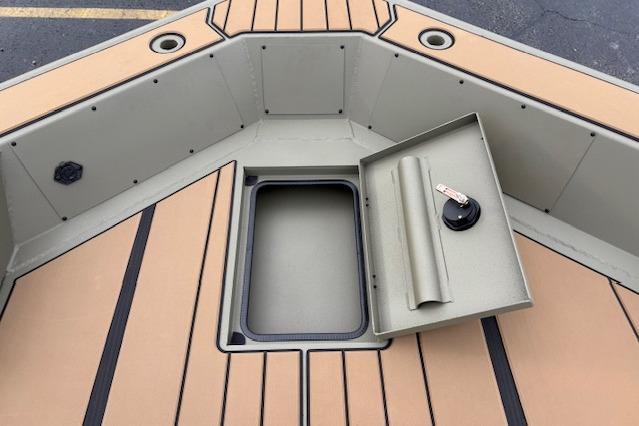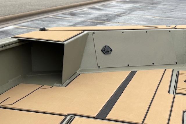 Designed for versatility, it features a spacious front deck ideal for duck hunting, multiple lockable storage compartments, and dry storage in the aft port seat pod. The interior includes Sure Tread™ non-skid flooring for safety and longevity, along with strategically placed tie-down points for gear security. The exclusive VERSATRACK® accessory channel allows customization. Constructed from 100% aluminum with a wood-free transom system, it provides a smooth, dry ride thanks to its 7° deadrise and icebreaker keel. Additional features include integrated spud pole tubes, rear transom steps, and a welded foam-filled interior for strength. Equipped with practical electrical components and a powder-coated trailer, this boat is perfect for die hard waterfowl hunters, and outdoor enthusiasts seeking durability and style in striking Forest Green or TrueTimber® camo patterns.