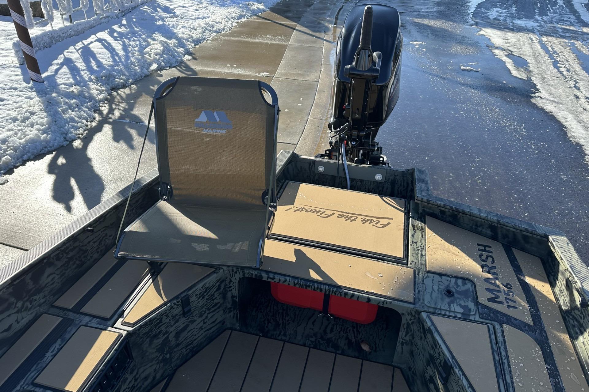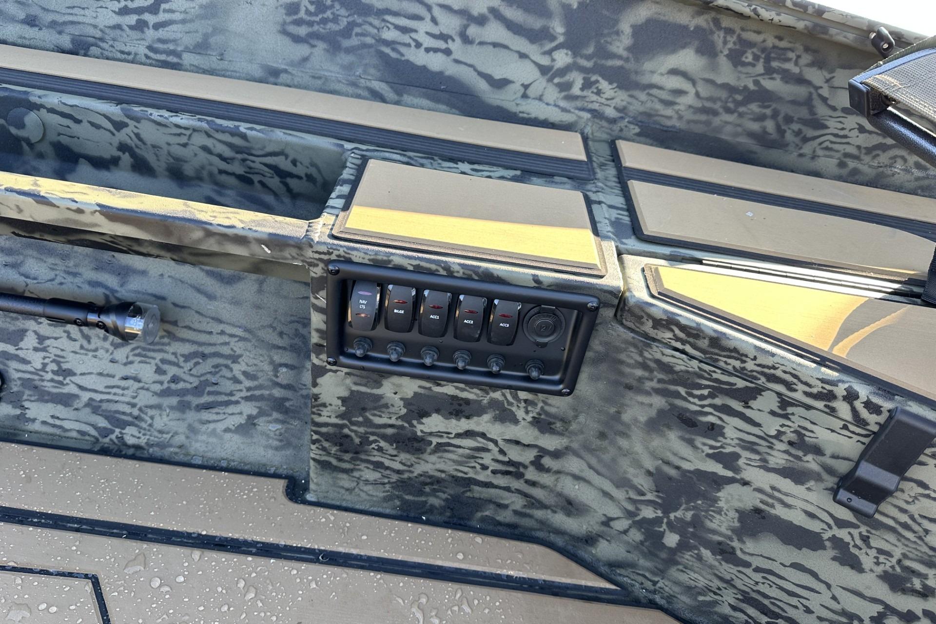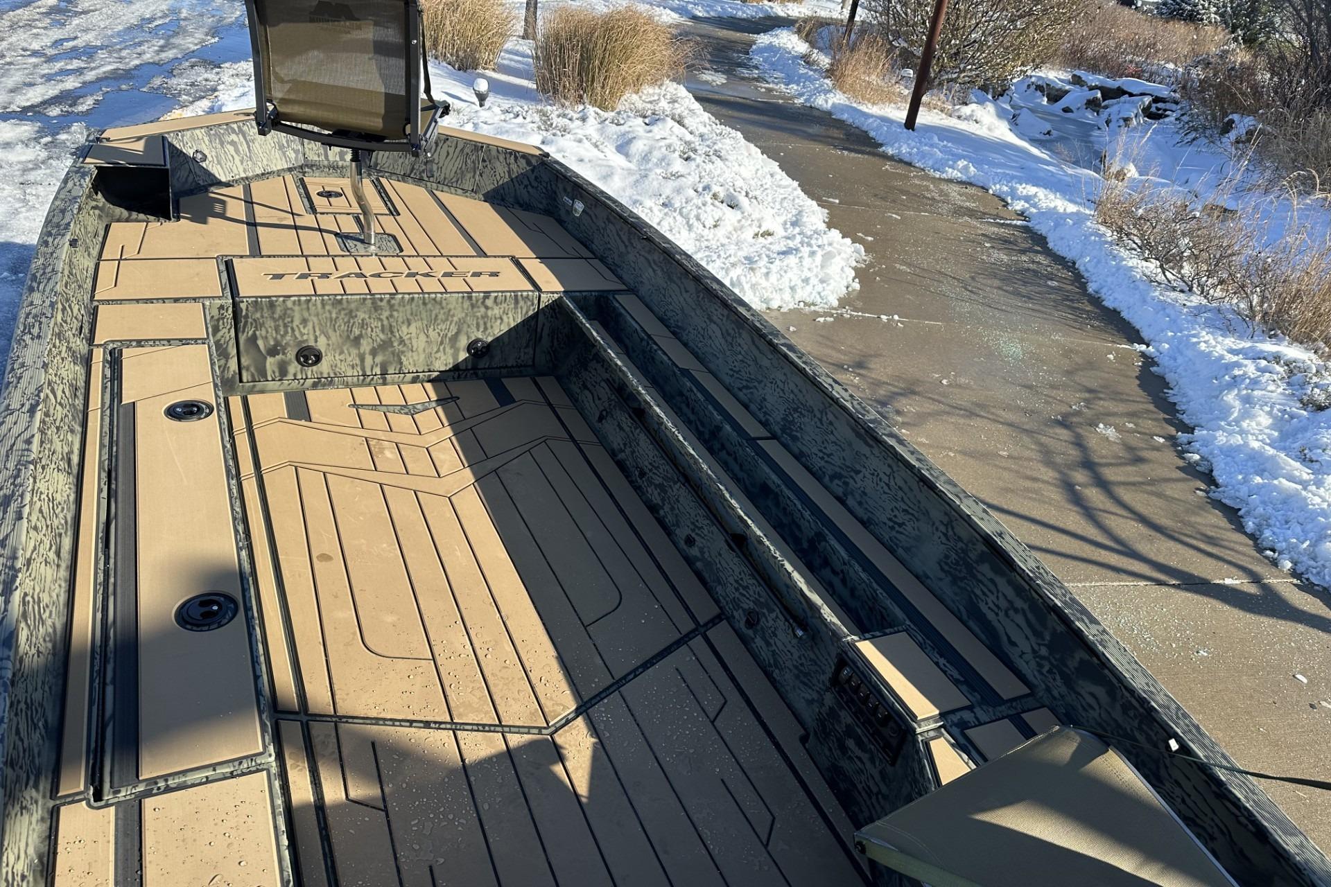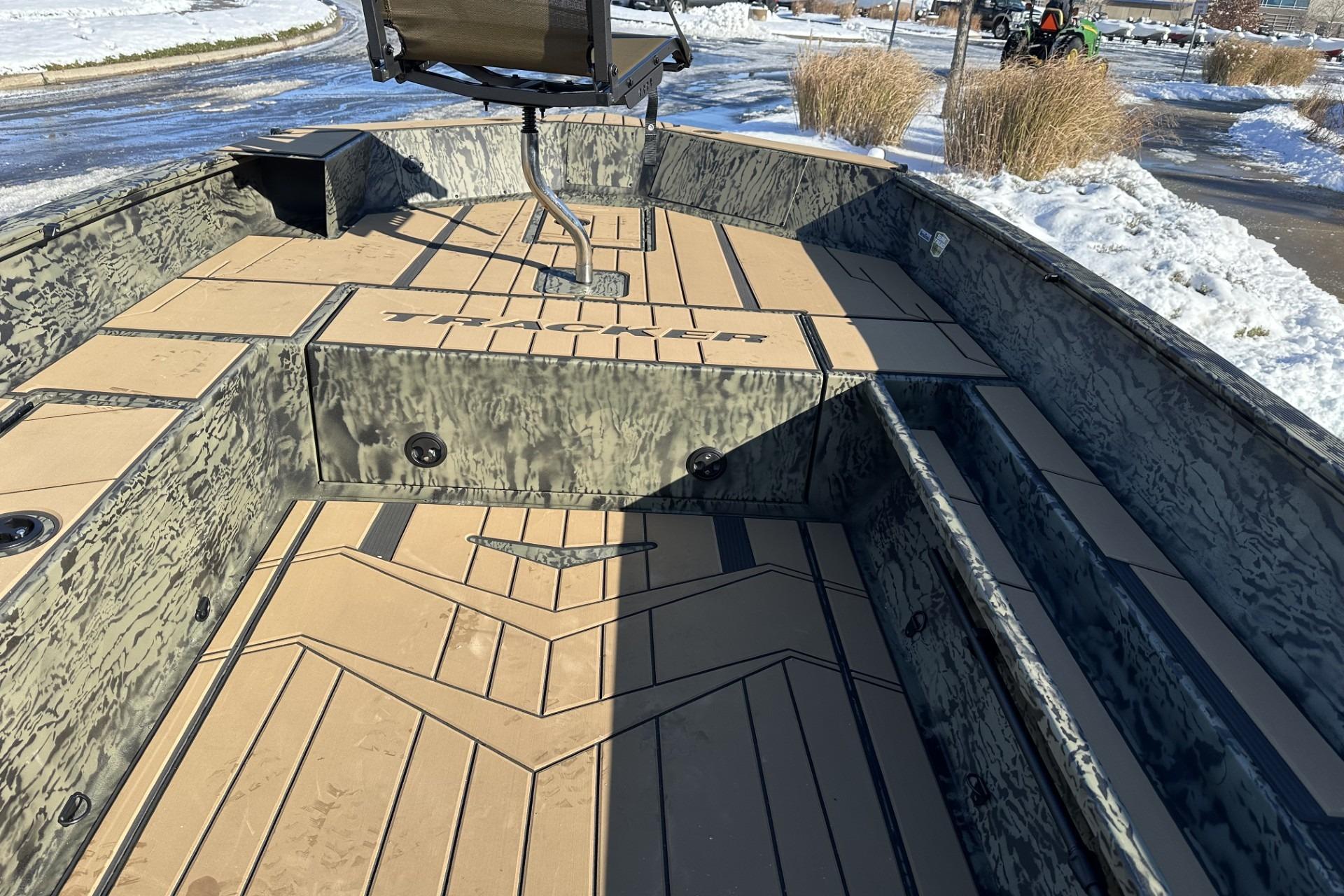 Included Options: Millennium Seat Kit (2 seats & 1 pedestal), Bob's Machine Manual Kickback Jack Plate, MarineMat Flooring upgrade, True Timber Woodland Camo Color Upgrade
