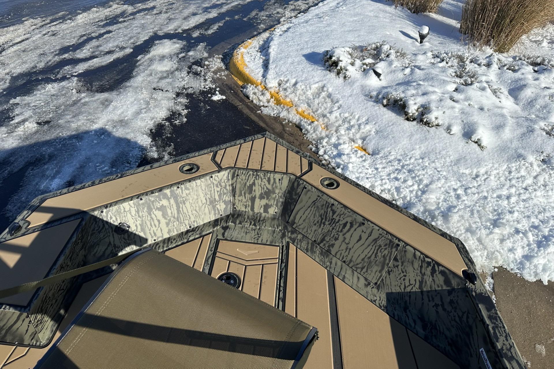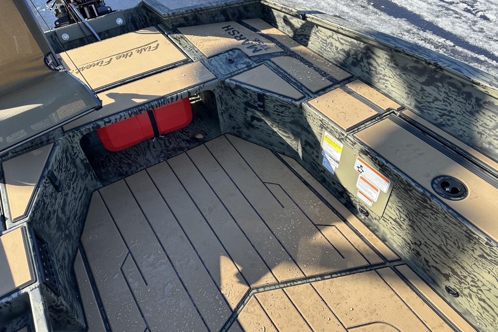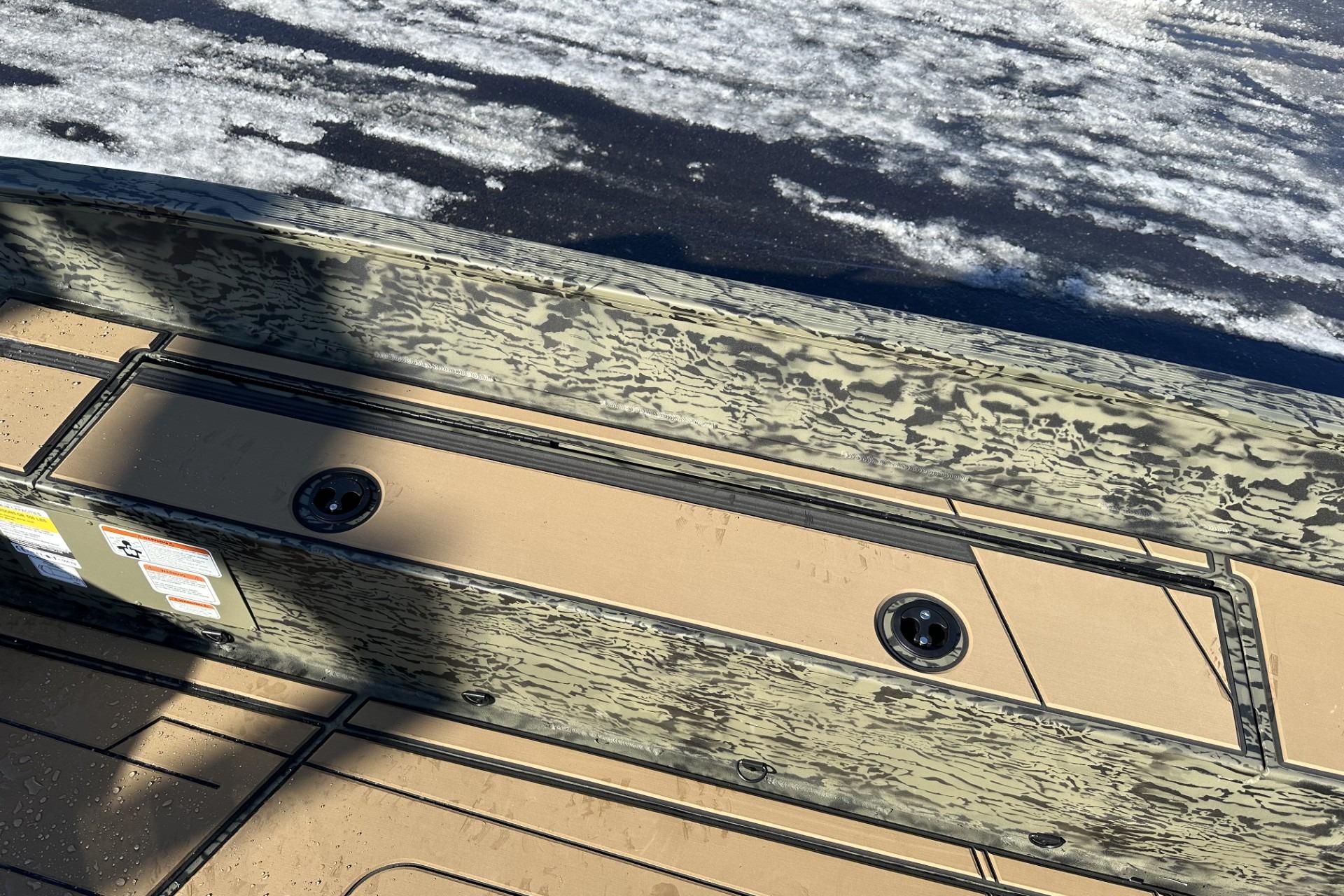 Designed for versatility, it features a spacious front deck ideal for duck hunting, multiple lockable storage compartments, and dry storage in the aft port seat pod. The interior includes Sure Tread™ non-skid flooring for safety and longevity, along with strategically placed tie-down points for gear security. The exclusive VERSATRACK® accessory channel allows customization. Constructed from 100% aluminum with a wood-free transom system, it provides a smooth, dry ride thanks to its 7° deadrise and icebreaker keel. Additional features include integrated spud pole tubes, rear transom steps, and a welded foam-filled interior for strength. Equipped with practical electrical components and a powder-coated trailer, this boat is perfect for die hard waterfowl hunters, and outdoor enthusiasts seeking durability and style in striking Forest Green or TrueTimber® camo patterns.