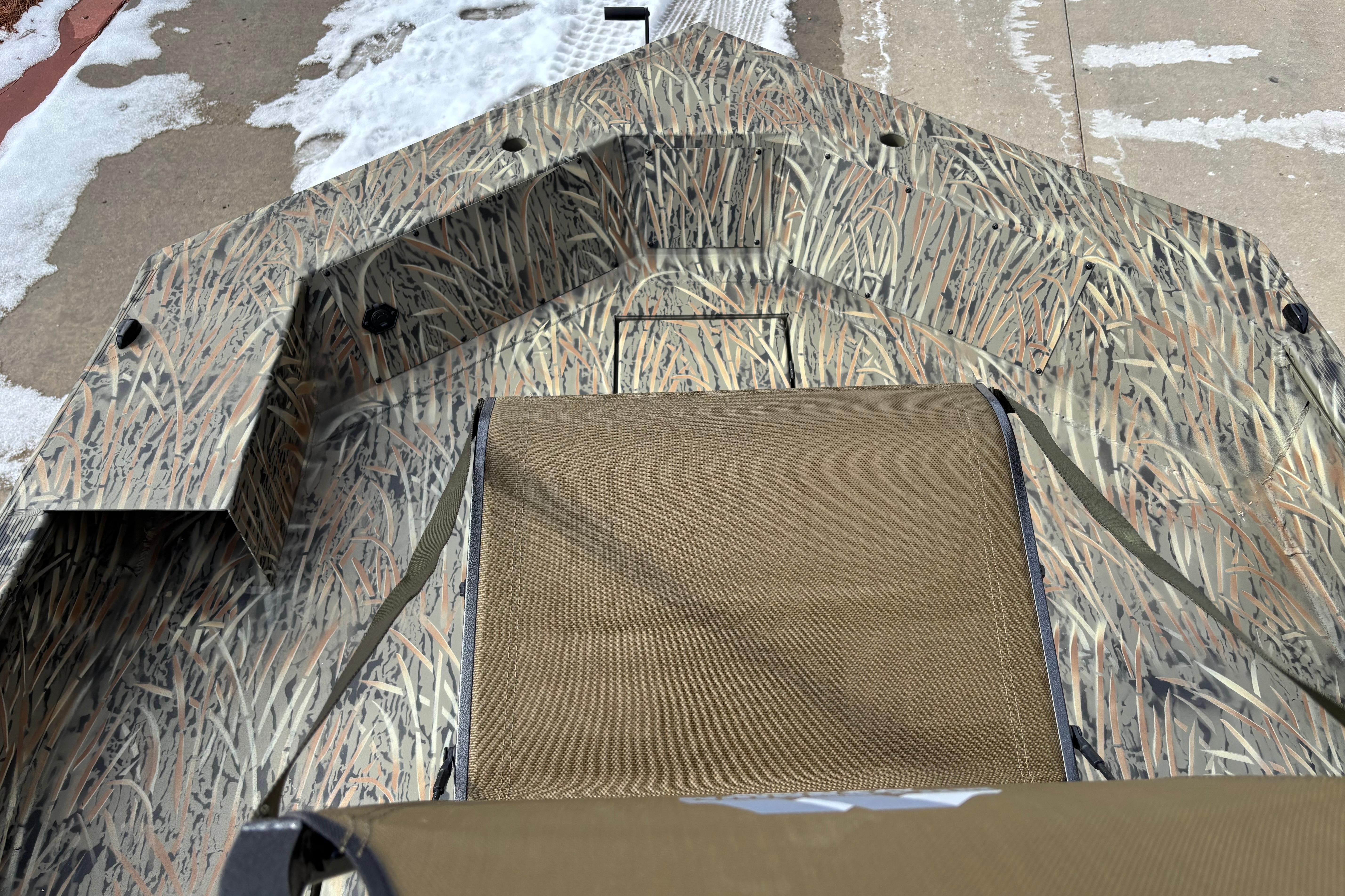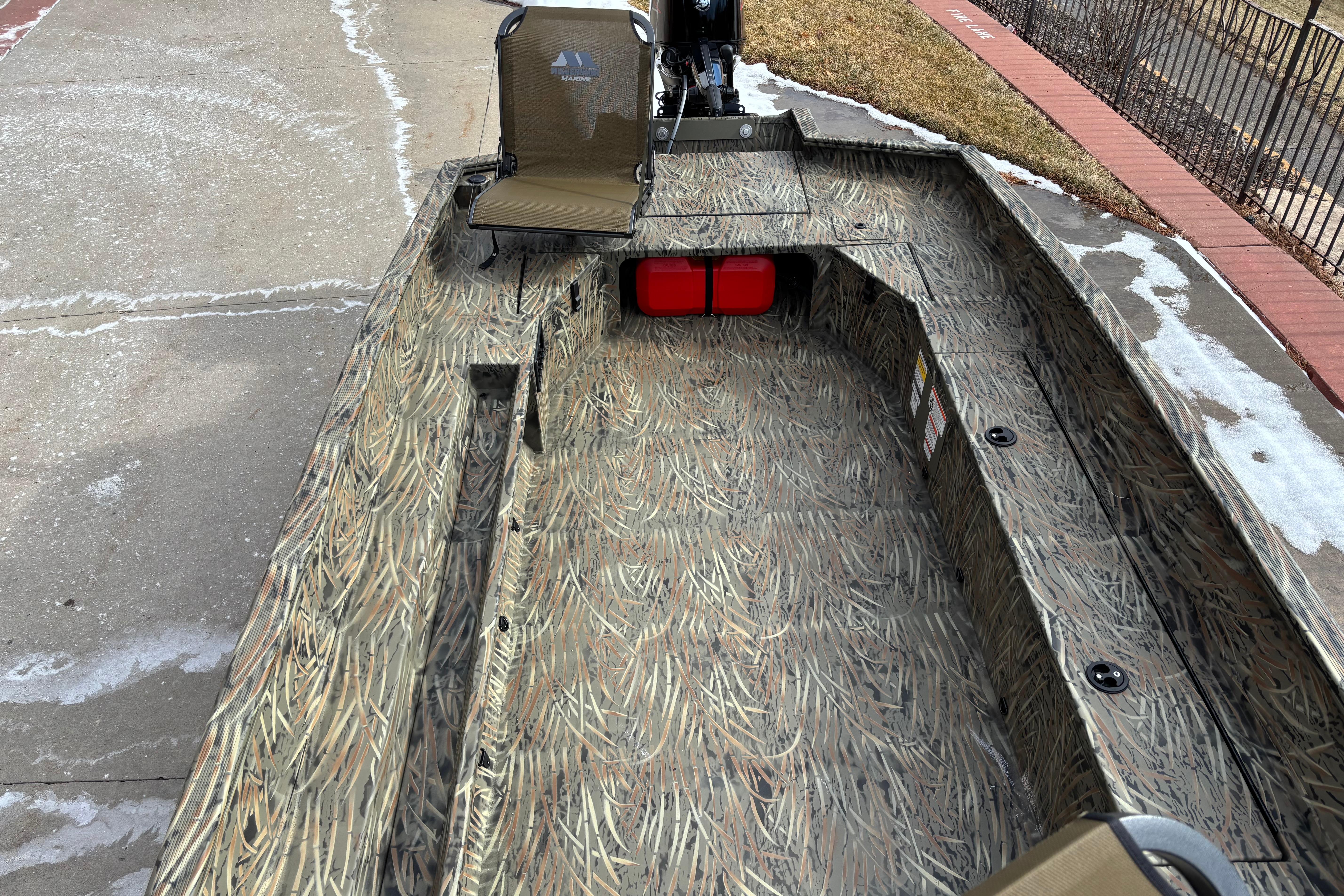 Designed for versatility, it features a spacious front deck ideal for duck hunting, multiple lockable storage compartments, and dry storage in the aft port seat pod. The interior includes Sure Tread™ non-skid flooring for safety and longevity, along with strategically placed tie-down points for gear security. The exclusive VERSATRACK® accessory channel allows customization. Constructed from 100% aluminum with a wood-free transom system, it provides a smooth, dry ride thanks to its 7° deadrise and icebreaker keel. Additional features include integrated spud pole tubes, rear transom steps, and a welded foam-filled interior for strength. Equipped with practical electrical components and a powder-coated trailer, this boat is perfect for die hard waterfowl hunters, and outdoor enthusiasts seeking durability and style in striking Forest Green or TrueTimber® camo patterns.