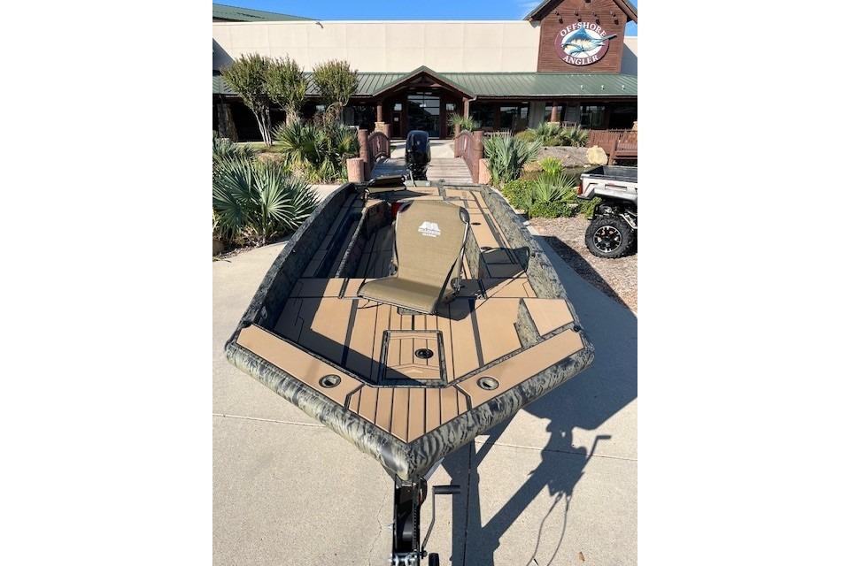 Designed for versatility, it features a spacious front deck ideal for duck hunting, multiple lockable storage compartments, and dry storage in the aft port seat pod. The interior includes Sure Tread™ non-skid flooring for safety and longevity, along with strategically placed tie-down points for gear security. The exclusive VERSATRACK® accessory channel allows customization. Constructed from 100% aluminum with a wood-free transom system, it provides a smooth, dry ride thanks to its 7° deadrise and icebreaker keel. Additional features include integrated spud pole tubes, rear transom steps, and a welded foam-filled interior for strength. Equipped with practical electrical components and a powder-coated trailer, this boat is perfect for die hard waterfowl hunters, and outdoor enthusiasts seeking durability and style in striking Forest Green or TrueTimber® camo patterns.