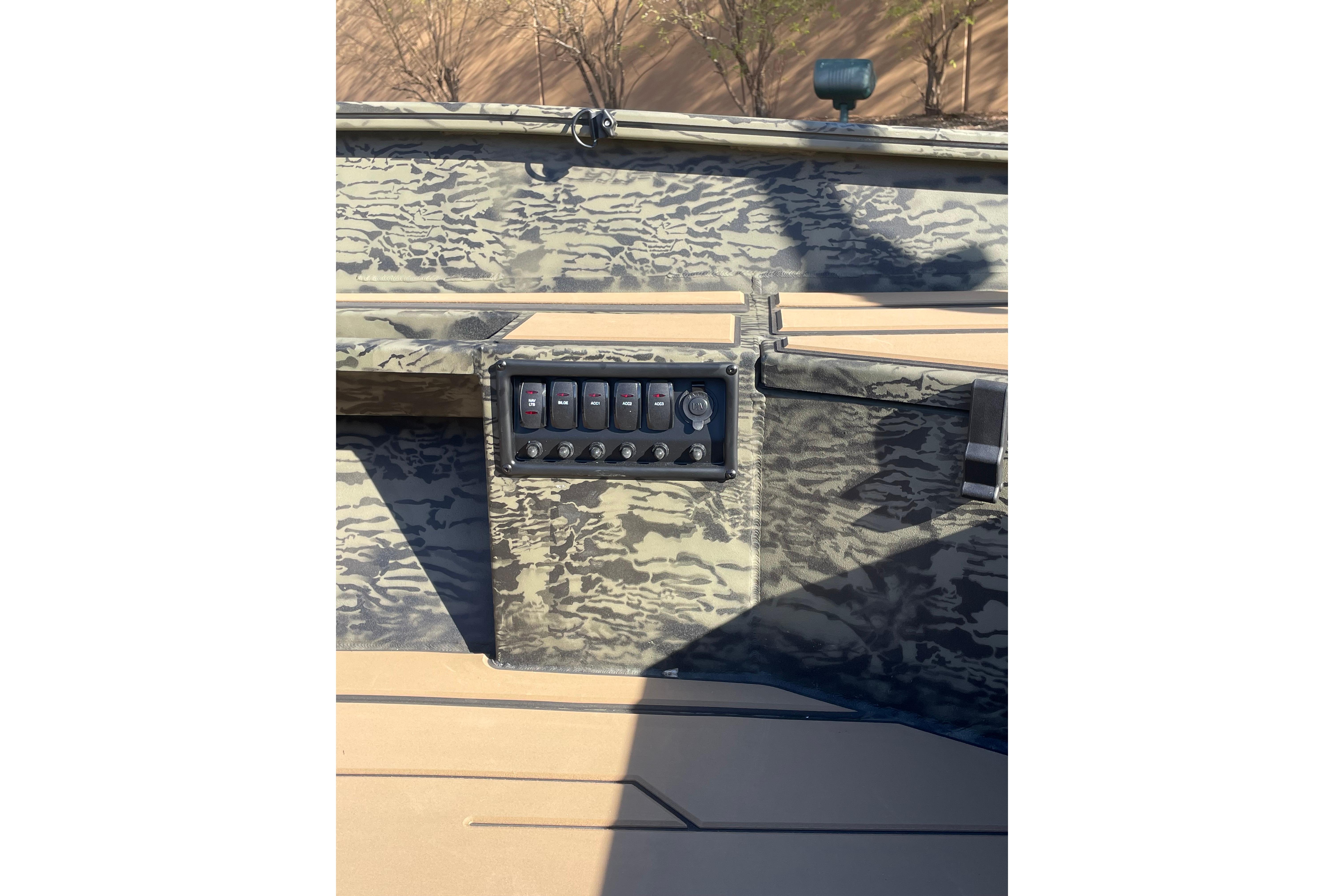 Designed for versatility, it features a spacious front deck ideal for duck hunting, multiple lockable storage compartments, and dry storage in the aft port seat pod. The interior includes Sure Tread™ non-skid flooring for safety and longevity, along with strategically placed tie-down points for gear security. The exclusive VERSATRACK® accessory channel allows customization. Constructed from 100% aluminum with a wood-free transom system, it provides a smooth, dry ride thanks to its 7° deadrise and icebreaker keel. Additional features include integrated spud pole tubes, rear transom steps, and a welded foam-filled interior for strength. Equipped with practical electrical components and a powder-coated trailer, this boat is perfect for die hard waterfowl hunters, and outdoor enthusiasts seeking durability and style in striking Forest Green or TrueTimber® camo patterns.