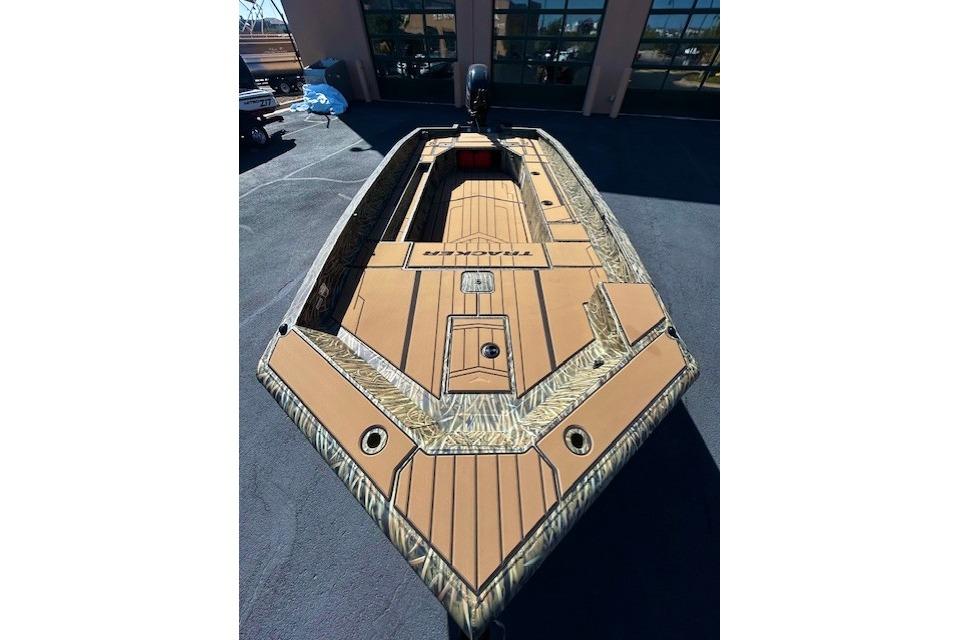 Designed for versatility, it features a spacious front deck ideal for duck hunting, multiple lockable storage compartments, and dry storage in the aft port seat pod. The interior includes Sure Tread™ non-skid flooring for safety and longevity, along with strategically placed tie-down points for gear security. The exclusive VERSATRACK® accessory channel allows customization. Constructed from 100% aluminum with a wood-free transom system, it provides a smooth, dry ride thanks to its 7° deadrise and icebreaker keel. Additional features include integrated spud pole tubes, rear transom steps, and a welded foam-filled interior for strength. Equipped with practical electrical components and a powder-coated trailer, this boat is perfect for die hard waterfowl hunters, and outdoor enthusiasts seeking durability and style in striking Forest Green or TrueTimber® camo patterns.
