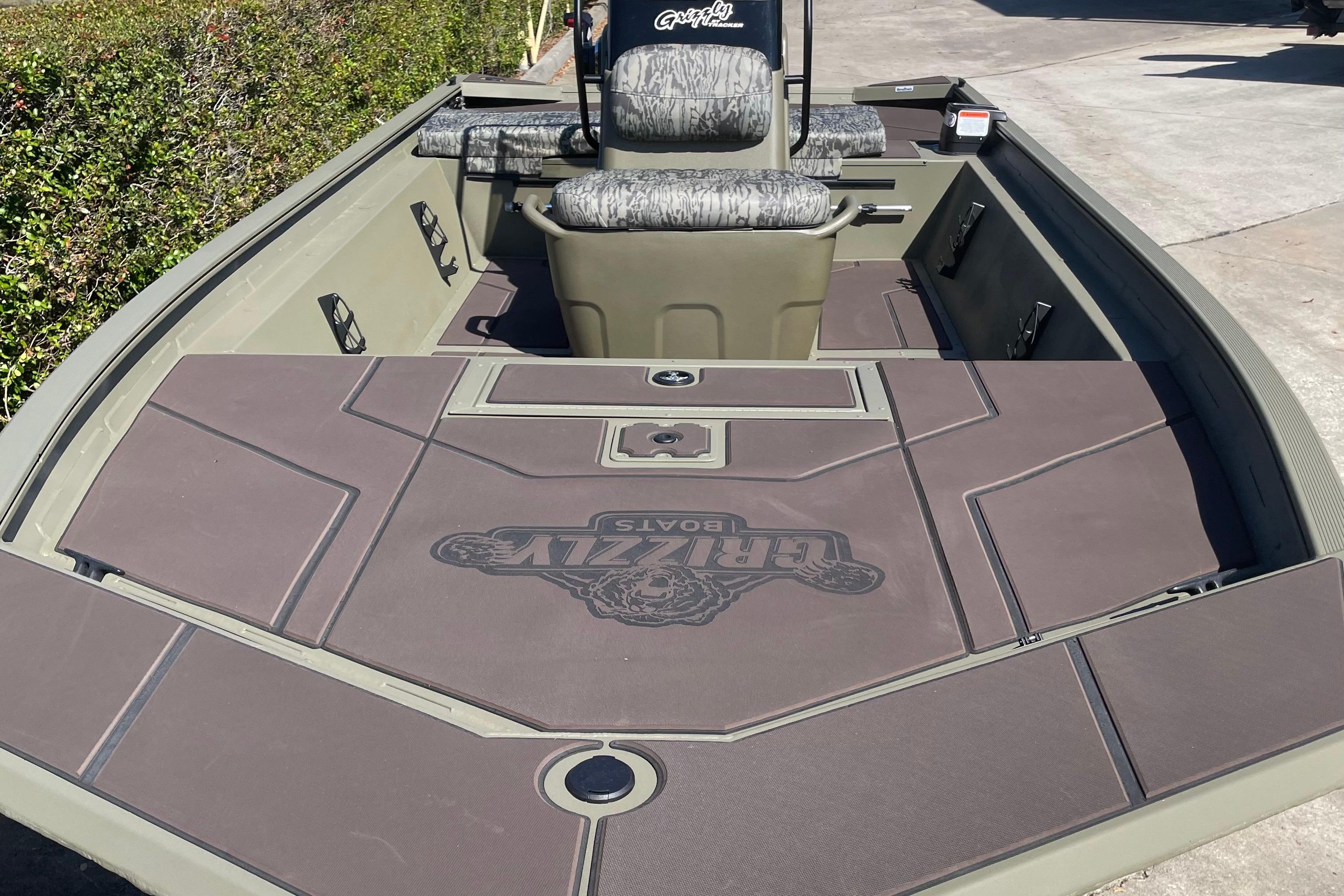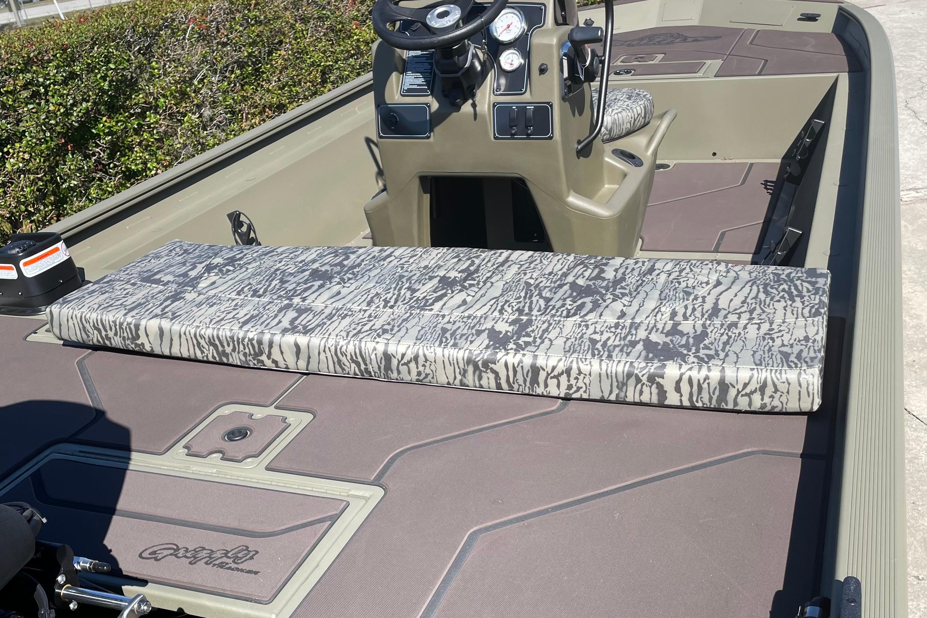 Venture into the unknown with the TRACKER® GRIZZLY® 1860 CC, a robust and versatile all-purpose jon boat designed to conquer various water environments, from rivers to lakes to bays. With its durable, all-welded construction, this boat is equipped to handle any adventure you throw its way. The innovative center-console design not only provides 360° fishability but also offers enhanced visibility for the driver, crucial for navigating through shallow waters cluttered with stumps and rocks. Whether you're casting a line or cruising the waters, the decks and floors of the 1860 CC are equipped with our textured SURE TREAD™ coating, ensuring a secure and non-skid surface for your safety and comfort. The unitized stringer, transom, and Mod V hull construction of this boat guarantee a solid and stable ride, delivering an experience that is both smooth and dry. Finished with our exclusive Forest Green powder-coat finish, the GRIZZLY 1860 CC not only looks sleek but also offers superior protection against corrosion and wear. For those looking to personalize their vessel further, optional TrueTimber patterns and a Marine Mat kit are available, allowing you to tailor your boat to your preferences and style. With the added assurance of the TRACKER PROMISE, featuring the best factory warranty in aluminum boats, the GRIZZLY 1860 CC is a reliable and dependable choice for all your boating adventures.