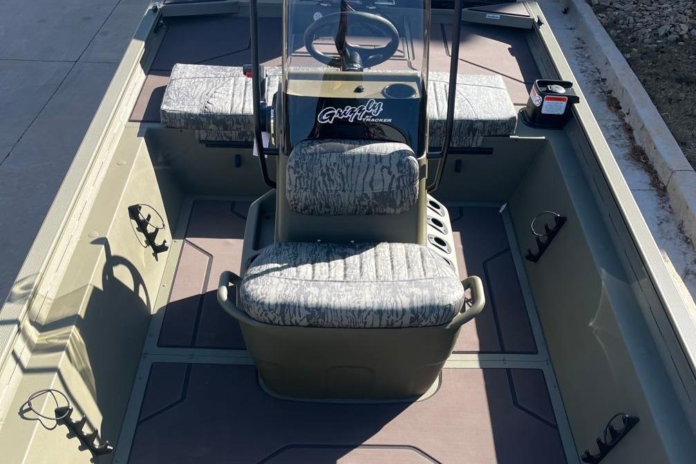 Venture into the unknown with the TRACKER® GRIZZLY® 1860 CC, a robust and versatile all-purpose jon boat designed to conquer various water environments, from rivers to lakes to bays. With its durable, all-welded construction, this boat is equipped to handle any adventure you throw its way. The innovative center-console design not only provides 360° fishability but also offers enhanced visibility for the driver, crucial for navigating through shallow waters cluttered with stumps and rocks. Whether you're casting a line or cruising the waters, the decks and floors of the 1860 CC are equipped with our textured SURE TREAD™ coating, ensuring a secure and non-skid surface for your safety and comfort. The unitized stringer, transom, and Mod V hull construction of this boat guarantee a solid and stable ride, delivering an experience that is both smooth and dry. Finished with our exclusive Forest Green powder-coat finish, the GRIZZLY 1860 CC not only looks sleek but also offers superior protection against corrosion and wear. For those looking to personalize their vessel further, optional TrueTimber patterns and a Marine Mat kit are available, allowing you to tailor your boat to your preferences and style. With the added assurance of the TRACKER PROMISE, featuring the best factory warranty in aluminum boats, the GRIZZLY 1860 CC is a reliable and dependable choice for all your boating adventures.