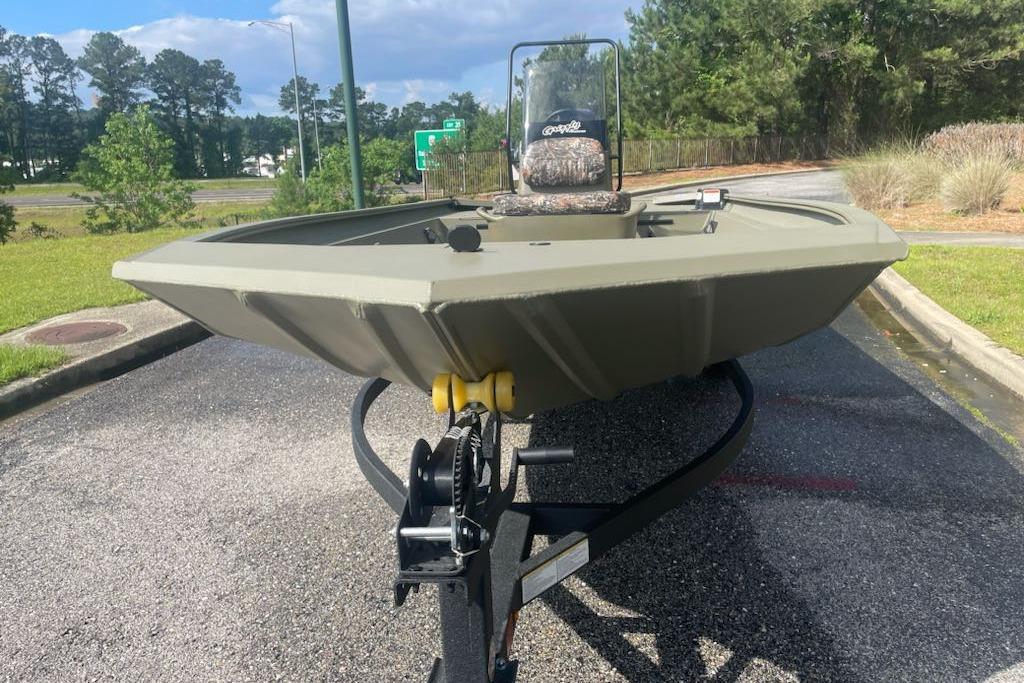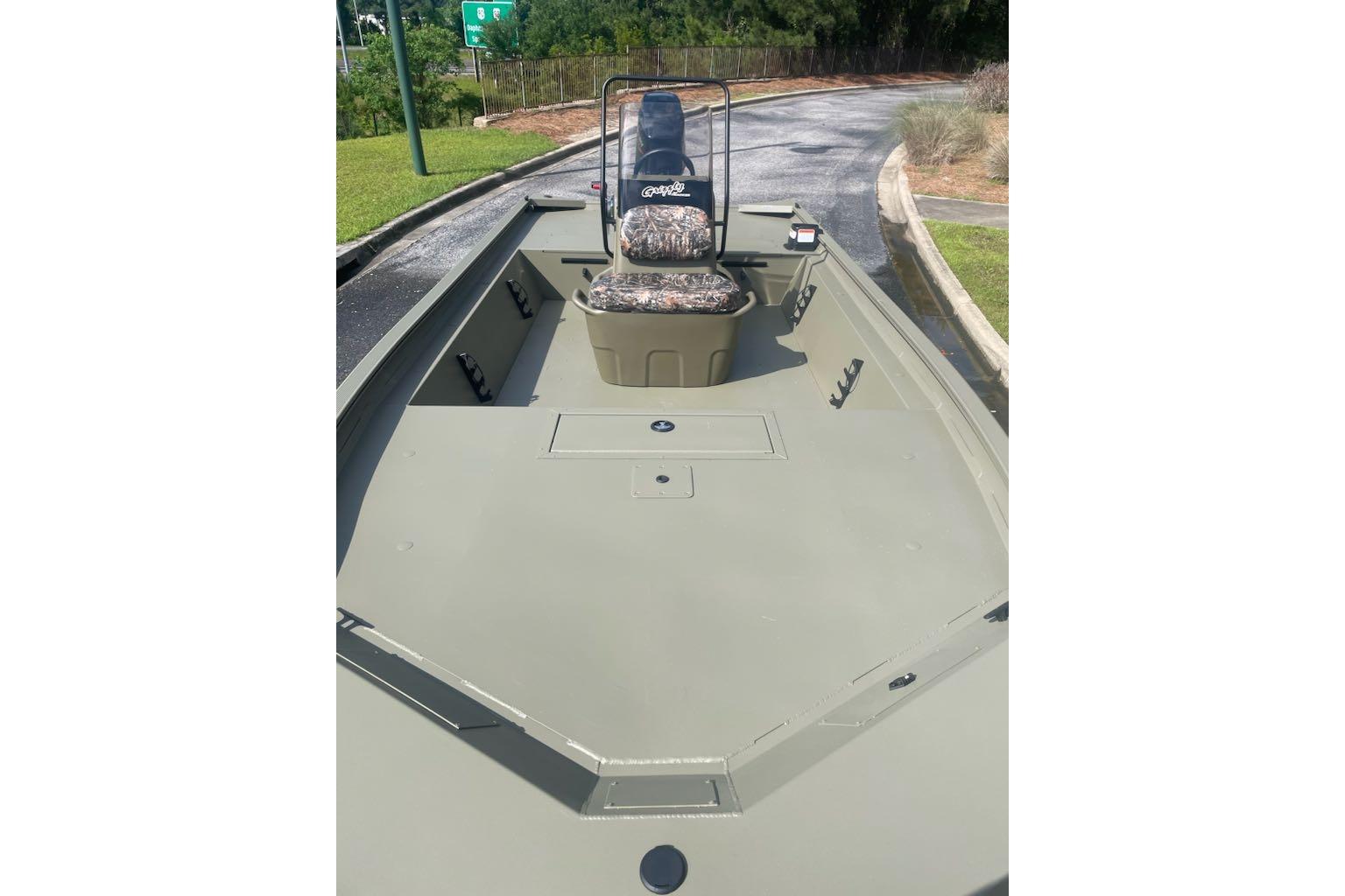 Venture into the unknown with the TRACKER® GRIZZLY® 1860 CC, a robust and versatile all-purpose jon boat designed to conquer various water environments, from rivers to lakes to bays. With its durable, all-welded construction, this boat is equipped to handle any adventure you throw its way. The innovative center-console design not only provides 360° fishability but also offers enhanced visibility for the driver, crucial for navigating through shallow waters cluttered with stumps and rocks. Whether you're casting a line or cruising the waters, the decks and floors of the 1860 CC are equipped with our textured SURE TREAD™ coating, ensuring a secure and non-skid surface for your safety and comfort. The unitized stringer, transom, and Mod V hull construction of this boat guarantee a solid and stable ride, delivering an experience that is both smooth and dry. Finished with our exclusive Forest Green powder-coat finish, the GRIZZLY 1860 CC not only looks sleek but also offers superior protection against corrosion and wear. For those looking to personalize their vessel further, optional TrueTimber patterns and a Marine Mat kit are available, allowing you to tailor your boat to your preferences and style. With the added assurance of the TRACKER PROMISE, featuring the best factory warranty in aluminum boats, the GRIZZLY 1860 CC is a reliable and dependable choice for all your boating adventures.