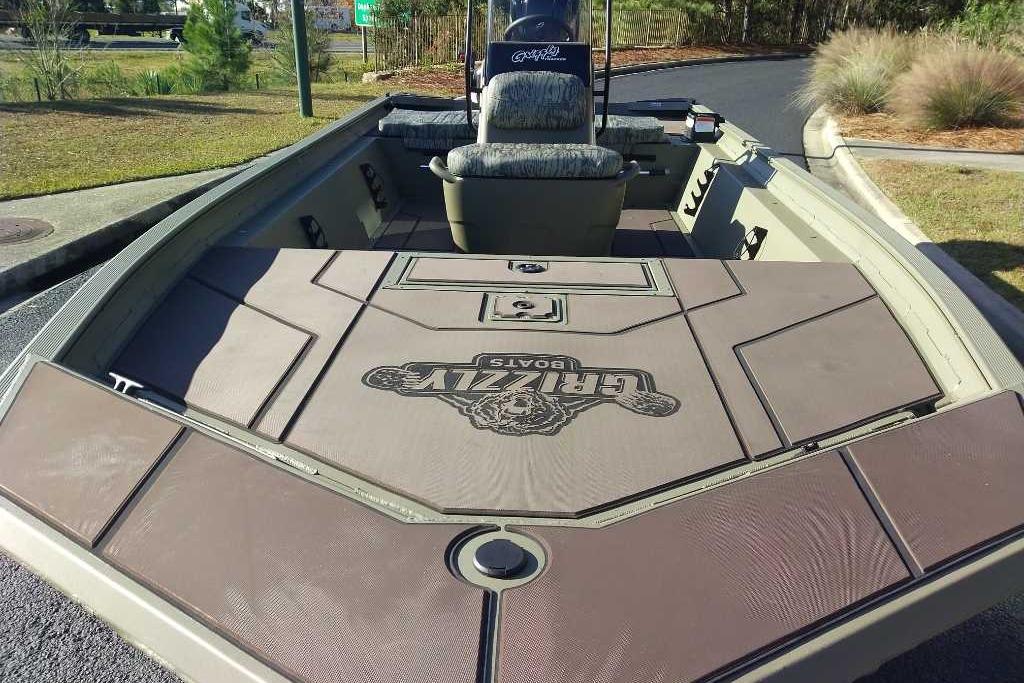 Venture into the unknown with the TRACKER® GRIZZLY® 1860 CC, a robust and versatile all-purpose jon boat designed to conquer various water environments, from rivers to lakes to bays. With its durable, all-welded construction, this boat is equipped to handle any adventure you throw its way. The innovative center-console design not only provides 360° fishability but also offers enhanced visibility for the driver, crucial for navigating through shallow waters cluttered with stumps and rocks. Whether you're casting a line or cruising the waters, the decks and floors of the 1860 CC are equipped with our textured SURE TREAD™ coating, ensuring a secure and non-skid surface for your safety and comfort. The unitized stringer, transom, and Mod V hull construction of this boat guarantee a solid and stable ride, delivering an experience that is both smooth and dry. Finished with our exclusive Forest Green powder-coat finish, the GRIZZLY 1860 CC not only looks sleek but also offers superior protection against corrosion and wear. For those looking to personalize their vessel further, optional TrueTimber patterns and a Marine Mat kit are available, allowing you to tailor your boat to your preferences and style. With the added assurance of the TRACKER PROMISE, featuring the best factory warranty in aluminum boats, the GRIZZLY 1860 CC is a reliable and dependable choice for all your boating adventures.