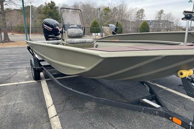 Venture into the unknown with the TRACKER® GRIZZLY® 1860 CC, a robust and versatile all-purpose jon boat designed to conquer various water environments, from rivers to lakes to bays. With its durable, all-welded construction, this boat is equipped to handle any adventure you throw its way. The innovative center-console design not only provides 360° fishability but also offers enhanced visibility for the driver, crucial for navigating through shallow waters cluttered with stumps and rocks. Whether you're casting a line or cruising the waters, the decks and floors of the 1860 CC are equipped with our textured SURE TREAD™ coating, ensuring a secure and non-skid surface for your safety and comfort. The unitized stringer, transom, and Mod V hull construction of this boat guarantee a solid and stable ride, delivering an experience that is both smooth and dry. Finished with our exclusive Forest Green powder-coat finish, the GRIZZLY 1860 CC not only looks sleek but also offers superior protection against corrosion and wear. For those looking to personalize their vessel further, optional TrueTimber patterns and a Marine Mat kit are available, allowing you to tailor your boat to your preferences and style. With the added assurance of the TRACKER PROMISE, featuring the best factory warranty in aluminum boats, the GRIZZLY 1860 CC is a reliable and dependable choice for all your boating adventures.