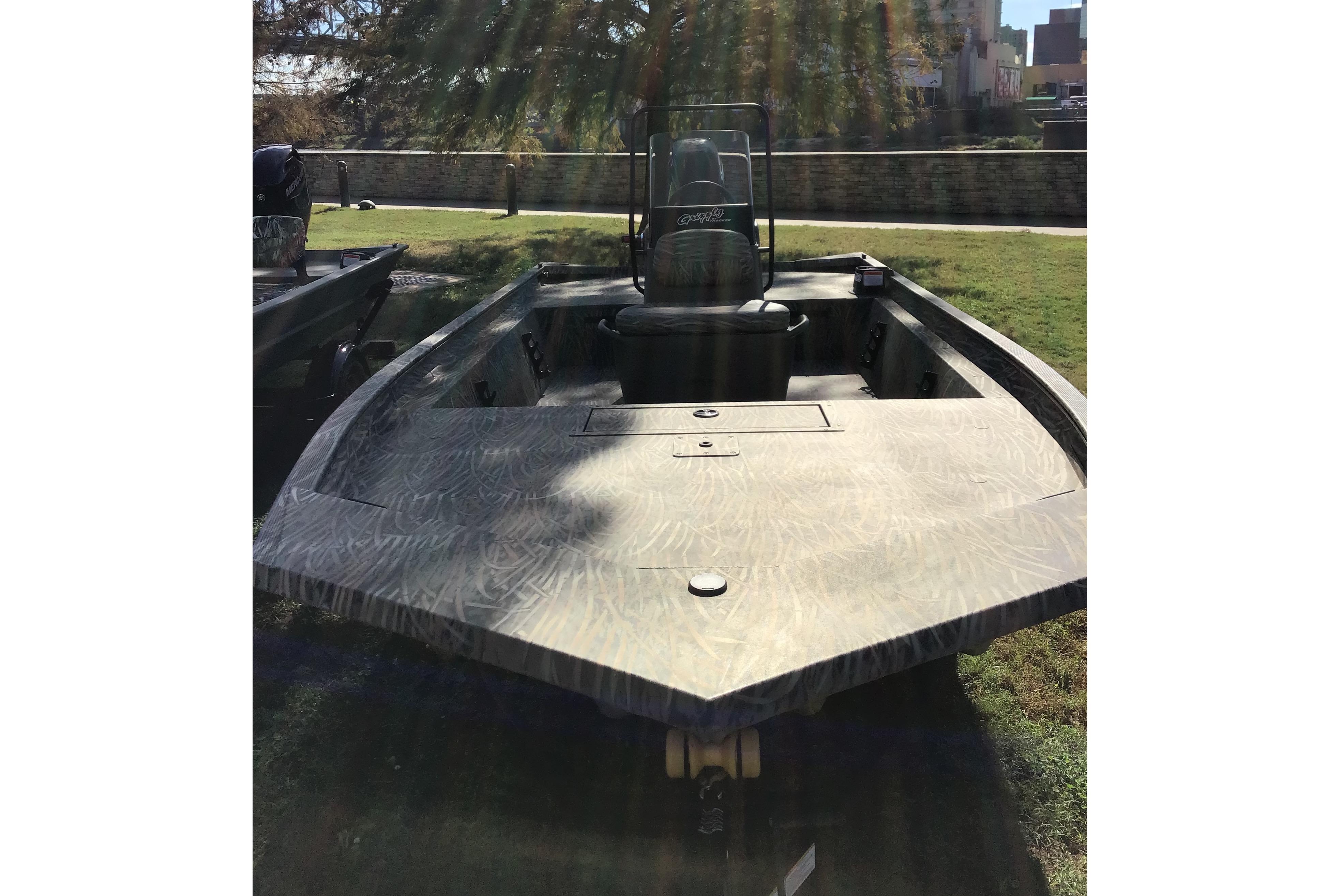 Venture into the unknown with the TRACKER® GRIZZLY® 1860 CC, a robust and versatile all-purpose jon boat designed to conquer various water environments, from rivers to lakes to bays. With its durable, all-welded construction, this boat is equipped to handle any adventure you throw its way. The innovative center-console design not only provides 360° fishability but also offers enhanced visibility for the driver, crucial for navigating through shallow waters cluttered with stumps and rocks. Whether you're casting a line or cruising the waters, the decks and floors of the 1860 CC are equipped with our textured SURE TREAD™ coating, ensuring a secure and non-skid surface for your safety and comfort. The unitized stringer, transom, and Mod V hull construction of this boat guarantee a solid and stable ride, delivering an experience that is both smooth and dry. Finished with our exclusive Forest Green powder-coat finish, the GRIZZLY 1860 CC not only looks sleek but also offers superior protection against corrosion and wear. For those looking to personalize their vessel further, optional TrueTimber patterns and a Marine Mat kit are available, allowing you to tailor your boat to your preferences and style. With the added assurance of the TRACKER PROMISE, featuring the best factory warranty in aluminum boats, the GRIZZLY 1860 CC is a reliable and dependable choice for all your boating adventures.