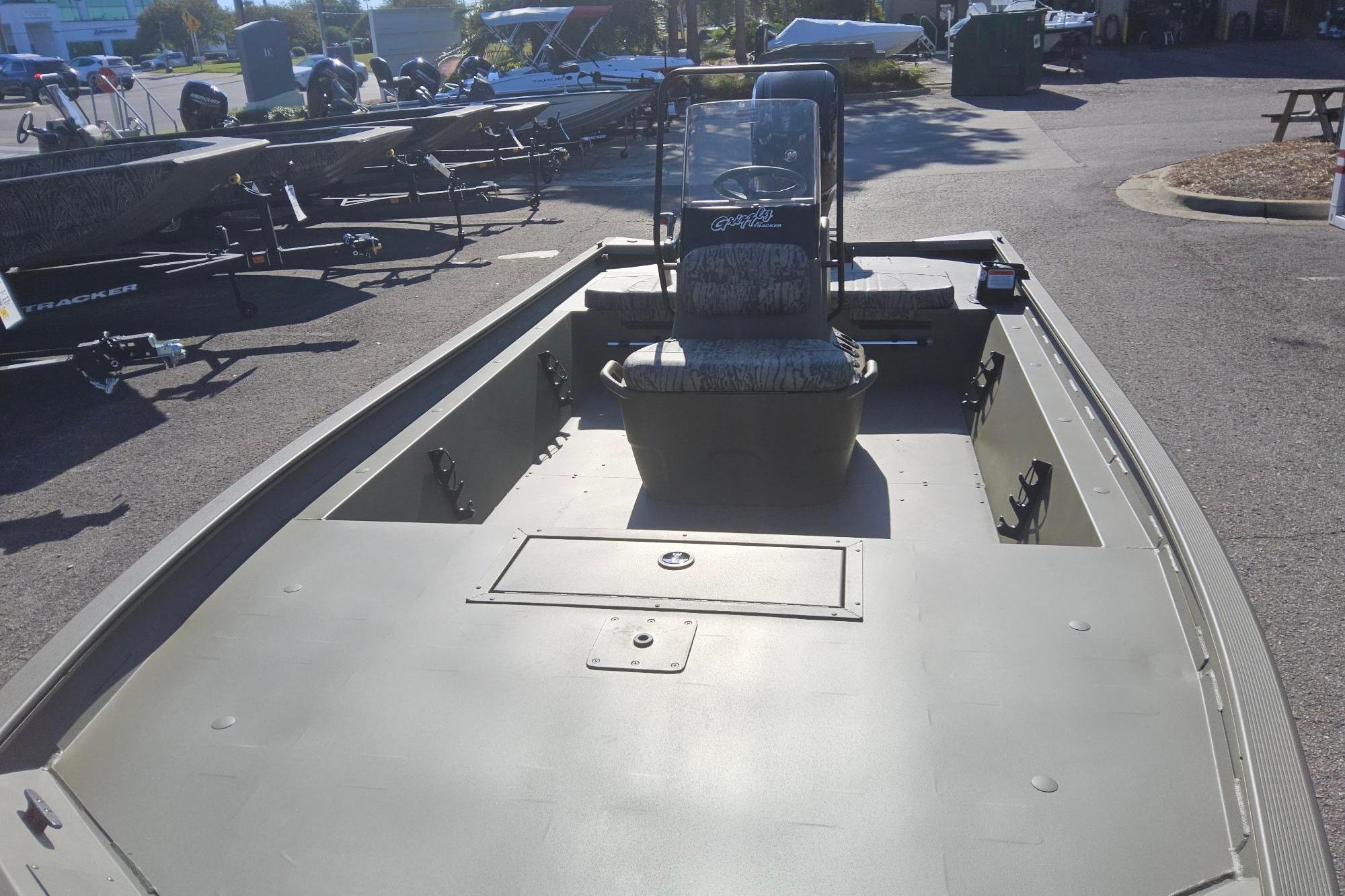 Venture into the unknown with the TRACKER® GRIZZLY® 1860 CC, a robust and versatile all-purpose jon boat designed to conquer various water environments, from rivers to lakes to bays. With its durable, all-welded construction, this boat is equipped to handle any adventure you throw its way. The innovative center-console design not only provides 360° fishability but also offers enhanced visibility for the driver, crucial for navigating through shallow waters cluttered with stumps and rocks. Whether you're casting a line or cruising the waters, the decks and floors of the 1860 CC are equipped with our textured SURE TREAD™ coating, ensuring a secure and non-skid surface for your safety and comfort. The unitized stringer, transom, and Mod V hull construction of this boat guarantee a solid and stable ride, delivering an experience that is both smooth and dry. Finished with our exclusive Forest Green powder-coat finish, the GRIZZLY 1860 CC not only looks sleek but also offers superior protection against corrosion and wear. For those looking to personalize their vessel further, optional TrueTimber patterns and a Marine Mat kit are available, allowing you to tailor your boat to your preferences and style. With the added assurance of the TRACKER PROMISE, featuring the best factory warranty in aluminum boats, the GRIZZLY 1860 CC is a reliable and dependable choice for all your boating adventures.