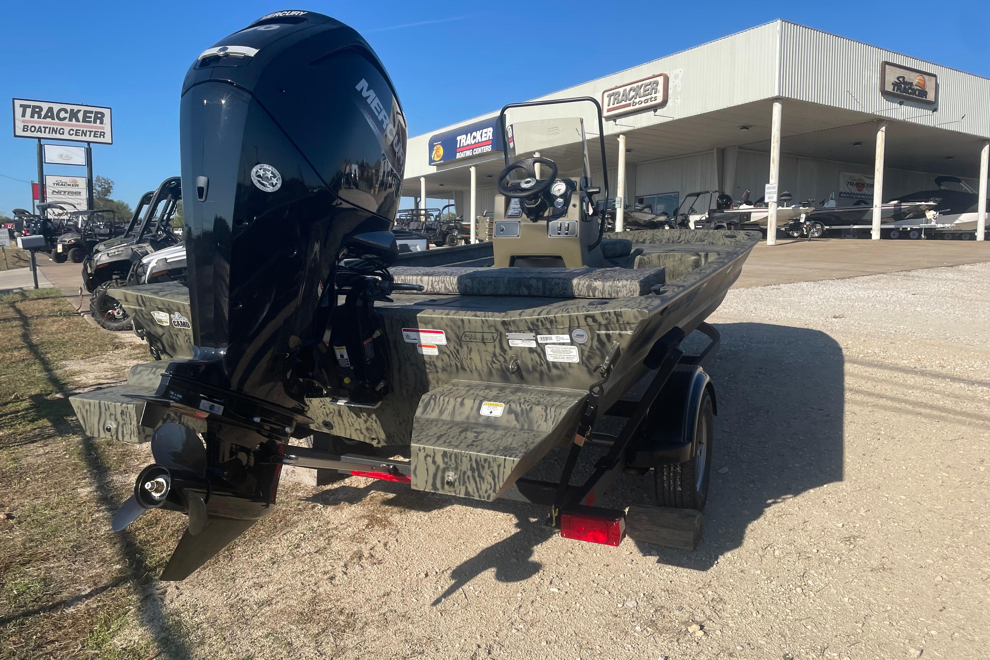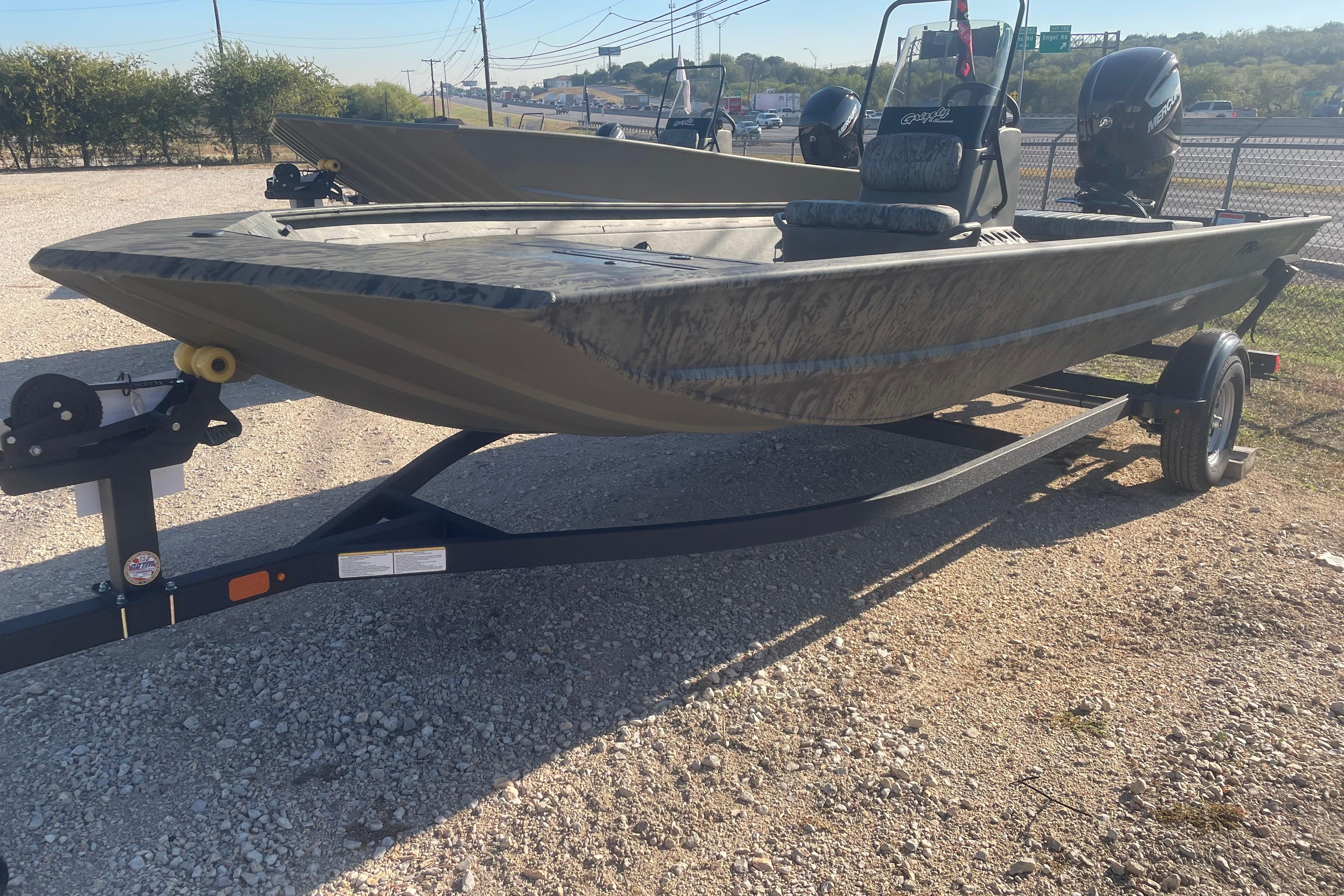 Venture into the unknown with the TRACKER® GRIZZLY® 1860 CC, a robust and versatile all-purpose jon boat designed to conquer various water environments, from rivers to lakes to bays. With its durable, all-welded construction, this boat is equipped to handle any adventure you throw its way. The innovative center-console design not only provides 360° fishability but also offers enhanced visibility for the driver, crucial for navigating through shallow waters cluttered with stumps and rocks. Whether you're casting a line or cruising the waters, the decks and floors of the 1860 CC are equipped with our textured SURE TREAD™ coating, ensuring a secure and non-skid surface for your safety and comfort. The unitized stringer, transom, and Mod V hull construction of this boat guarantee a solid and stable ride, delivering an experience that is both smooth and dry. Finished with our exclusive Forest Green powder-coat finish, the GRIZZLY 1860 CC not only looks sleek but also offers superior protection against corrosion and wear. For those looking to personalize their vessel further, optional TrueTimber patterns and a Marine Mat kit are available, allowing you to tailor your boat to your preferences and style. With the added assurance of the TRACKER PROMISE, featuring the best factory warranty in aluminum boats, the GRIZZLY 1860 CC is a reliable and dependable choice for all your boating adventures.