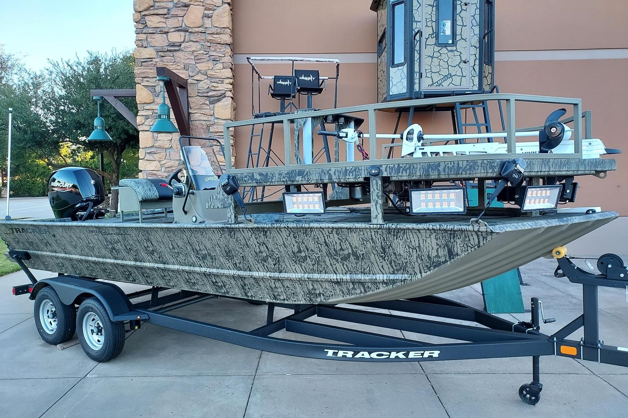 Prepare for an unparalleled bowfishing adventure with the TRACKER® GRIZZLY® 2072 CC Sportsman, a remarkable vessel designed to enhance your targeting accuracy and overall experience on the water. The elevated deck feature positions you at a higher vantage point, allowing for precise targeting with your bow and reducing arrow deflection. To further elevate your bowfishing game, we have equipped this revamped boat with ten super-bright LEDs, illuminating your quarry with an impressive 100,000 lumens both inside and outside the vessel. Experience enhanced user-friendliness with a leaning post and storage compartments, ensuring that every aspect of your bowfishing excursion is optimized for convenience and enjoyment. The 100% aluminum construction of the GRIZZLY 2072 CC Sportsman, featuring a .100 hull and .190 floor, guarantees long-term durability and reliability. The all-welded hull, stringer, transom, and decks contribute to the boat's robust structure, capable of withstanding years of use in various conditions. Backed by the reputable TRACKER PROMISE, which offers the best factory warranty in the domain of aluminum boats, the GRIZZLY 2072 CC Sportsman provides you with the assurance and peace of mind needed for your bowfishing expeditions. For those seeking to enhance the visual appeal and camouflage capabilities of their bowfishing vessel, optional TrueTimber camo patterns are available to personalize your TRACKER® GRIZZLY® 2072 CC Sportsman. These innovative camo designs not only add a touch of flair to your boat but also allow you to seamlessly blend into your surroundings, maximizing your hunting success on the water. Elevate your bowfishing experience to new heights with the unmatched features, durability, and warranty offered by the TRACKER GRIZZLY 2072 CC Sportsman.