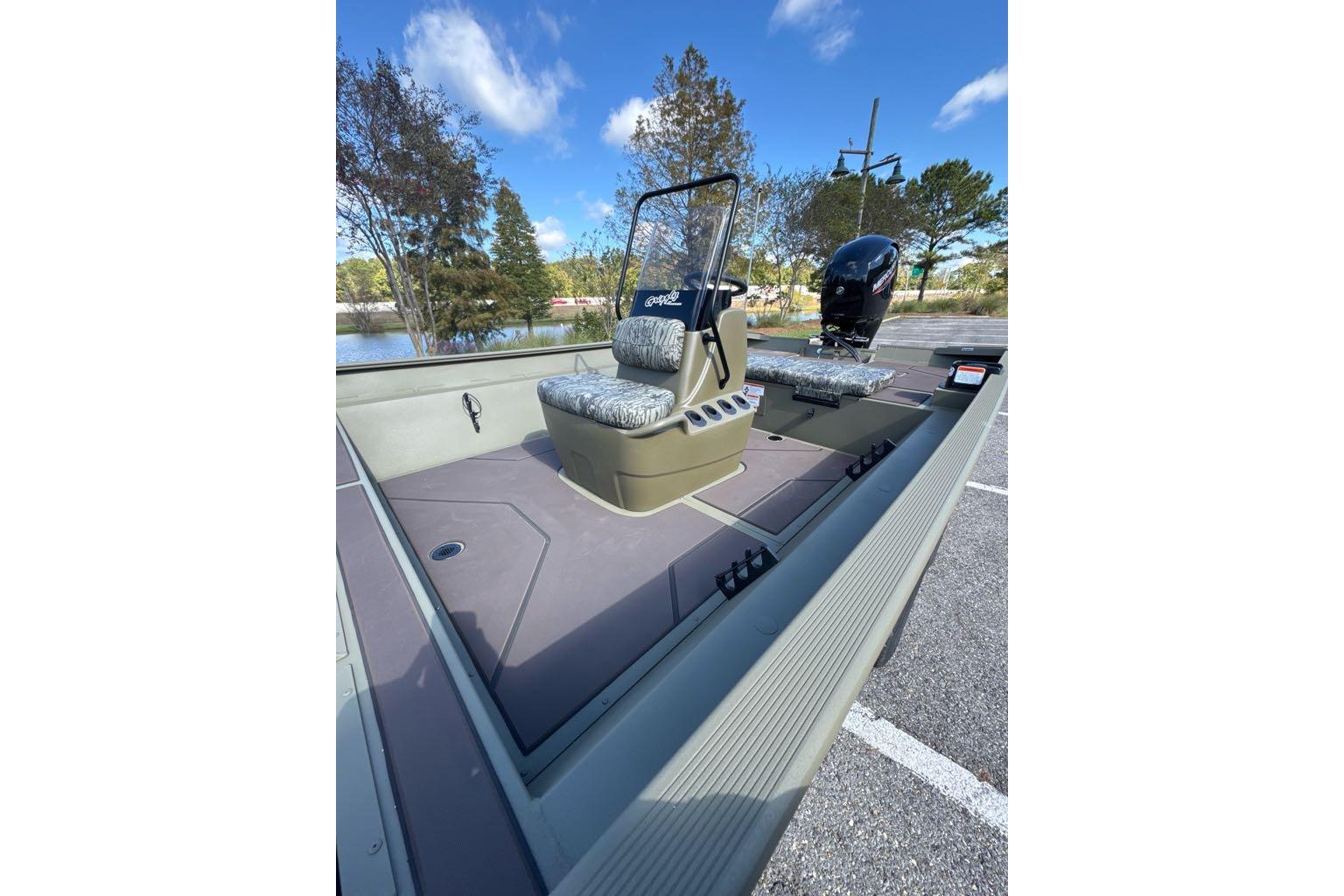 Unleash the power of the TRACKER® GRIZZLY® 2072 CC, a formidable all-welded aluminum jon boat designed to tackle a multitude of tasks, whether it's inland or inshore fishing, hunting, or utility work. Boasting a massive build, this boat is ready to conquer any challenge you throw its way. The innovative center-console design not only offers 360° fishability but also provides the driver with enhanced visibility when navigating through narrow and shallow waters, ensuring a smooth and controlled ride. With the capability to be powered by up to 150 HP, the GRIZZLY 2072 CC delivers unmatched power and range for your adventures on the water. Constructed with 100% aluminum, featuring a .100 hull and .190 floor, this boat guarantees exceptional durability and longevity. The hull, stringer, transom, and decks are meticulously all-welded to create a rock-solid, unitized structure that can withstand the harshest conditions with ease. Backed by the reliable TRACKER PROMISE, offering the best factory warranty in aluminum boats, the GRIZZLY 2072 CC provides you with peace of mind and confidence in your investment. For those looking to personalize their vessel, optional TrueTimber camo patterns and a MarineMat kit are available, allowing you to tailor your boat to suit your preferences and style. Experience unparalleled versatility, power, and durability with the TRACKER GRIZZLY 2072 CC, your ultimate companion for a wide range of water activities.