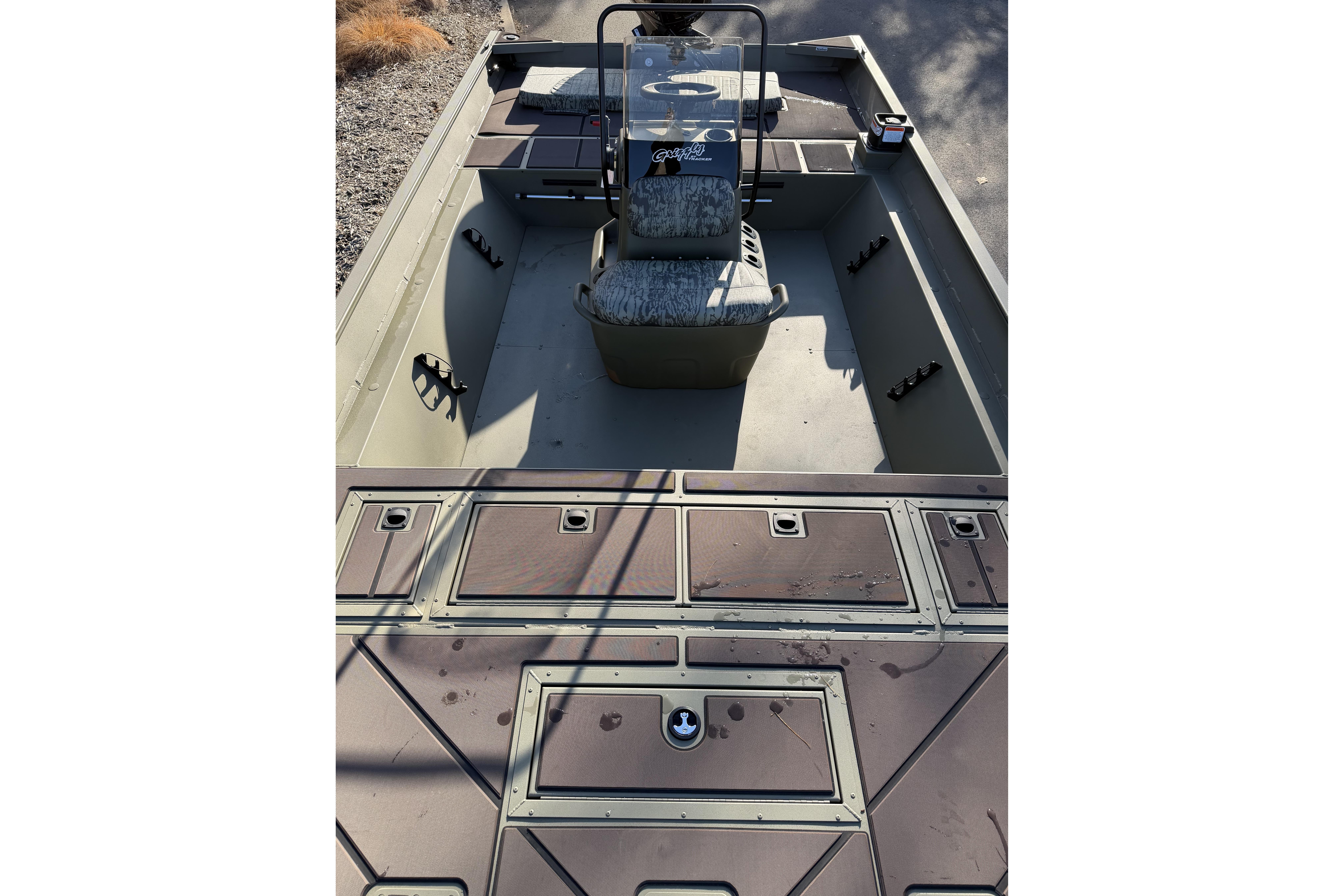 Unleash the power of the TRACKER® GRIZZLY® 2072 CC, a formidable all-welded aluminum jon boat designed to tackle a multitude of tasks, whether it's inland or inshore fishing, hunting, or utility work. Boasting a massive build, this boat is ready to conquer any challenge you throw its way. The innovative center-console design not only offers 360° fishability but also provides the driver with enhanced visibility when navigating through narrow and shallow waters, ensuring a smooth and controlled ride. With the capability to be powered by up to 150 HP, the GRIZZLY 2072 CC delivers unmatched power and range for your adventures on the water. Constructed with 100% aluminum, featuring a .100 hull and .190 floor, this boat guarantees exceptional durability and longevity. The hull, stringer, transom, and decks are meticulously all-welded to create a rock-solid, unitized structure that can withstand the harshest conditions with ease. Backed by the reliable TRACKER PROMISE, offering the best factory warranty in aluminum boats, the GRIZZLY 2072 CC provides you with peace of mind and confidence in your investment. For those looking to personalize their vessel, optional TrueTimber camo patterns and a MarineMat kit are available, allowing you to tailor your boat to suit your preferences and style. Experience unparalleled versatility, power, and durability with the TRACKER GRIZZLY 2072 CC, your ultimate companion for a wide range of water activities.