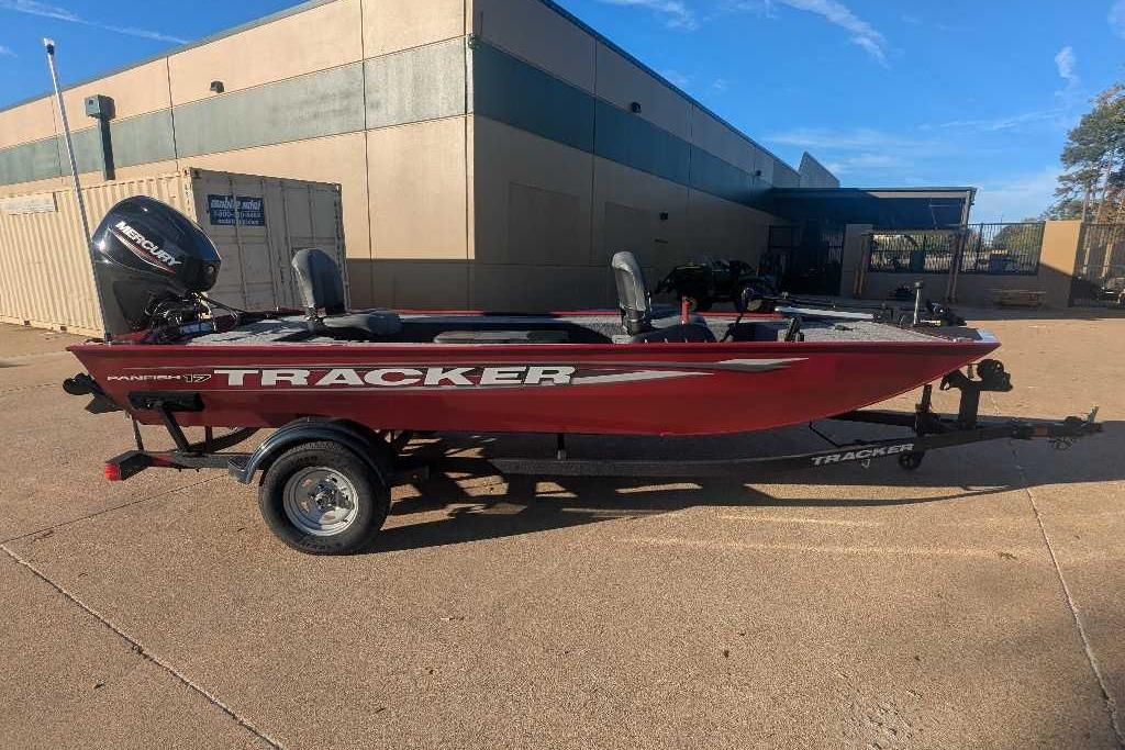 The TRACKER Panfish 17 remains a proven stick steer boat, expertly designed for crappie, bream, and bluegill enthusiasts. Its thoughtful features and efficient layout continue to make it a favorite among anglers of all levels. Built from premium marine-grade aluminum, the hull is precisely robotically cut for accuracy and assembled by skilled craftsmen using advanced equipment, resulting in a durable, all-welded construction that stands the test of time. Inside, the Panfish 17 offers a practical and budget-friendly interior. The bow driver’s station includes a throttle and steering stick, complemented by a standard fishfinder and electronics to help you locate and stay on the fish. A large bow storage compartment keeps your gear organized, accessible, and protected from the elements. The cockpit’s well-designed layout provides ample space for you and a friend or two to carry all your essentials for a successful day on the water. A center livewell, topped with a cushioned seat for two, offers convenient fish storage, while the rear fold-down fishing seat conceals additional storage options. Powering this reliable vessel is a smooth Mercury® engine, engineered for efficient and economical performance. Whether you’re seeking a versatile fishing platform or a boat that allows you to catch fish comfortably from your seat, the Panfish 17 continues to be a dependable choice for anglers looking to maximize their time on the water.